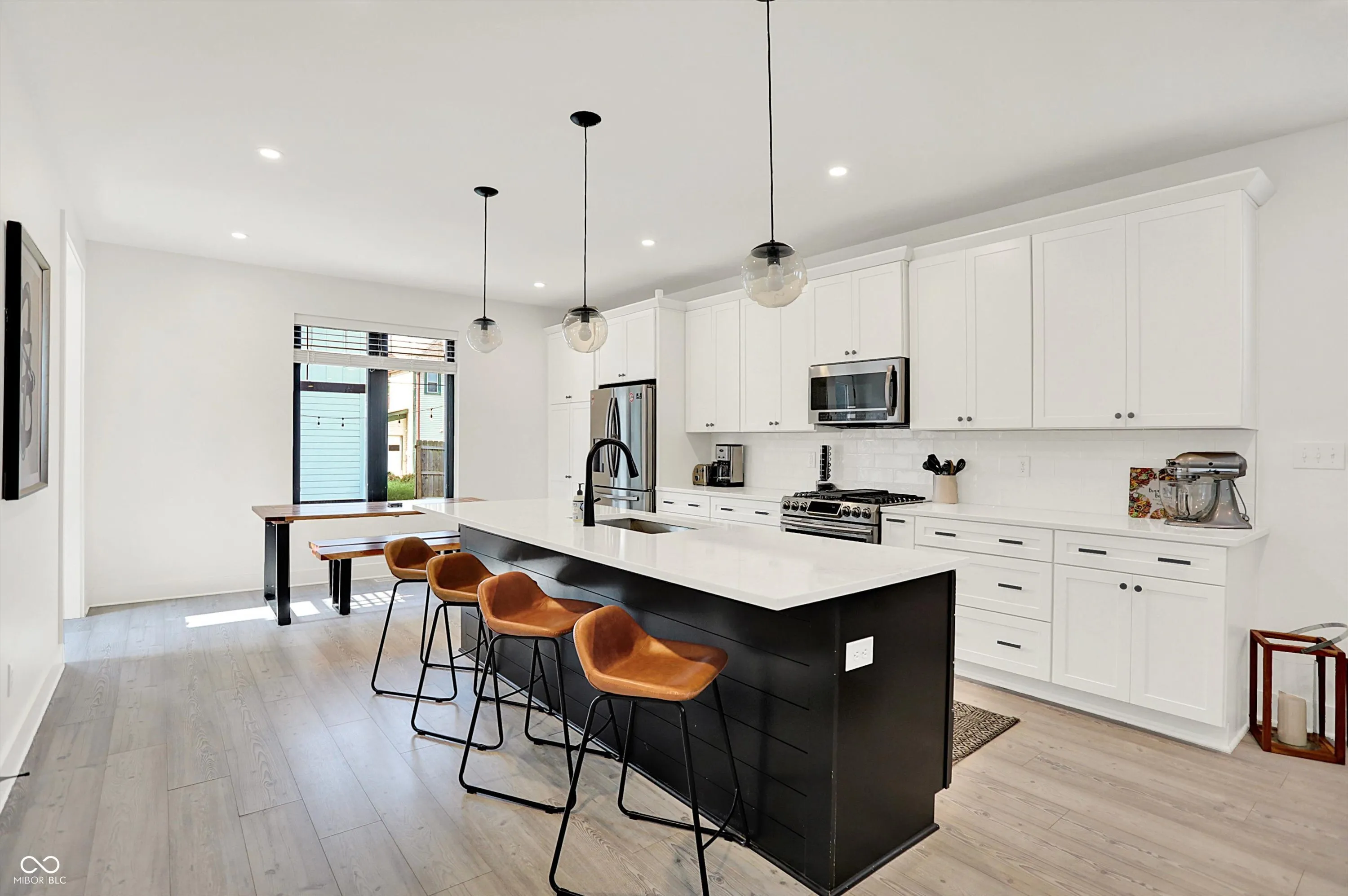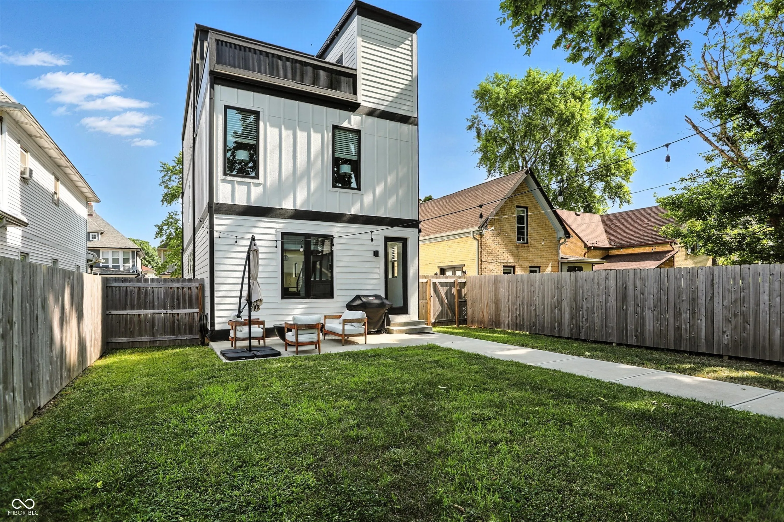 Modern Charm in Holy Cross just steps from Highland Park! This stylish three level home + CARRIAGE HOUSE blends modern design with functionality in one of Indy’s most desirable neighborhoods. Hard surface flooring runs throughout, paired with soaring ceilings and abundant natural light. The open-concept main floor features a sleek white kitchen with quartz countertops, subway tile backsplash, and a center island perfect for entertaining. A versatile first-floor bedroom offers flexibility for guests or a home office. Don’t miss the convenient boot bench near the back entrance! On the 2nd floor, you’ll find two very spacious bedrooms each with WIC, a full bath with double sinks, a laundry closet, and a generous loft. The third floor is a true retreat: a large primary suite with a spa-inspired bath featuring an oversized walk-in shower with dual shower heads, a generous double-sink vanity with ample storage, and a private balcony. You’ll love the views of the city from your 3rd floor rooftop deck! Bonus Feature: A standout highlight is the detached carriage house above the two car garage. This fully finished guest space includes a full kitchen with modern appliances, a comfortable living area, a private bedroom, and a full bathroom. It’s the perfect setup for long-term guests, in-laws, a private office or studio, or rental opportunity for added income. Out back, you’ve got room to spread out-a big, fenced in backyard with a poured patio and twinkle lights. Come on home!