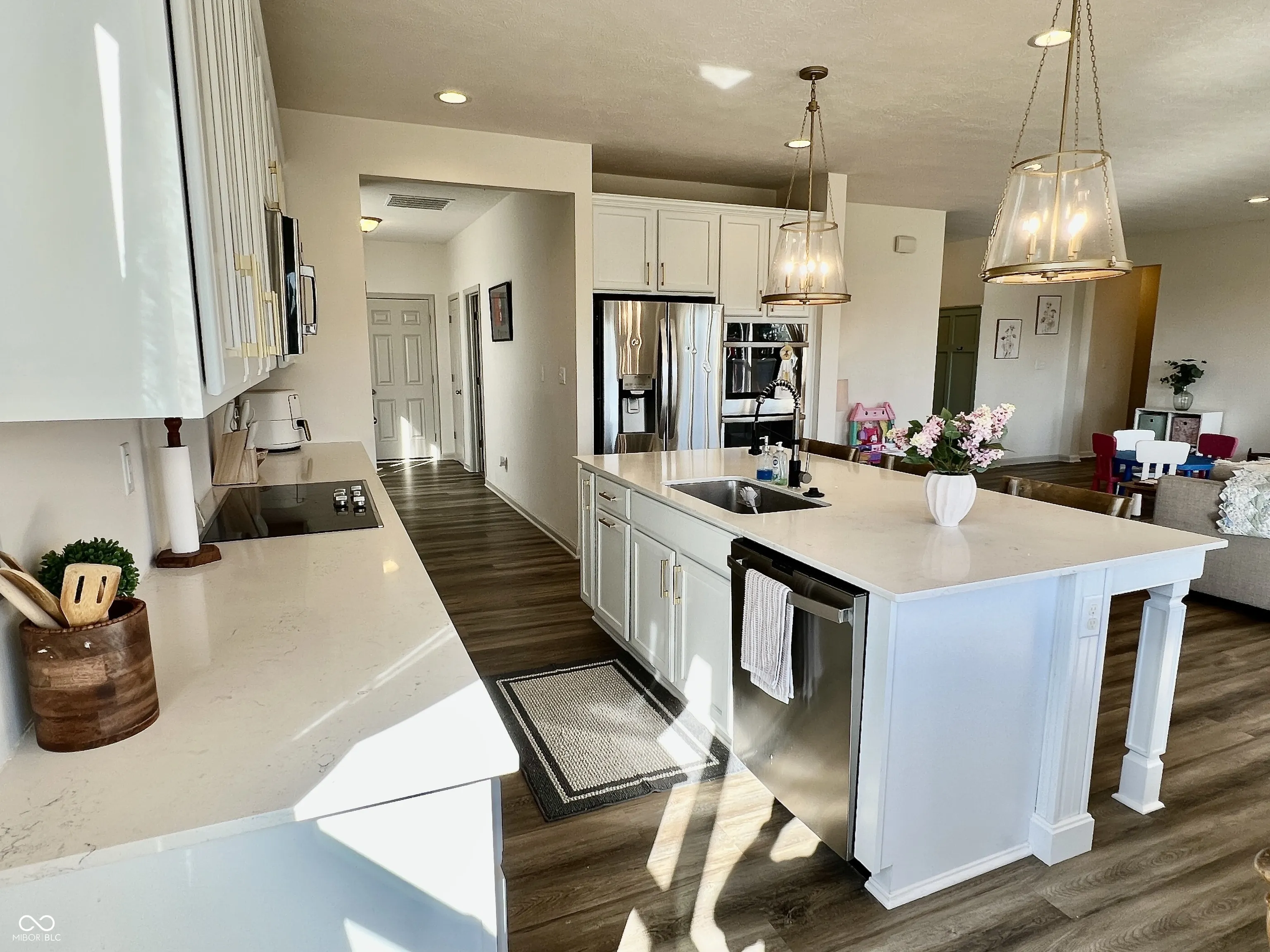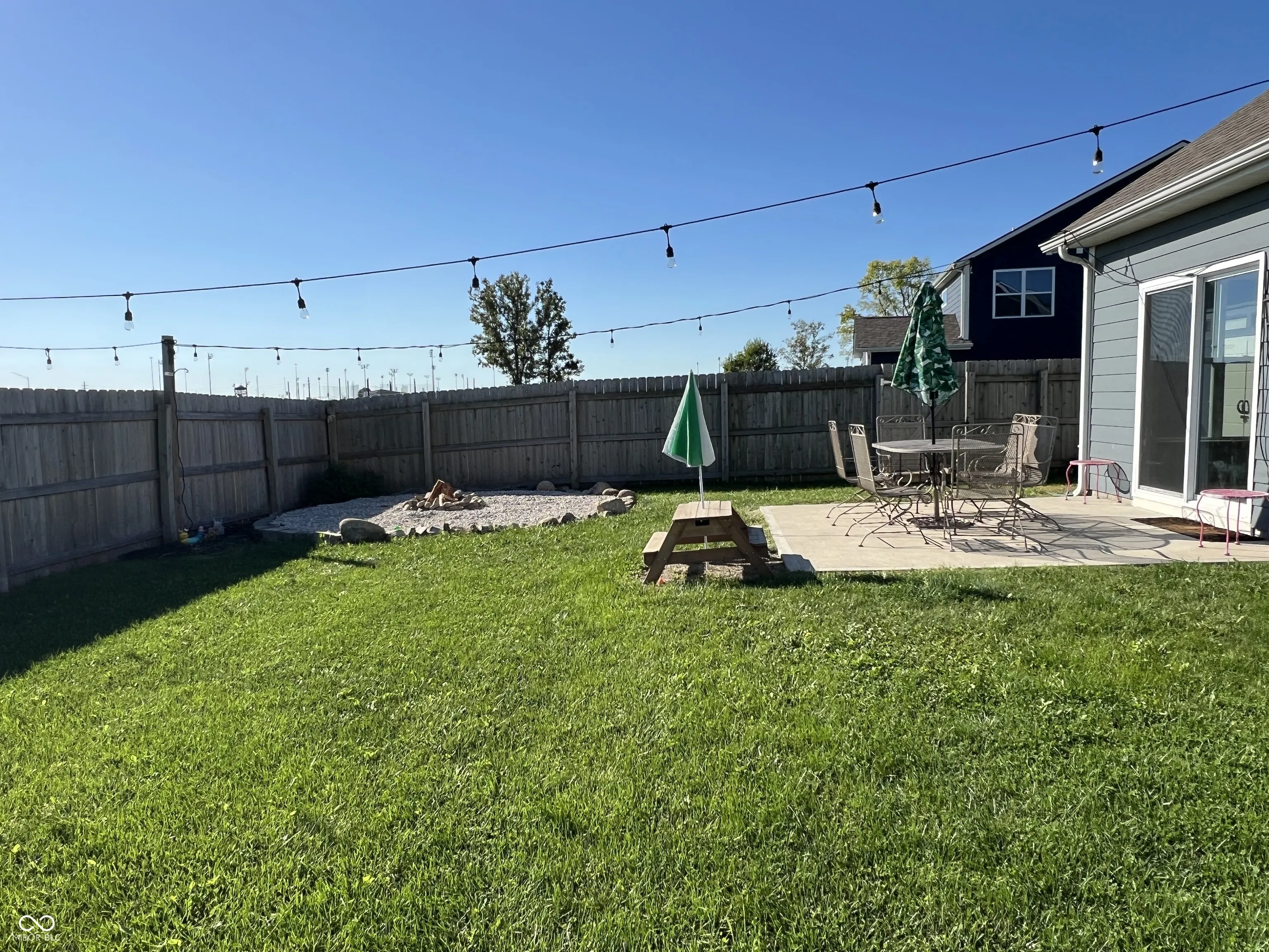 Beautiful ranch home built in 2020 with 2067 square feet has 3 bedrooms, 2.5 bathrooms and a full privacy fenced backyard. Open concept floor plan has spacious Great Room with lots of natural light that provides great space for entertaining friends and family with vinyl plank flooring that flow throughout most of the home. The Kitchen features quartz counter tops, built-in double ovens, electric cook top, microwave hood, big pantry, refrigerator and center island with breakfast bar. Plenty of space for a table of 6 or more in the dining area. Primary bedroom suite has dual sink vanity, walk-in closet, private toilet closet and shower/tub. Laundry room with included front load washer and dryer. Backyard has concrete patio, mini barn and fire pit circle. Home is only 5 years old. So all the major mechanicals like the roof, HVAC, water heater, and water softener have lots of life left in them for worry free operation. Close proximity to multiple access points to I-65 for quick access to Indy, Columbus or beyond.