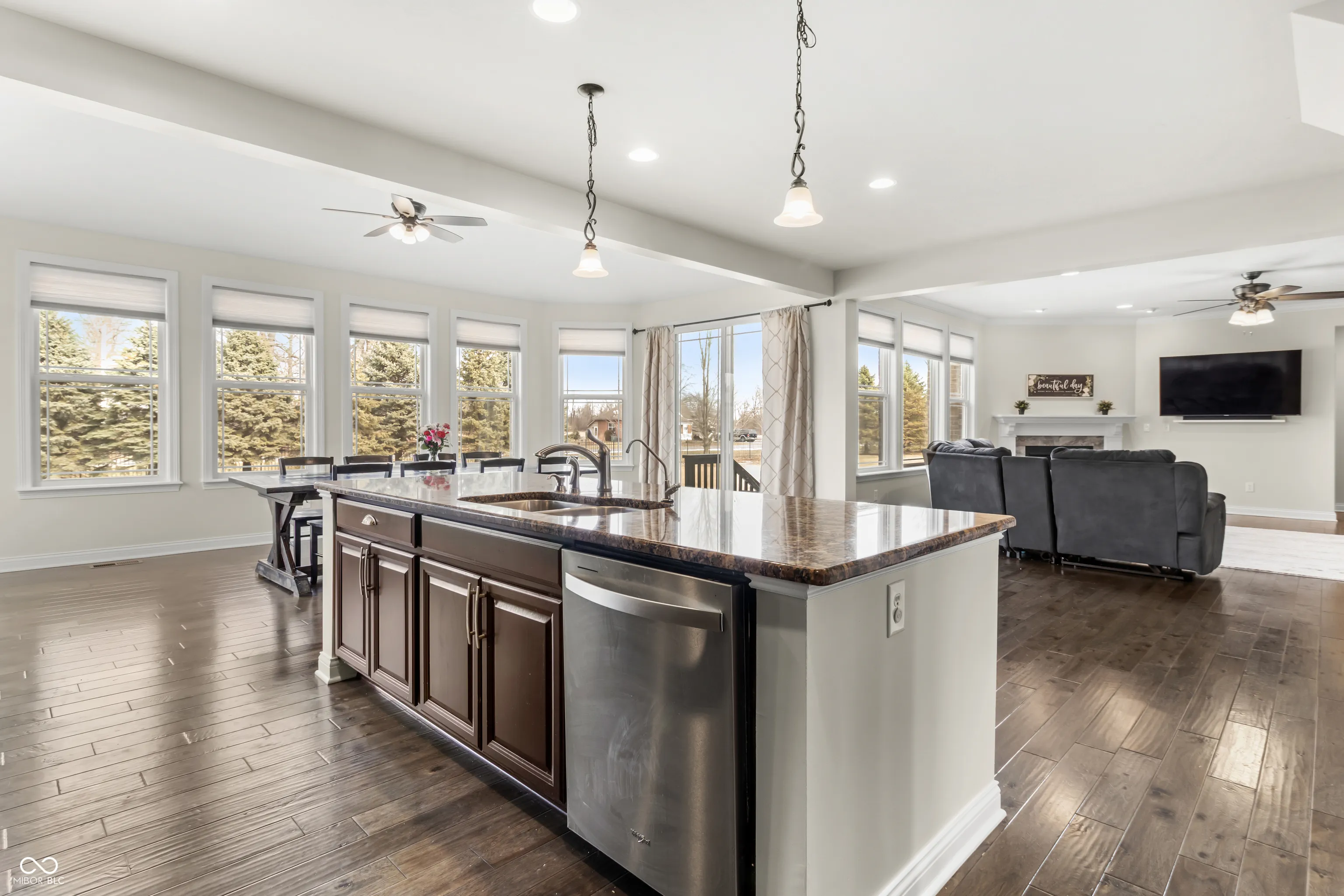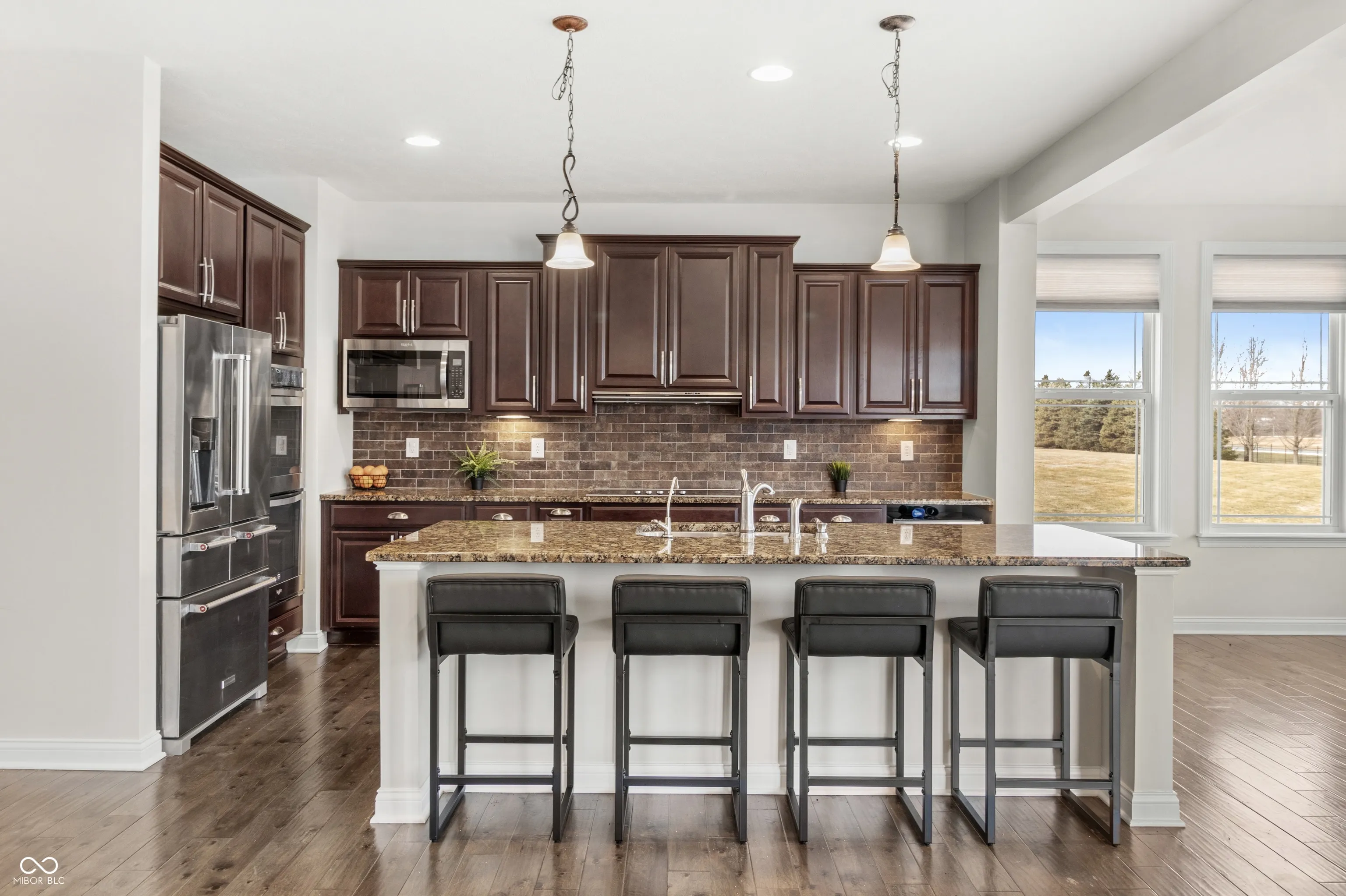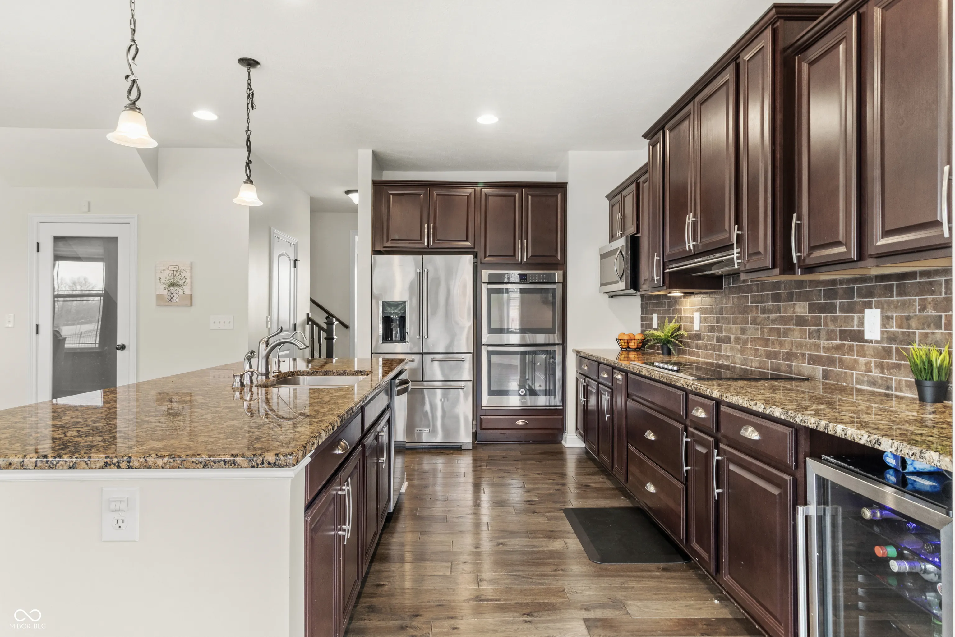 Welcome to refined living in Kennesaw, Brownsburg’s premier estate neighborhood. This stunning two-story home makes an unforgettable first impression with a dramatic, light-filled entry and an open-concept floor plan designed for both everyday comfort and elegant entertaining. Engineered hardwood floors, expansive windows, and thoughtful architectural details create a warm yet sophisticated atmosphere throughout. Offering 5 bedrooms and 5.5 baths, this home provides exceptional space and flexibility. A main-level bedroom with en-suite bath is ideal for guests or multi-generational living. The impressive finished basement features daylight windows, a full bath, dedicated storage, an exercise area, and plumbing in place for a future bar-perfect for entertaining on any scale. Upstairs, you’ll find a spacious loft, a dedicated craft or study area, a convenient second-floor laundry room, and generously sized bedrooms. Two secondary bedrooms share a well-appointed Jack-and-Jill bath, while the luxurious primary suite serves as a private retreat with dual vanities, dual walk-in closets, a deep soaking tub, and an oversized walk-in shower with dual shower heads. The gourmet kitchen is a chef’s dream, showcasing stainless steel appliances, a wine cooler, and an expansive breakfast bar ideal for gathering. A functional mudroom connects seamlessly to the oversized four-car garage, offering both practicality and ample storage. This exceptional property blends luxury, comfort, and thoughtful design in one of Brownsburg’s most sought-after communities.