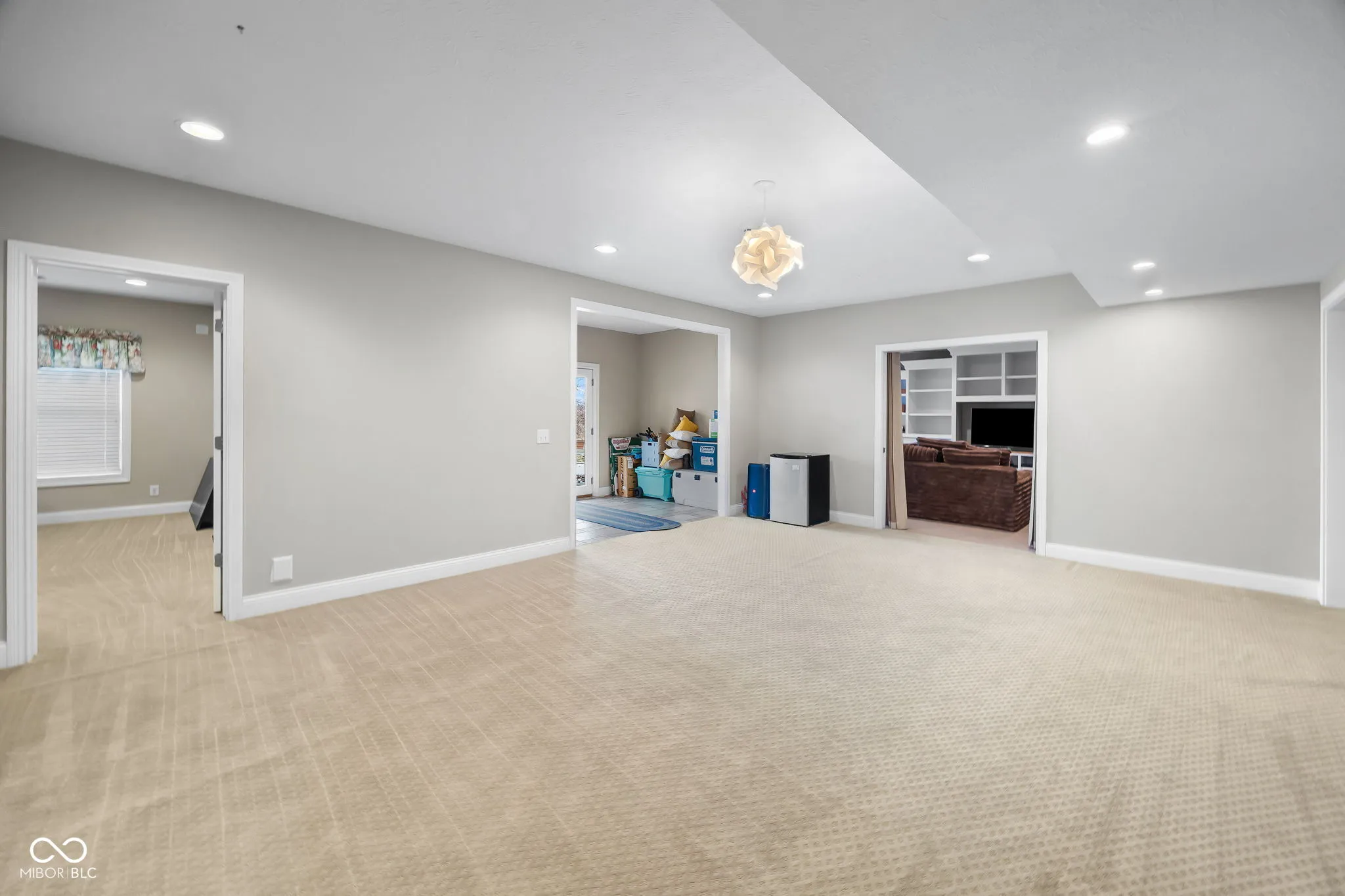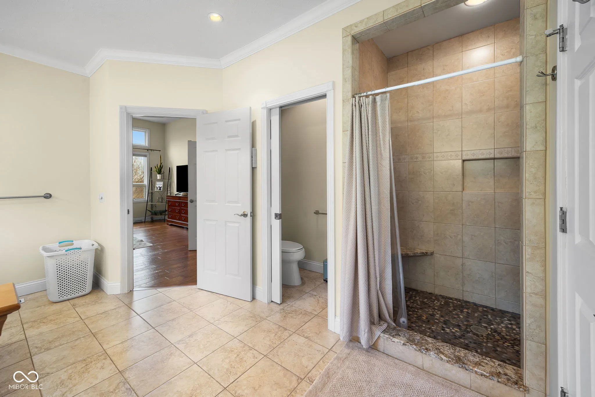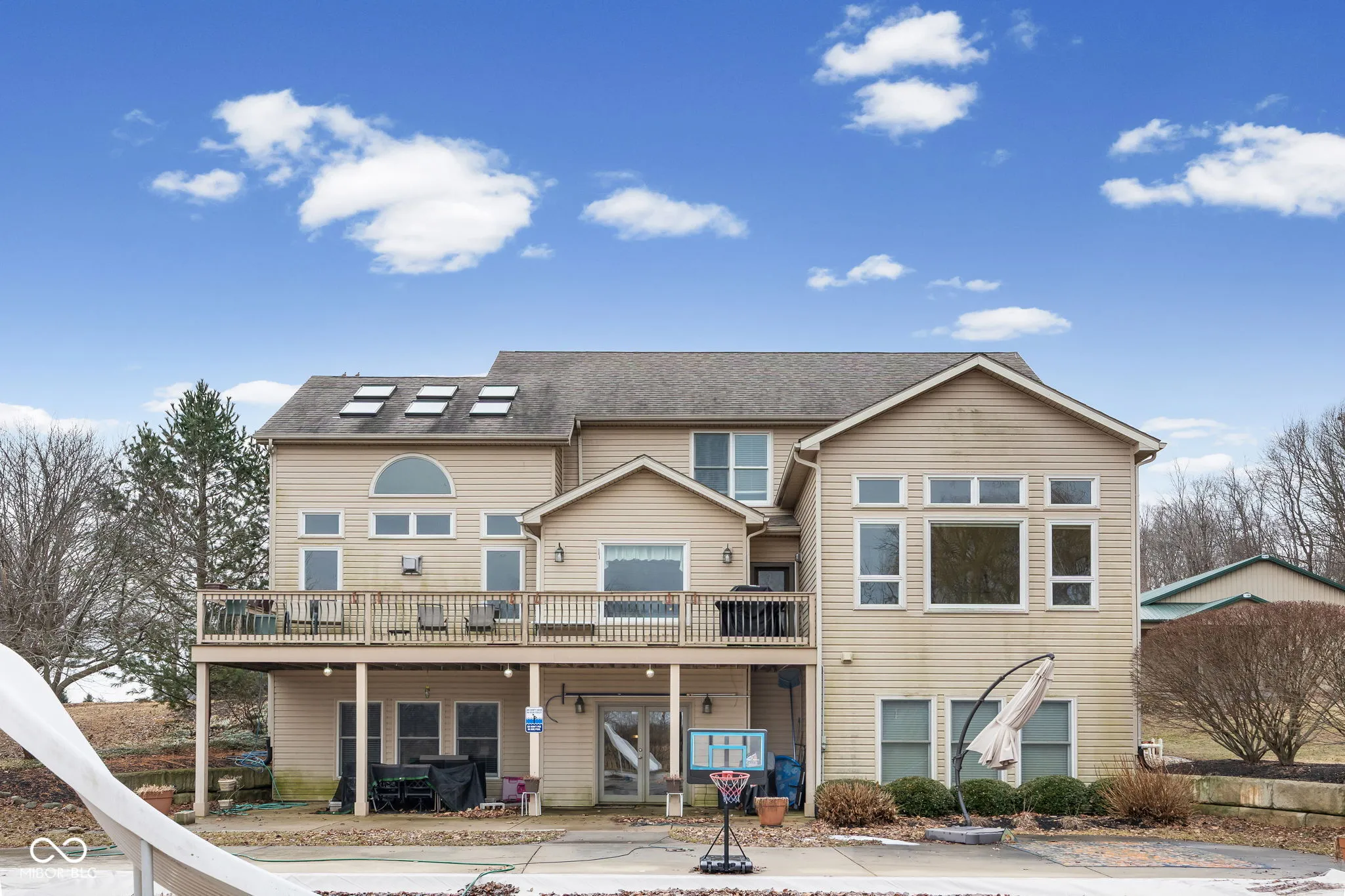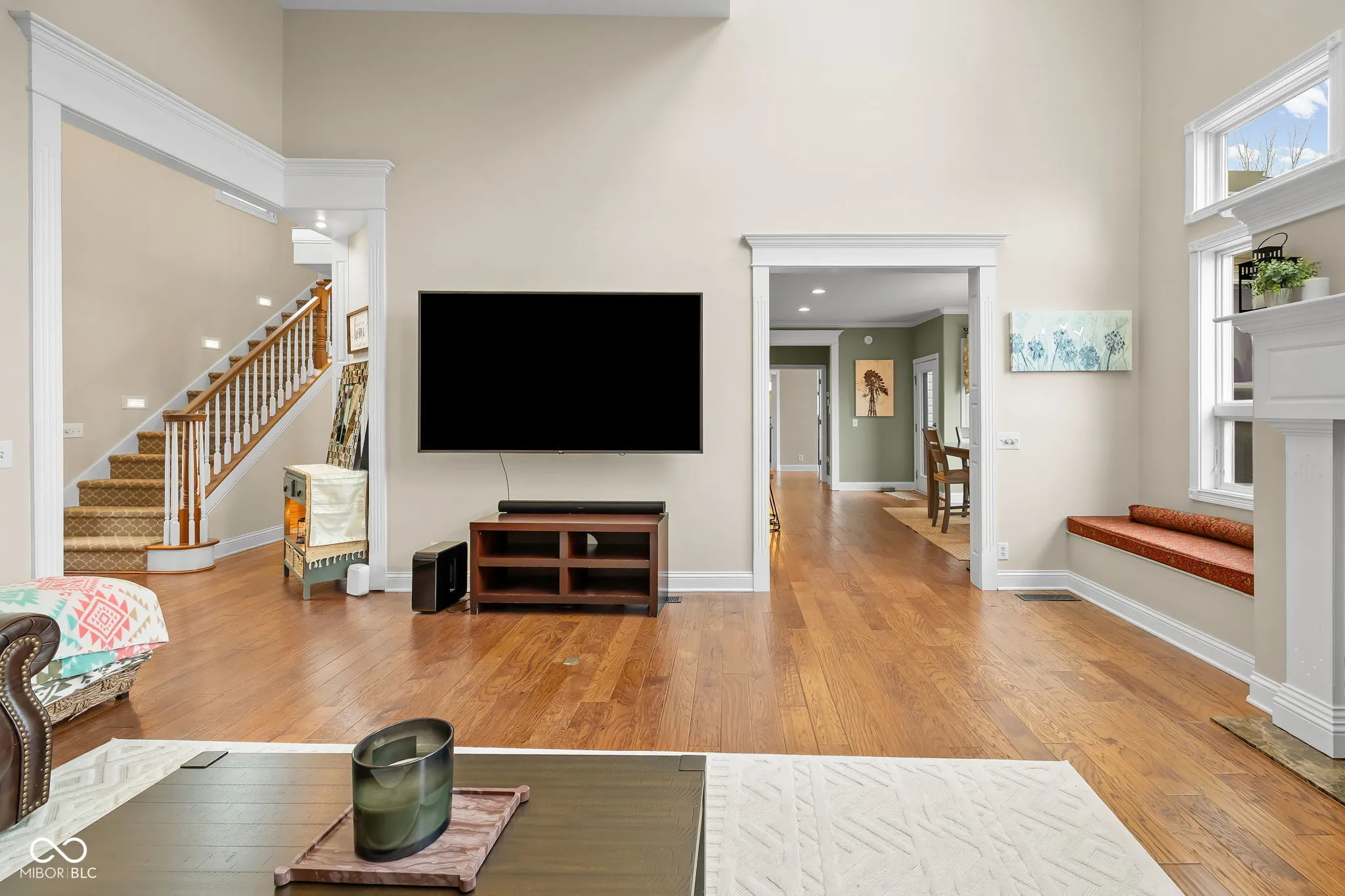 Over 4,800 finished sq ft on 3.4 acres with a 2.5-car attached garage and finished walkout basement. Private setting with in-ground pool and wooded views. Separate driveway leads to a 36×18 pole building with radiant heated floors and overhead door, ideal for workshop or RV storage. Energy-efficient geothermal heating and cooling system also supports the water heater. Main level features hardwood floors, two-story living room with fireplace and wall of windows, formal dining room or den, and first-floor primary suite with heated floors, tiled shower, and huge walk-in closet. Kitchen offers custom cabinetry, stainless appliances, gas cooktop with hidden vent, granite counters, walk-in pantry, and breakfast nook. Finished walk-out basement offers flexible living space with new bar area with built-ins & granite counters, guest room, full bath, den, family room, rec space, built-ins, and storage. Pool liner, cover, heater & filter all new within past 2 years. Winktek fiber internet. Country setting with quick access to US 231.