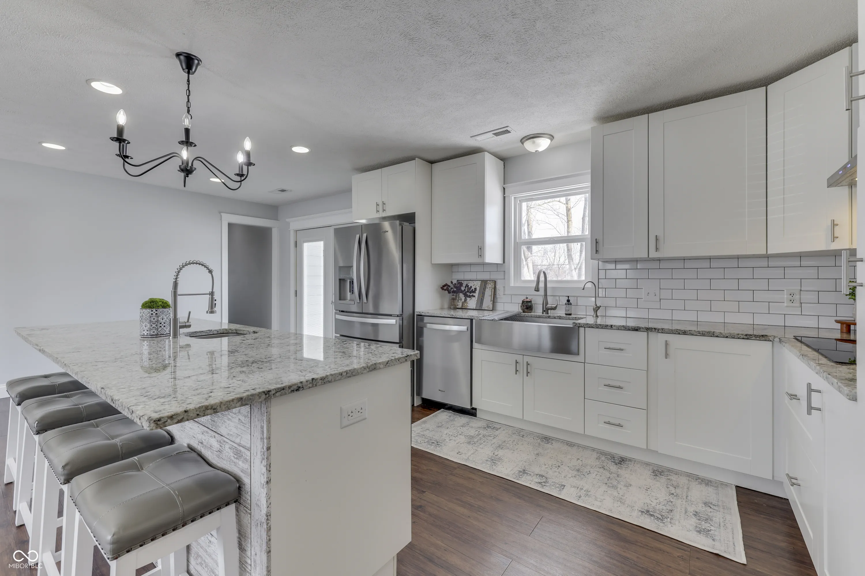 A rare and exciting opportunity to own this unique property in Franklin Township. This 3 bedroom, 3 bath 1958 home has been completely updated and includes a 1620 sq ft detached storage barn with a perfect one bedroom studio for mom when she visits. The main residence offers approximately 2886 square feet of living space across the main level & basement. An open layout creates an inviting atmosphere in the family room, dining and kitchen, perfect for entertaining or everyday living. Primary Bedroom with ensuite and spacious laundry room made complete with your very own Dog Wash Station. The detached storage barn offers exceptional storage for vehicles, hobbies, or recreational equipment. The storage barn studio offers approximately 400 square feet of comfortable living space with one bedroom and full bathroom, full kitchen with all appliances (refrigerator, mini split, microwave, stove) staying, on demand water heater and stacked washer/dryer. Sliding glass door provides direct access to a private firepit area for entertaining. This property includes a wonderful basketball court and is on three acres. Ideally located near local dining, shopping and offers quick access to Indy area attractions.
