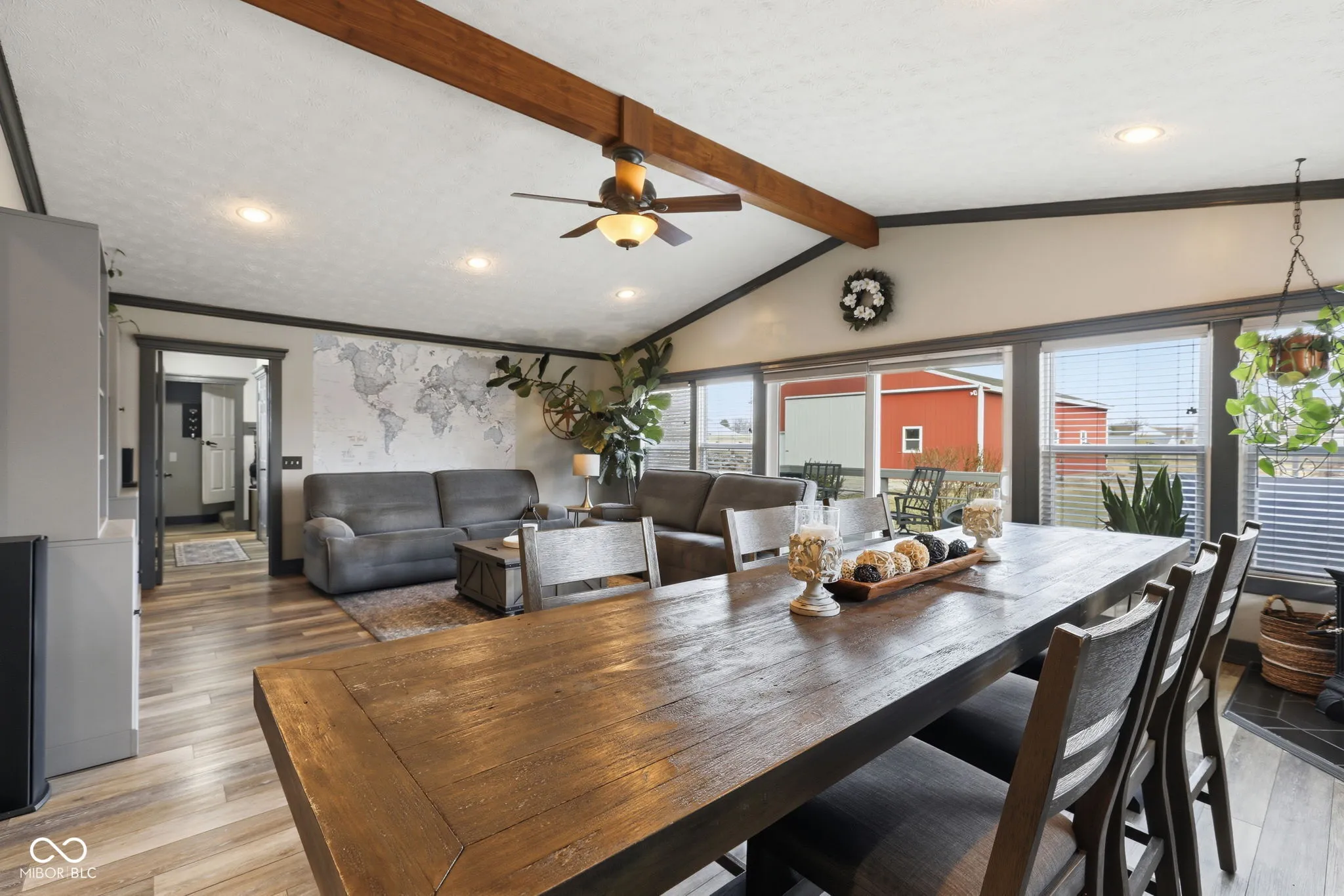 Opportunities like this are very rare – especially in Fishers/Noblesville where properties like this simply do not come around often! Completely reimagined and thoughtfully remodeled, this updated farmhouse sits on 2.36 acres and delivers with character and high-end finishes. The showpiece kitchen is built to impress, anchored by a massive 12′ x 4′ island with a gorgeous, hammered copper farm sink, commercial-grade gas range, custom cabinetry, and a giant walk-in pantry. Just beyond the dream kitchen, the dining space is made for gathering – perfectly sized for a true farmhouse table and warmed by cozy wood-burning stove and flows effortlessly into a bright, airy family room with soaring cathedral ceilings and tons of natural light. The main-level primary suite is a true retreat, offering a completely remodeled spa-like bath with a custom-tiled shower, elegant furniture-style vanity, and a large walk-in closet with custom organizers. Above the main house, you’ll find two generously sized bedrooms and an updated full bath, including a standout bedroom with a sitting area and homework space plus a large walk-through closet. An expansive private fourth bedroom sits above the practical and convenient attached 3 car garage that offers plenty of room for vehicles and gear. A true ‘wow factor’ lies outback with a 60′ x 40′ pole barn that is fully equipped with its own electric, a full bathroom, game room, and office/storage space and a large sliding door for large vehicles and equipment. The outdoor amenities don’t stop there: unwind on the expansive wrap-around deck, soak in the hot tub, play pick-up games on the basketball court, tend to your feathered or furry friends in the chicken/rabbit coop, or just enjoy the huge 1+ acre fenced pasture. This property offers endless opportunities for gardening, recreation, or simply savoring the space and fresh air. Seize the opportunity to get your slice of paradise today!