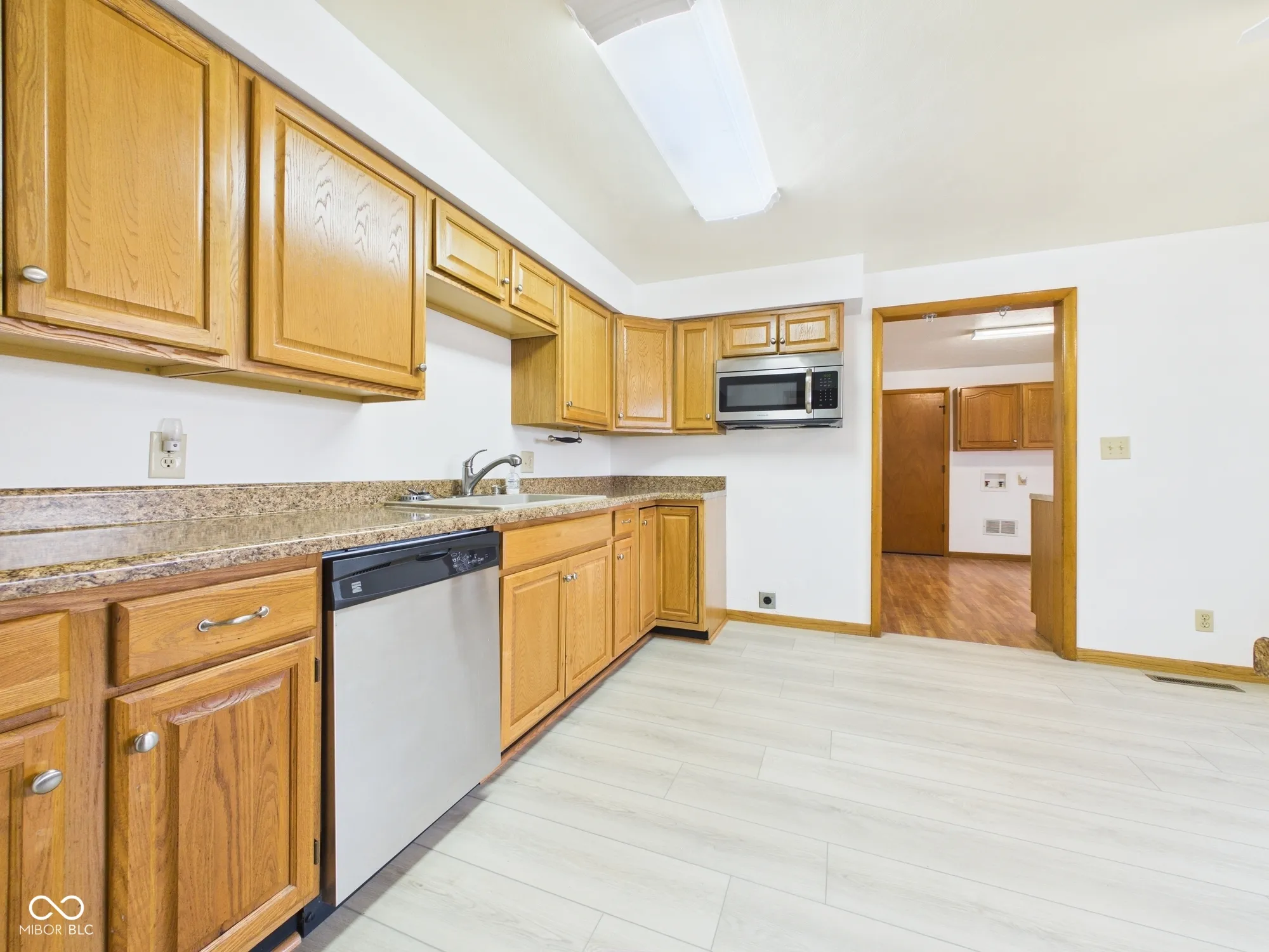 At 719 Rainbow BLVD, ANDERSON, IN, USA, an inviting single family residence awaits, presenting a ready to move in opportunity for its fortunate inhabitants. The heart of this residence, the kitchen, features updated Kitchen and countertops, providing a sophisticated surface for culinary creativity and everyday enjoyment. Two updated full bathrooms, one boasts a beautifully tiled walk in shower, offering a refreshing oasis for relaxation. Three peaceful bedrooms offer individual sanctuaries within the 1301 square feet of living space. This home includes new furnace, AC and New flooring throughout. Beyond the interior, an expansive 12986 square feet lot provides ample outdoor possibilities, featuring a delightful, covered patio perfect for fun outdoor activities and memory moments. A secure fenced backyard offers a private expanse for outdoor pursuits. Inside, a large, double doors to back patio, includes a laundry room streamlines household tasks. This distinctive single family residence harmonizes comfort, convenience, and unique design, promising an elevated living experience.