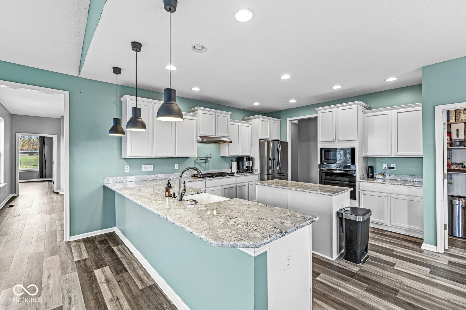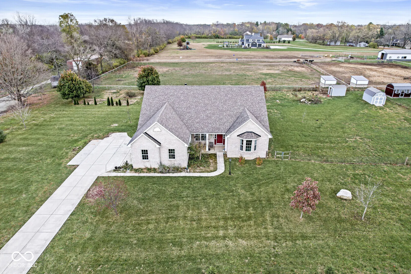 Welcome to country living just minutes from the city! Nestled on nearly 2 acres and backing up to a majestic horse farm, this 5830 sqft ranch with a finished basement will give you the best of both worlds. Built in 2017 with a main floor primary suite, fully updated kitchen, walk-in pantry, spacious office, laundry room, mud room, and two more bedrooms. The fully finished basement has 3 more bedrooms, entertainment area, workout area, office area, and a full bathroom. This custom home was also built with special needs in mind meeting ADA specifications! With a fenced in backyard and mini barn, you will have ample space for a garden, chickens, and family to run! An east facing hearth room will allow you to enjoy the morning sunrise over the farm as you drink your coffee, and beams of natural light throughout the day. This home is just begging for you to make it your own and build your homesteading dreams just minutes from Hamilton Town Center and i-69!
