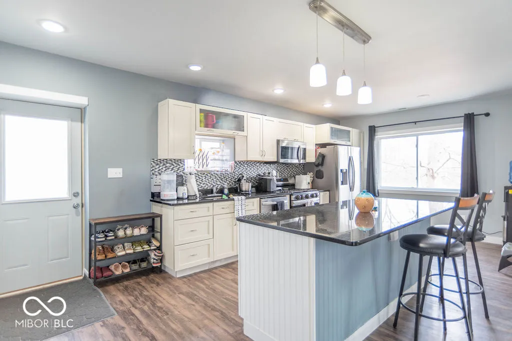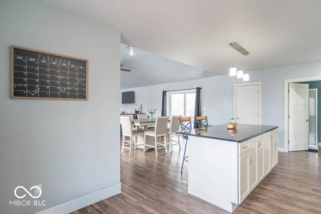 Hilltop home with lake views in sought-after Lake Hollybrook. This 1,812 sq ft property offers 2 bedrooms, 2 full baths, and an open-concept layout with vaulted ceilings and modern finishes throughout. The updated kitchen features a large center island, granite countertops, stainless steel appliances, and flexible space for a breakfast nook or additional cabinetry. The main living area flows seamlessly to patio doors leading to a fenced backyard and private patio, ideal for outdoor dining or pets. The primary suite includes abundant natural light, a walk-in closet, dual vanities, and a walk-in shower. The second bedroom offers generous closet space. Durable vinyl flooring runs throughout the home for low-maintenance living. Additional highlights include a detached 2-car garage, expansive front porch, and elevated lot with scenic water views. Located near lake access and recreational opportunities, this home combines functional living space with a peaceful setting.