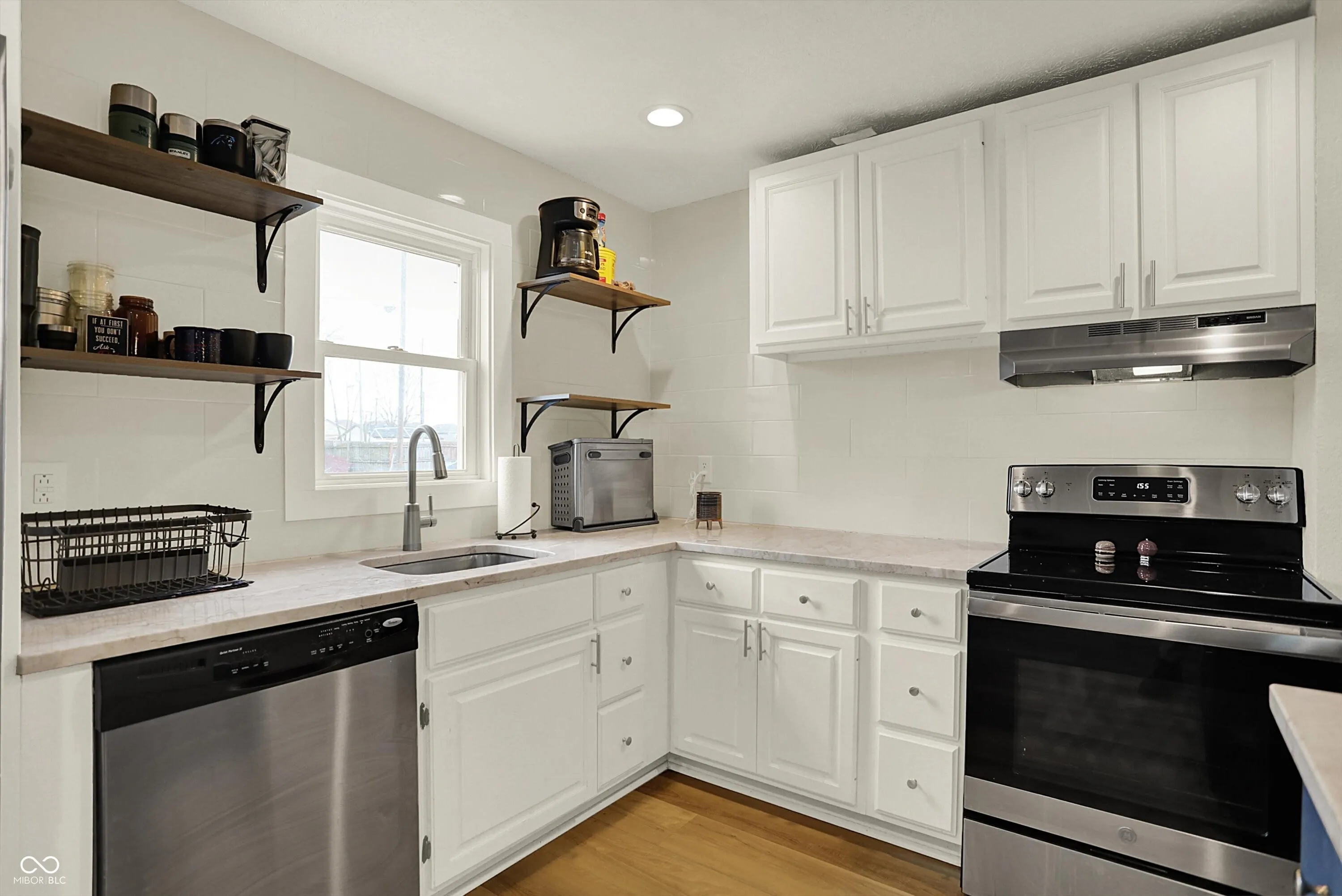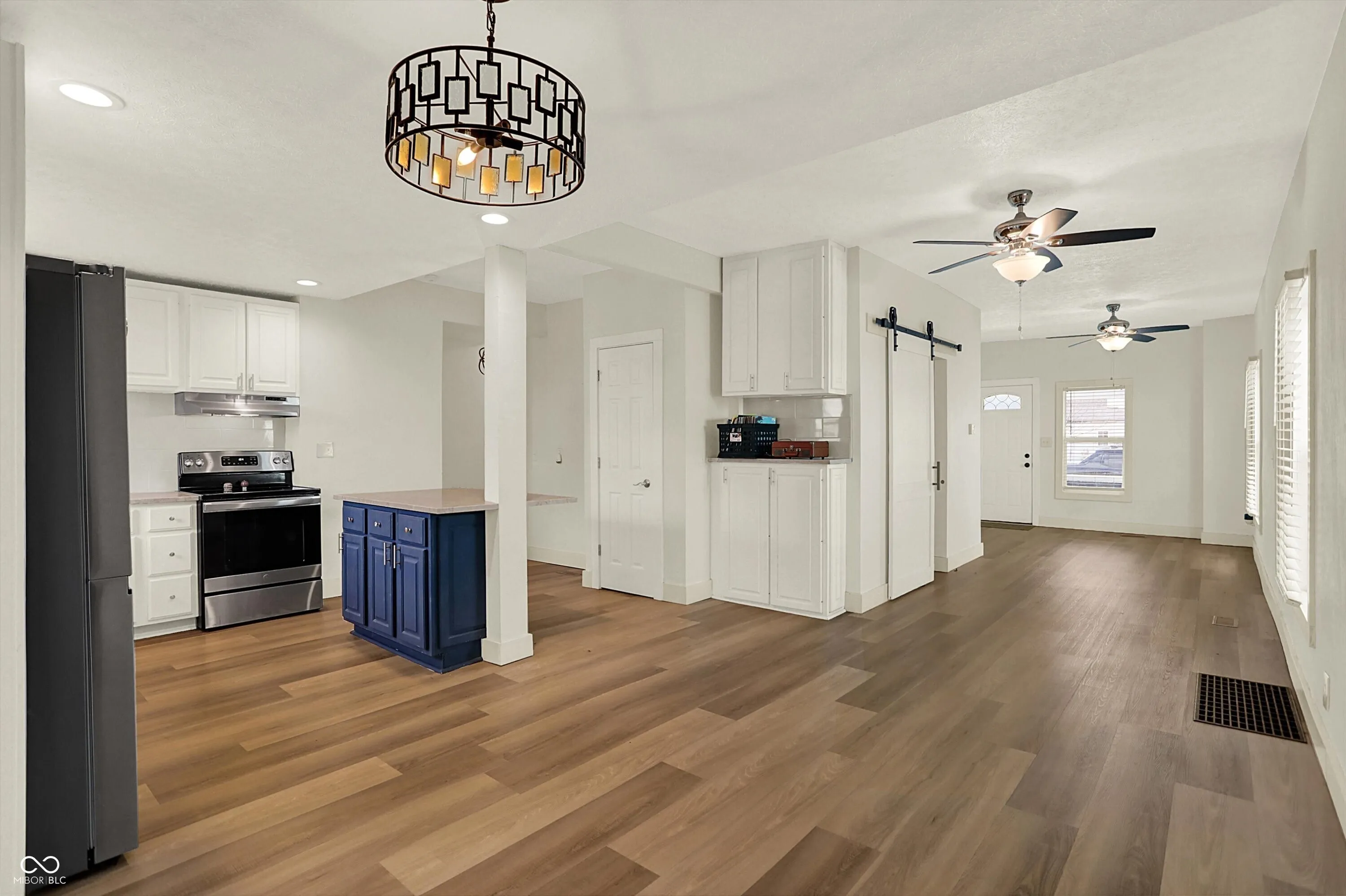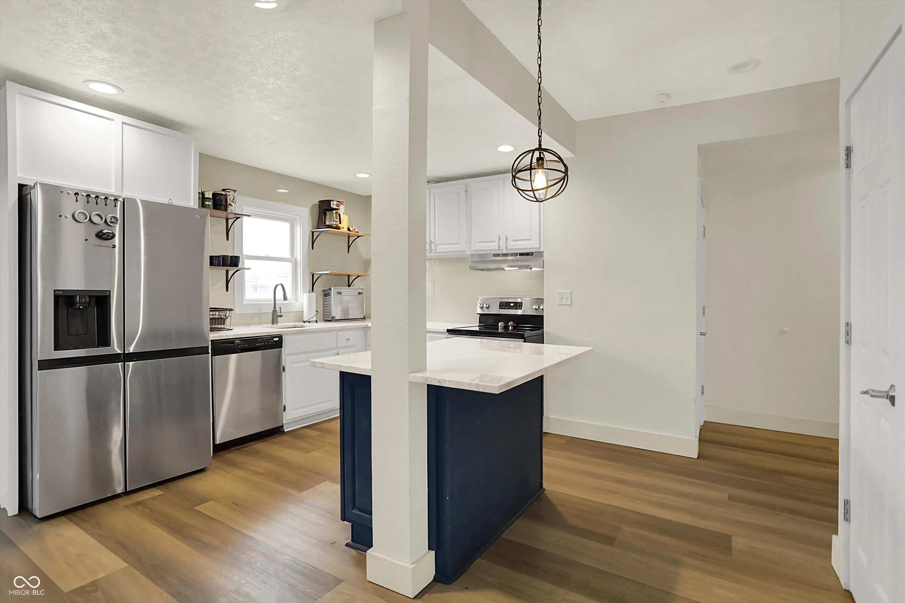 Fully updated and truly move-in ready, this charming home pairs classic curb appeal with a modern, open layout and finishes you’ll love from day one. Step in from the covered front porch to bright living and dining spaces with durable luxury vinyl plank flooring, then into a standout kitchen featuring granite counters, center island with breakfast bar, pantry, and stainless appliances-perfect for everyday life and easy entertaining. The main-level primary suite offers the convenience buyers want, complete with an updated bath and double-sink vanity, while the upstairs bedrooms and bath provide comfortable flex space for guests, office, or hobbies. Out back, enjoy a fully fenced yard with a deck for grilling and relaxing, plus alley access and off-street parking. Coffee mornings, dinner nights-this one delivers. Set in an affordable, fast-changing westside location near Speedway and downtown, you’re also just blocks from the expanding B&O Trail connection for quick access to outdoor recreation and future west corridor amenities.