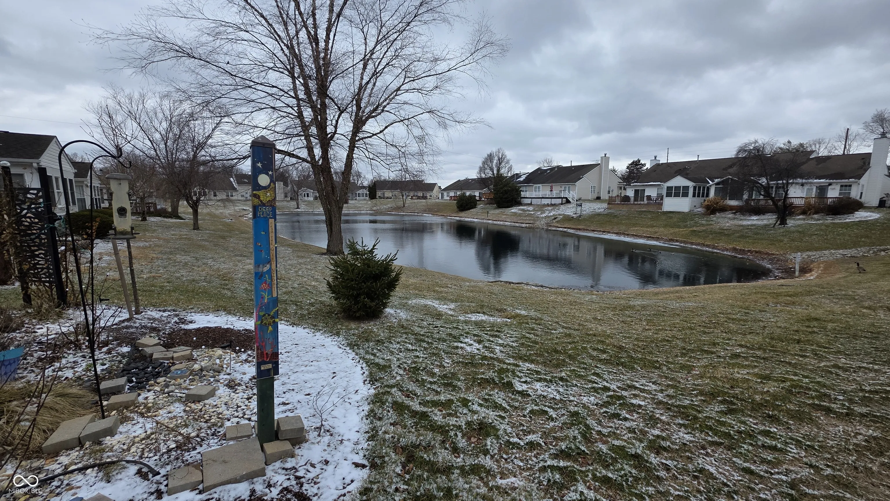 Welcome home to this beautifully updated 2-bedroom, 2-full-bath residence in the desirable Spring Creek community of Pike Township. This inviting home features a spacious great room with soaring cathedral ceilings and a cozy gas fireplace, creating a bright and open living space perfect for relaxing or entertaining. Enjoy peaceful pond views from the main living areas and the private backyard. The primary suite offers a full bath and walk-in closet, while the front bedroom showcases cathedral ceilings and a large window that fills the space with natural light. The updated kitchen is sure to impress with stainless steel appliances, painted cabinetry, and elegant quartz countertops. Luxury vinyl plank flooring and updated light fixtures throughout add a modern, cohesive feel. Step outside to a large rear patio ideal for outdoor dining, grilling, and enjoying tranquil water views. Take notice of the photos and the gorgeous flowers. Conveniently located just minutes from Eagle Creek Park, shopping, dining, and only 10 minutes to downtown Indianapolis, this home offers both comfort and convenience. I year home warranty included. No age restrictions. There are rental caps in this neighborhood. A must-see today!