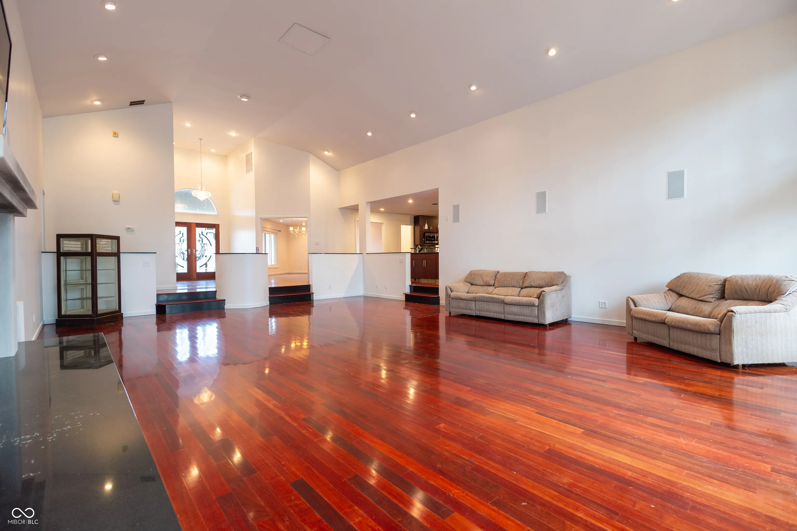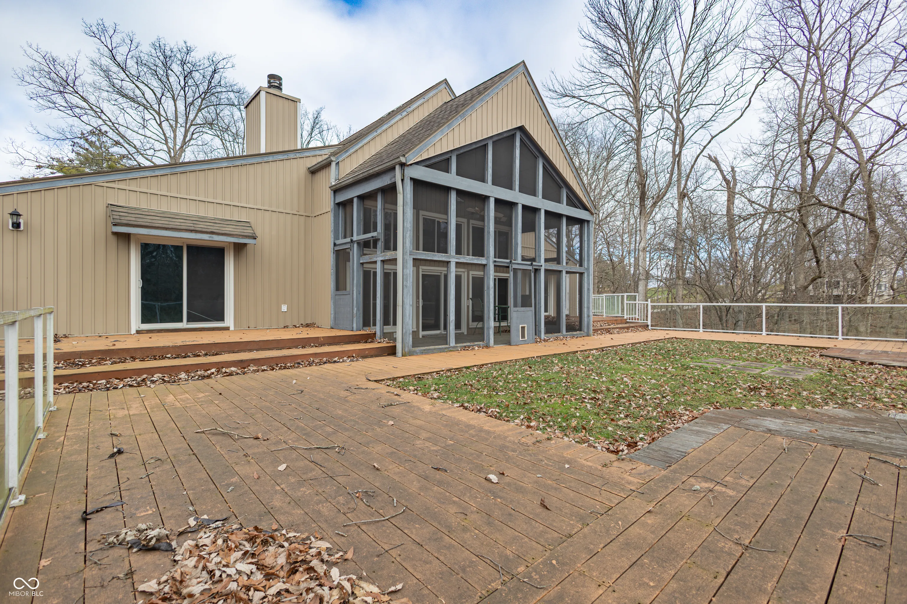 Nestled on five private wooded acres within the gated Eagle Pointe Resort at Lake Monroe in Bloomington near IU. This home stands as the communities only standalone custom residence. It is free from Village HOA fees and restrictions. Yet it enjoys full access to the championship 18 hole golf course along with the pool complete with cabana bar restaurant pickleball courts and entertainment venues. This striking five bedroom 5.5 bath masterpiece spans over 5300 square feet. Soaring 16 foot ceilings highlight every room. Floor to ceiling windows fill the space with natural light. Rich Brazilian Jarrah hardwood flows throughout. A dramatic gas fireplace opens seamlessly to a 3000 plus square foot wraparound deck. The deck is accessible from the great room and four bedrooms. It is perfect for enjoying serene wildlife views year round. The gourmet kitchen boasts quartz counters. Custom stone cabinetry lines the walls. A walk in pantry offers storage. A pot filler three sinks and new Samsung double ovens complete the setup. The lavish owners suite delivers a glass burning fireplace. It includes a steam shower jetted tub private laundry and abundant built ins. Radiant floors warm the home. A second walk out deck extends the outdoor living. Whole home audio entertains throughout. Three HVAC zones maintain perfect comfort. An oversized four car garage features a Tesla charger and oil change pit. This rare legacy property blends absolute seclusion with resort luxury. Schedule your private showing today before it is gone.