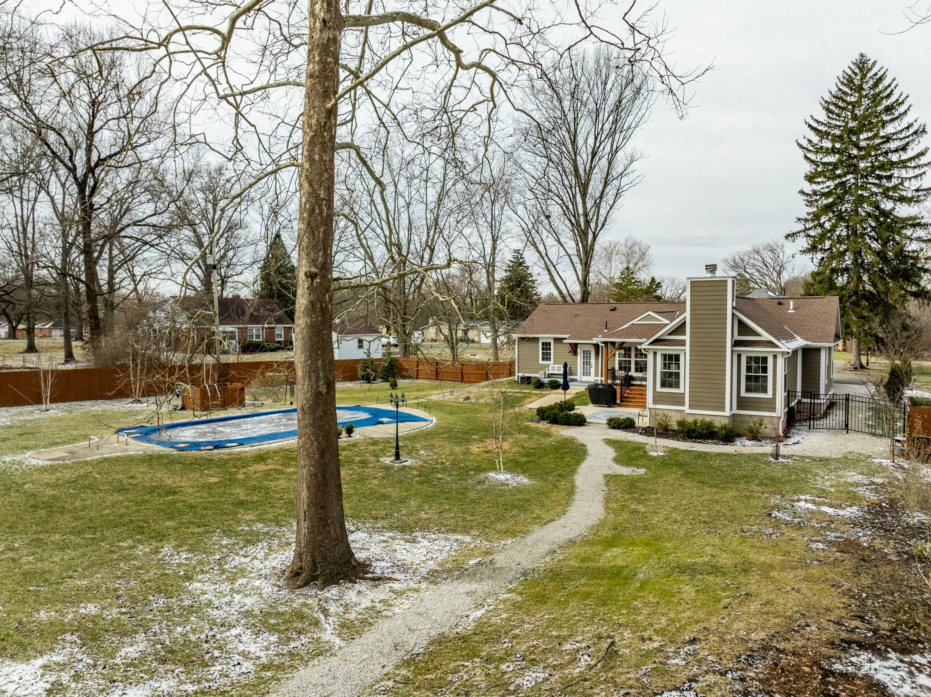 This beautifully renovated ranch is a dream with every detail thoughtfully updated. Featuring all-new Hardie board siding, windows, roof, gutters with guards, covered front and back porches, and professional landscaping, the exterior is just as impressive as the interior. Inside, you’ll find a brand-new kitchen with quartz counters, marble backsplash, and new appliances, solid oak hardwood floors throughout, new trim, and a cozy nook. Check out our feature sheet for a full list of updates and features! The spacious and luxurious primary suite, newly constructed with 2″x 6″ framing, is a must see. It includes a luxurious bath and a custom wood burning fireplace with gas insert. The home now connects to city water, has improved drainage, and a pool. With a full basement and thoughtful updates throughout, this home is a rare find that blends comfort, style, and quality.