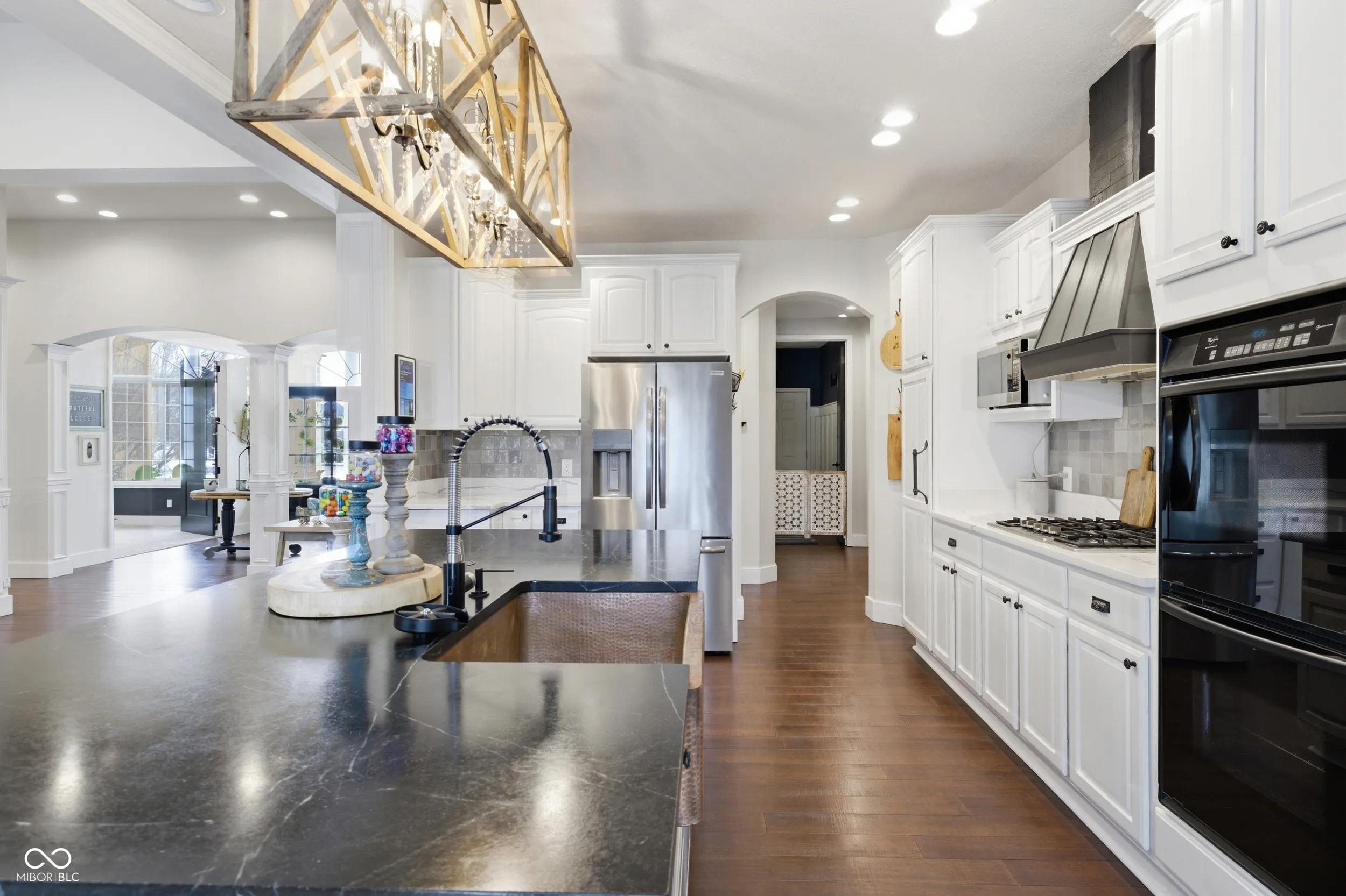 Welcome to this beautifully designed 4-bedroom, 3.5-bath ranch with a full finished basement in desirable Brownsburg-where thoughtful design meets exceptional indoor-outdoor living. The main level offers a split floor plan and an inviting open-concept layout anchored by a spacious great room with a gas log fireplace. The kitchen is a true showstopper, featuring a center island with soapstone countertop, copper sink, quartz countertops, and stainless steel appliances, all seamlessly open to the great room-perfect for everyday living and entertaining alike. The finished walk-out basement expands your living space with a second gas log fireplace in the family room, a stylish bar and wine closet, 4th bedroom, and 3rd full bathroom. An additional room offers flexibility as a home gym, theater room, or hobby space. Step directly outside to the patio – great for entertaining. Out back, enjoy your own private retreat with a deck, outdoor patio, fire pit and a tranquil koi pond, creating an ideal setting for relaxing evenings or hosting gatherings. Located in Windridge Landing, in Brownsburg, this home offers access to top-rated schools, parks and trails, including the popular B&O Trail, and convenient proximity to shopping, dining, and commuter routes-combining peaceful neighborhood living with everyday convenience. This home truly has it all-space, style, and a setting designed for both comfort and entertaining.