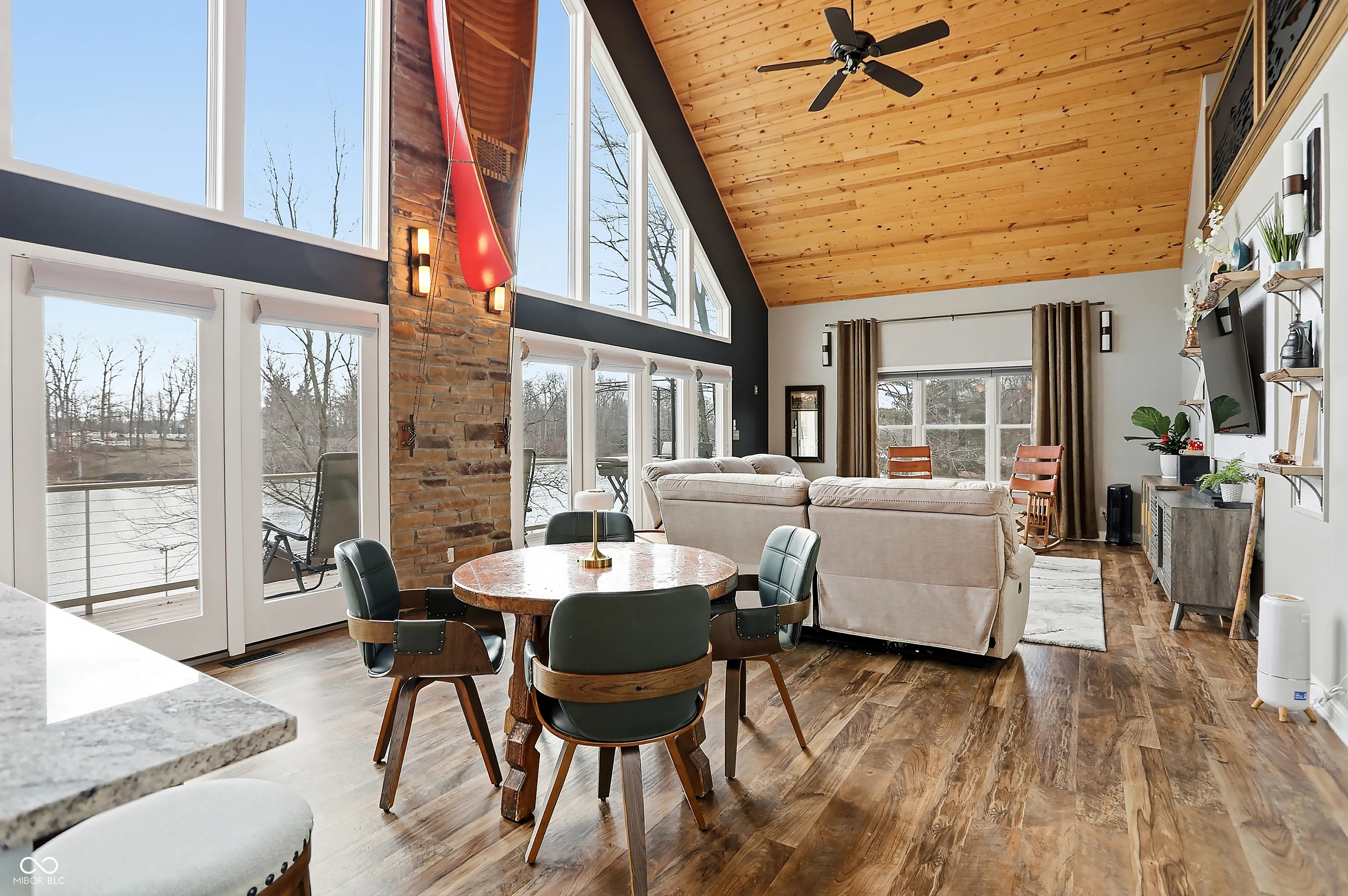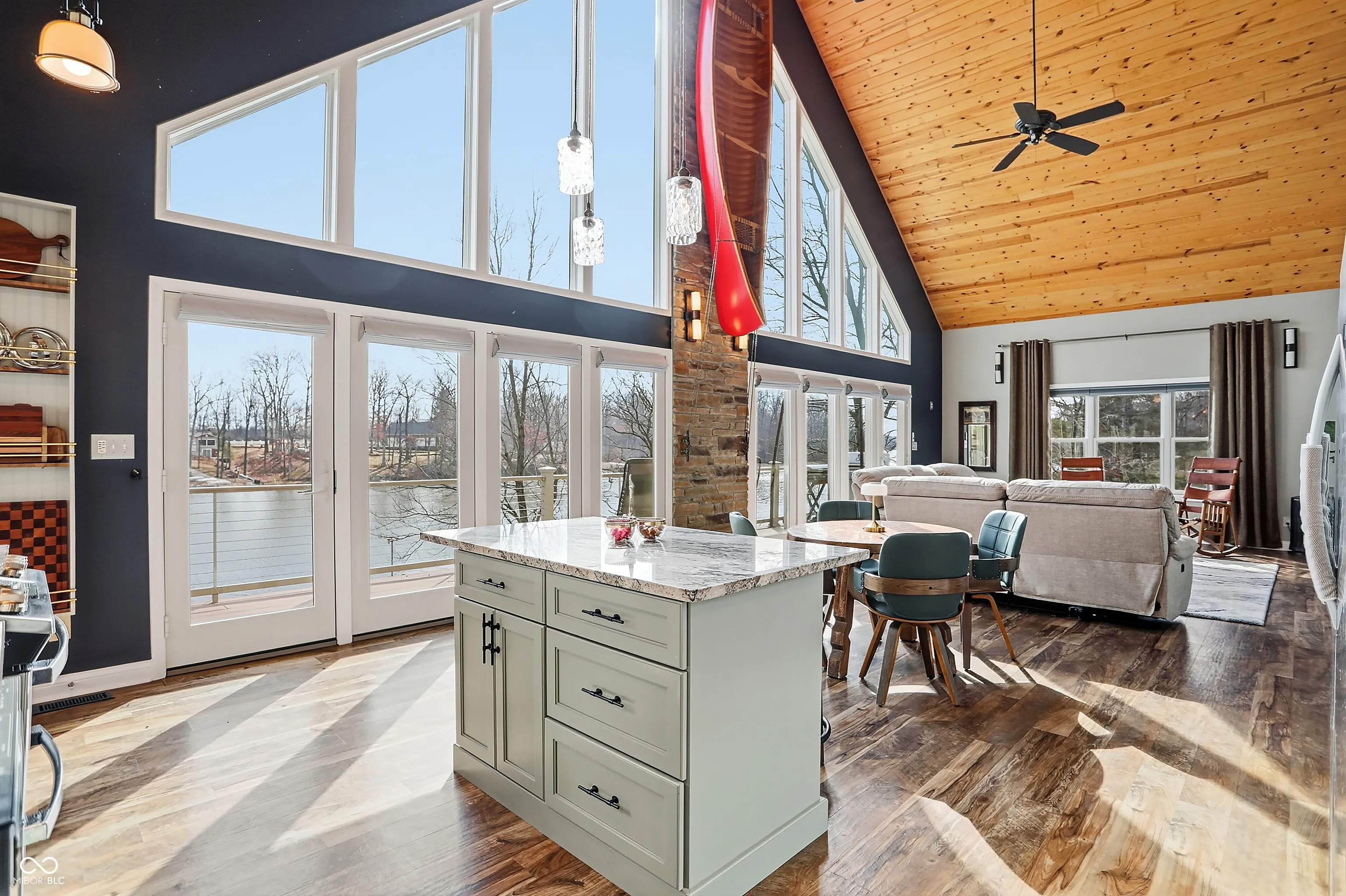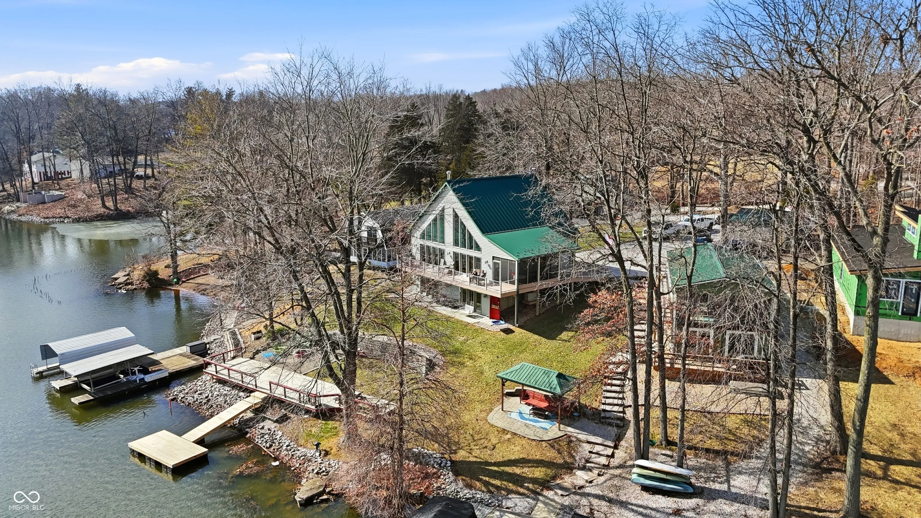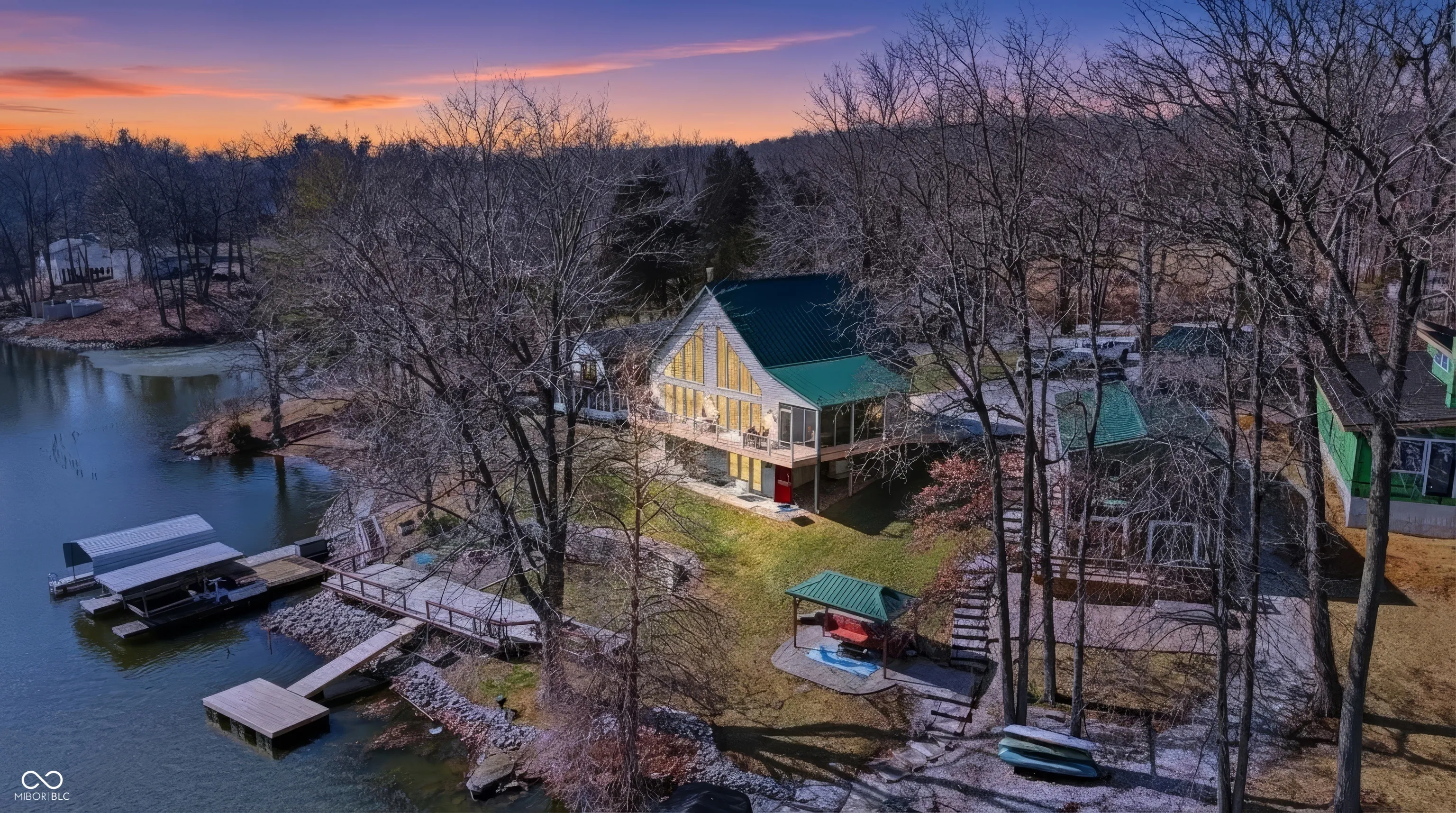 Welcome to your Slice of Paradise on Paint Mill Lake! This beautiful, highly-coveted 86-acre lake a mere 10 min from Terre Haute doesn’t present opportunities often. Consider this 2016 high-end custom build sitting on .86 acres. Sophistication & intentionality on display at every turn: Floor-to-ceiling, main level, eastward-facing windows expertly maximize the lake view & allow morning sun to pour in. Step outside onto an expansive cantilevered main-level deck overlooking the large backyard, gargantuan waterside deck & newly-installed dock customizable for expansion; brilliantly-designed to fully capture the lake’s grandeur. Add’l stunning features include hand-built oak wood stairs/trim, knotty pine ceiling, solid wood cabs/doors, a 22kw whole-home generator, 11×11 panic room guarded by a 600lbs metal door, geothermal HVAC, upscale kitchen appliances including a gas range, & the must-see conversation piece = an outside, custom-built, sawed-off hot/cold jon boat shower for rinsing off before heading inside. The front ramp entry gives the option to head inside through 36in wide doors to the 14×9 entry room (great for storage/staging area) or head straight to the 16×9 screened-in patio. The 26×17 loft upstairs & 20×16 walkout basement w add’l kitchen are vast flex spaces for a home office, accommodating more guests, workout room, art studio & more. A large carport provides shelter for cars & toys while the long driveway is perfect for lots of guest parking. The Paint Mill Lake Community is an oasis; a one-of-a-kind respite from a fast-paced world. No motors on the lake before noon ensures tranquil mornings on your back deck or by the water (well-stocked with crappie & much more!). But events like the 4th of July community fireworks bring plenty of excitement as well as the often-soaring bald eagles! In addition to all Terre Haute has to offer, Paint Mill Lake is only 1hr from the Indy Airport, 10min from I-70 & Terre Haute Regional Airport, & only 3hrs from Chicago!