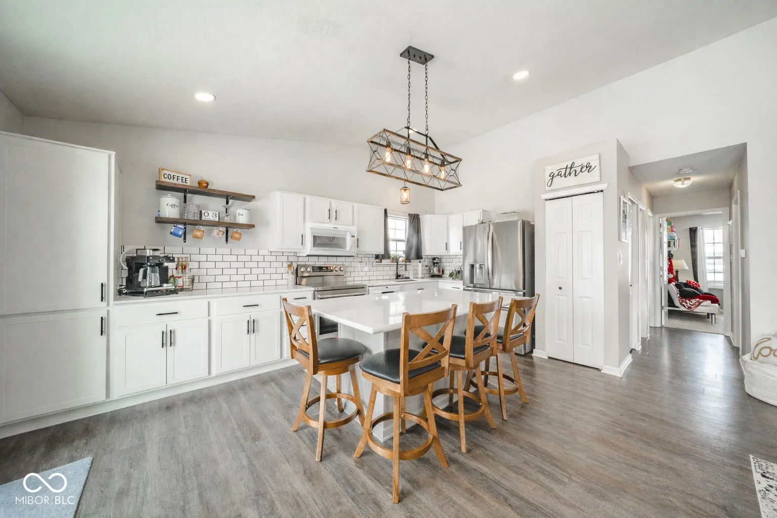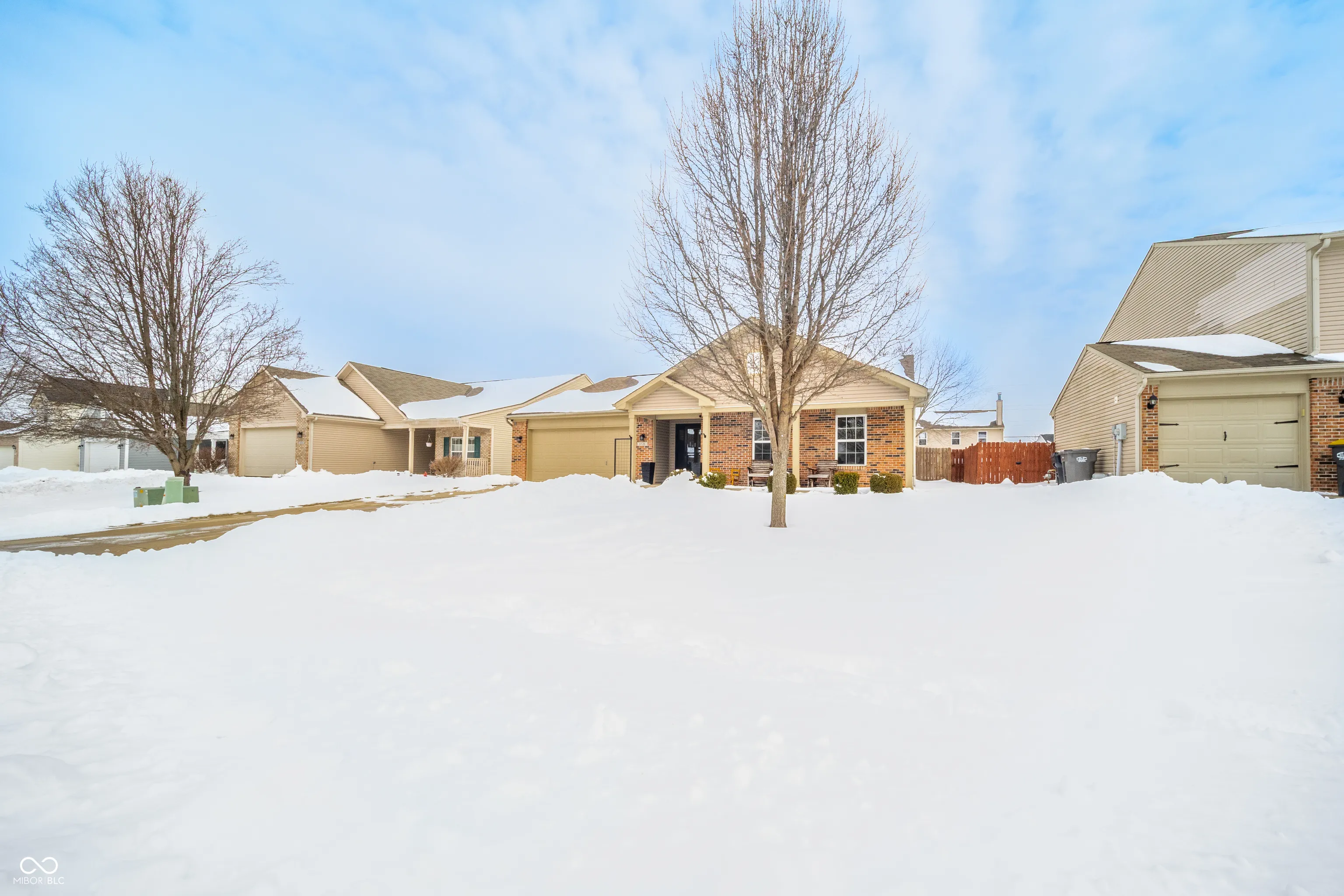 Welcome home to this beautifully appointed former model home, thoughtfully designed with upgrades that truly stand out. This home features impressive 12-foot ceilings in the great room as well as new recessed lighting (in kitchen & great room). The updated kitchen is the heart of the home with new extended cabinetry, great space for coffee bar (and added extra storage), sleek quartz countertops, and a spacious island with seating for four, this space was made for gathering. A stunning farmhouse composite sink adds durability, while a classic subway tile backsplash ties everything together. Brand-new stainless steel appliances (2025). Luxury vinyl plank flooring flows throughout the main living areas, offering easy maintenance. The smart split-bedroom floor plan, with the primary suite tucked away as its own retreat, featuring vaulted ceilings with a decorative ledge. Step outside through the newer sliding patio door (2021) into a fully privacy-fenced backyard complete with an extended concrete patio. The property also includes a shed with electricity, ideal for a workshop/additional storage AND a heated attached garage. Other upgrades include front entry door, water heater and water softener in 2023. Conveniently located on Anderson’s southside close to shopping, dining, and just minutes from I-69 for an easy commute north or south. You get neighborhood comfort without sacrificing accessibility. Thoughtful upgrades. Functional layout. Prime location. Indoor-outdoor living that just makes sense. This one truly checks all the boxes.