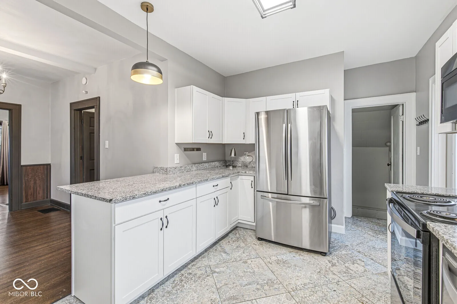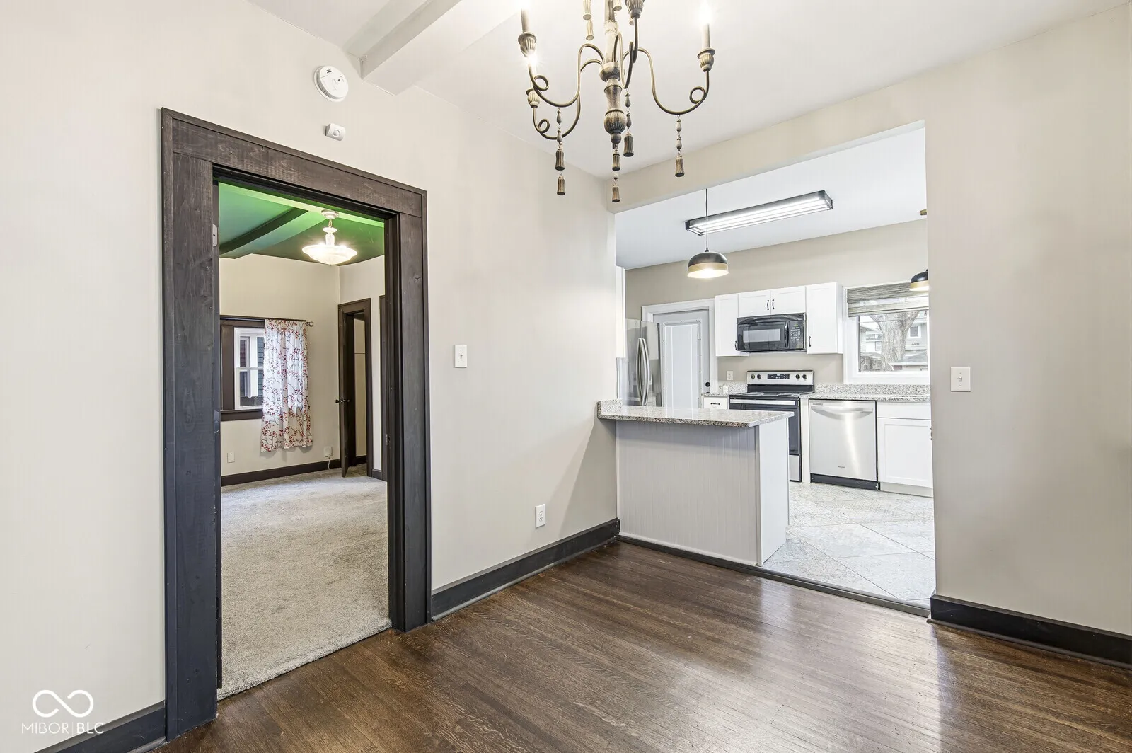 This charming American Four Square home perfectly blends timeless character with thoughtful updates throughout. Beautiful original hardwood floors have been refinished, highlighting the classic appeal of this home. The main level features a primary bedroom with ensuite and a convenient main-level laundry room, while three additional bedrooms and a full bath are located upstairs. Relax in the spacious living room or host family and friends in the large dining room, conveniently adjacent to the remodeled kitchen featuring granite countertops, stainless steel appliances, and newer cabinetry. The clean, unfinished basement offers abundant storage. Outdoors, enjoy the large deck and private, fenced backyard-perfect for entertaining or quiet relaxation. Ideally located just minutes from Irvington, downtown Indianapolis, and the interstate system. This home combines classic charm with modern convenience in a prime location.