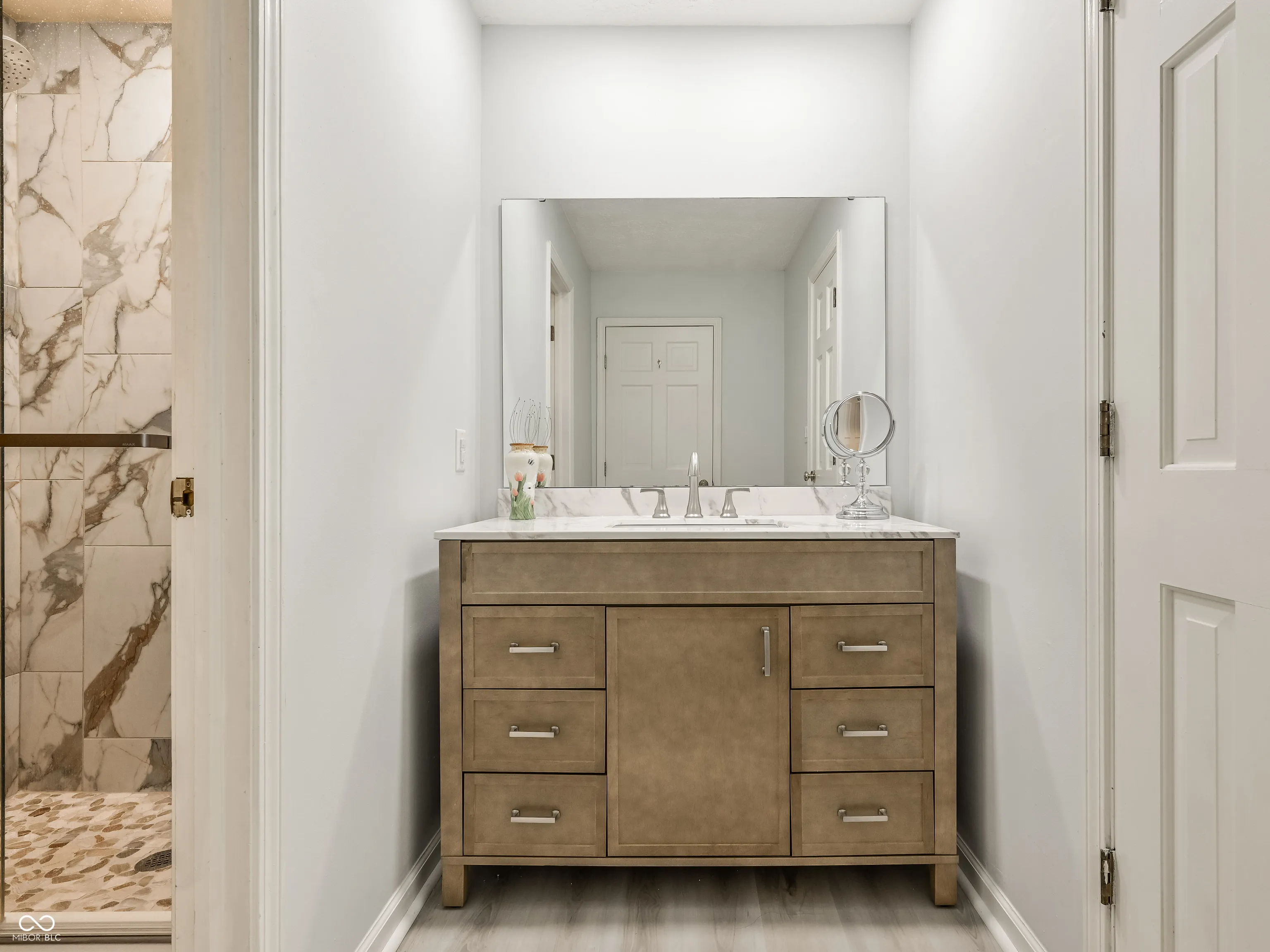 Your private oasis awaits! This beautifully renovated residence sits on a picturesque lot overlooking a tranquil, spring-fed pond. Imagine starting your morning in the sunroom or on the deck taking in the views, then ending your day in the private 8-person jacuzzi. The heart of the home features a gorgeous kitchen with Corian countertops, stainless steel appliances, and new LVP flooring (2023) throughout the main level. The formal living room features original hardwood floors refurbished in 2026. The cozy family room, anchored by a new travertine stone gas fireplace, flows seamlessly into a bright three-season sunroom. With a finished basement (including a dedicated workshop!), four spacious upper-level bedrooms, and updated bathrooms, there is room for everyone. Enjoy total peace of mind with recent mechanical updates, including new carpet upstairs and basement (2026), a water heater and softener (2025), and AC (2023). Perfectly positioned near local trails and shopping, this home offers the best of Carmel living both inside and out.