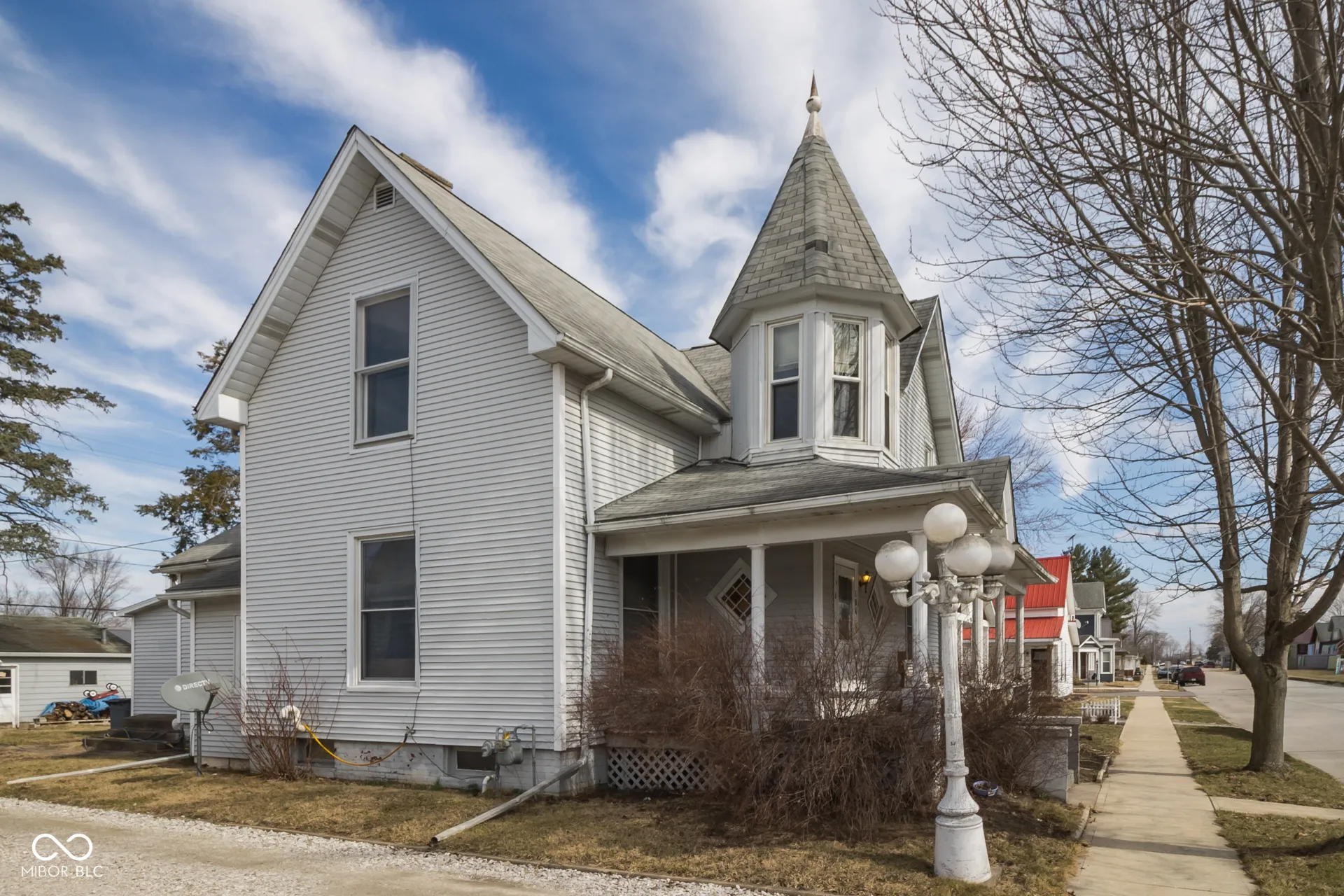 Step into timeless character and small-town charm with this two-story Queen Anne style home in Roachdale, Indiana. From its classic architectural details to modern day conveniences like central air conditioning and high speed internet, this property exudes historic appeal and everyday functionality. Inside, you’ll find three spacious bedrooms, and one and a half baths. The largest bedroom on the main floor has an adjacent room that would make a great nursery, or could easily be converted to a bathroom, making it a true primary suite. The layout provides comfortable living spaces filled with natural light and classic touches that honor the home’s character. Recent updates include beautifully finished wood plank flooring, new carpeting upstairs, and a rear porch that was reconstructed from the ground up and converted into a fully-functional, stand alone laundry room. An unfinished room upstairs offers incredible potential-easily transformed into a fourth bedroom, home office, playroom, or flex space to fit your needs. Outside, the property continues to impress with two outbuildings: a storage shed and a detached two-car garage currently set up as a woodworking shop-ideal for hobbyists, craftsmen, or extra workspace. Raised garden beds create the perfect opportunity for growing your own produce or flowers. Location is prime and within walking distance to the elementary school, shops, restaurants, post office and library. If you’re looking for distinctive architecture, functional space, and room to grow-all in the heart of Roachdale, this Queen Anne gem is ready to welcome you home.