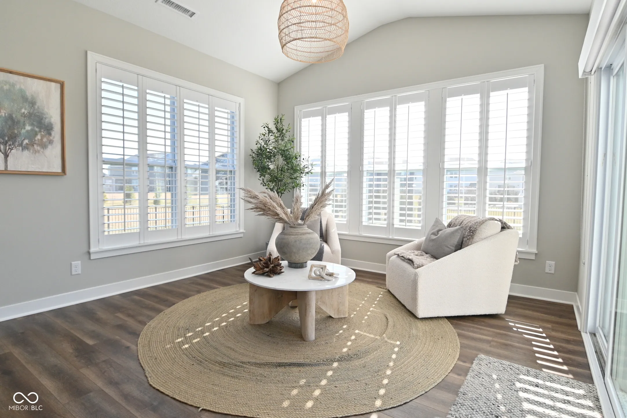 Immaculate single-family ranch with loft offering 4 bedrooms and 3.5 baths, including a versatile 4th bedroom ideal for a main-level home office. This thoughtfully designed floor plan features a spacious family room with gas fireplace, sunroom, and LVP flooring throughout the main level. The gourmet kitchen is appointed with 42″ cabinetry, stainless steel appliances, double oven, gas range with vent hood, wine/beverage center with refrigerator, and ample counter space for entertaining. The spacious primary suite features a tray ceiling and an attached bath with a large walk-in shower, double vanities, and a walk-in closet The second-floor loft provides flexible living space along with a private bedroom and full bath-perfect for guests or multi-generational living. All bathrooms include raised vanities for added comfort. Additional highlights include a separate laundry room and mudroom with built-in cabinetry for added storage and functionality. Enjoy outdoor living in the fully fenced backyard with a large patio designed for entertaining. The 2-car garage includes a 4-foot bump-out for additional storage space. Newly built MI Home with transferable warranty, offering upgraded finishes throughout without the wait of new construction. Pristine condition and move-in ready.