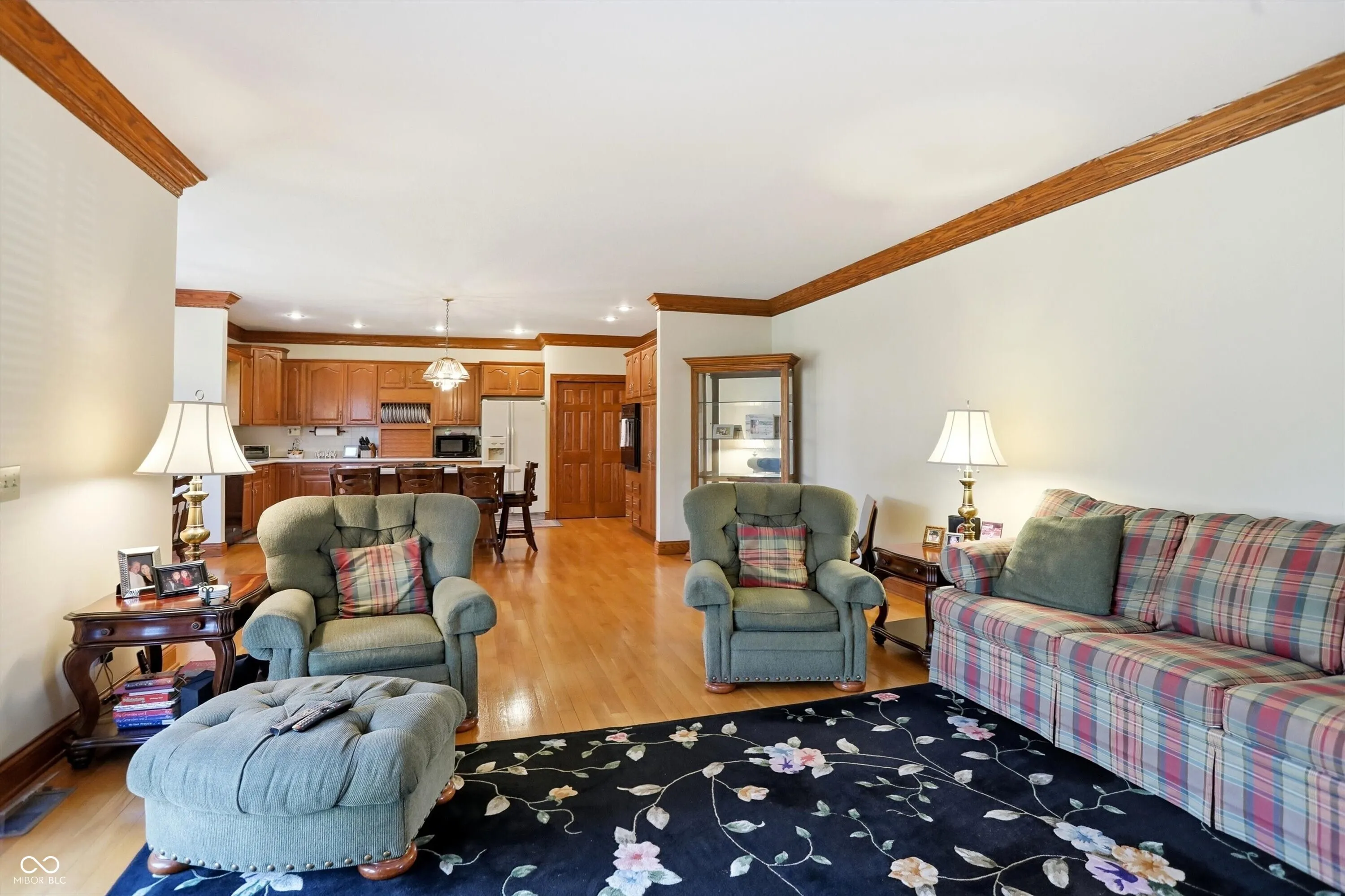 Welcome to this custom-built home in the highly sought-after Deerwood subdivision in Center Grove. Situated on a beautifully landscaped 0.52-acre corner lot with mature trees, this impressive 5,846-square-foot residence offers refined living, generous space, and exceptional comfort in one of the area’s most desirable communities. Inside, soaring 20-foot ceilings, hardwood floors, rich stained woodwork, and abundant natural light create a warm and inviting atmosphere. Designed for both everyday living and entertaining, the main level features a formal dining room, expansive great room, cozy family room with gas log fireplace, and a private office ideal for working from home. The spacious country kitchen serves as the heart of the home, complete with a breakfast bar, pantry, generous eat-in area, and seamless flow into the breakfast and family rooms perfect for gatherings or quiet mornings alike. The main-level primary suite offers a peaceful retreat with a large walk-in closet and spa-like bath featuring dual vanities, soaking tub, and separate shower. Upstairs, spacious secondary bedrooms provide comfort and privacy for family and guests. The substantially finished walk-out basement with 9+ foot ceilings expands the living space with a large recreation area, additional bedroom, full bath, a second half bath and second laundry ideal for guests or multi-generational living. Outdoor living shines with a main-level deck and open patio overlooking the backyard. Additional highlights include two fireplaces, dual heating systems, main-level laundry, and a finished three-car garage. Deerwood residents enjoy a community pool and tennis/pickleball courts, plus access to award-winning Center Grove schools. Offering nearly 6,000 finished square feet in an established, amenity-rich neighborhood, this exceptional home blends luxury, comfort, and location. Centrally located; 5 minutes to Center Grove High School, 5 minutes to Interstate 69, 20 min to Indianapolis Int’l Airport.