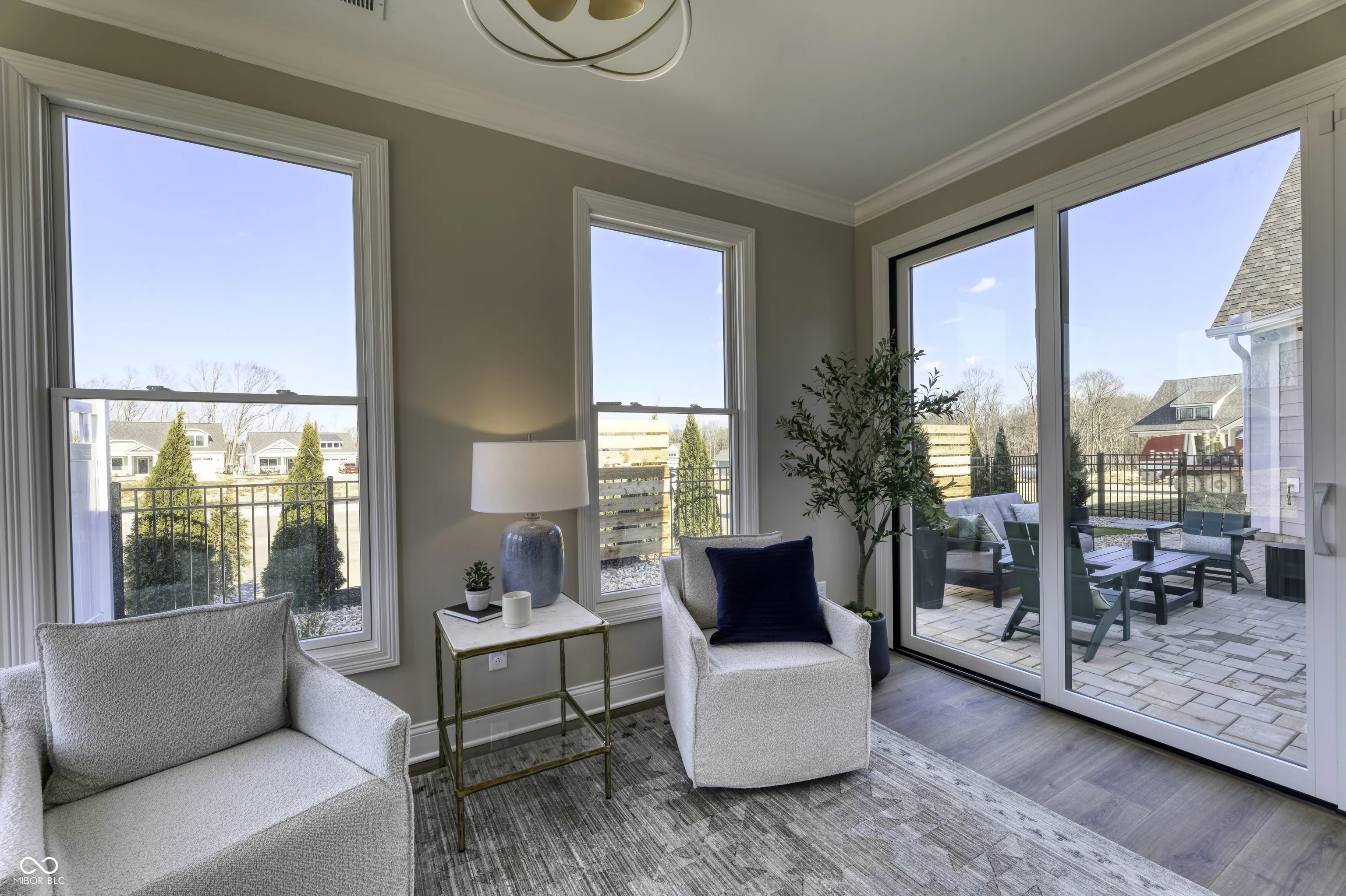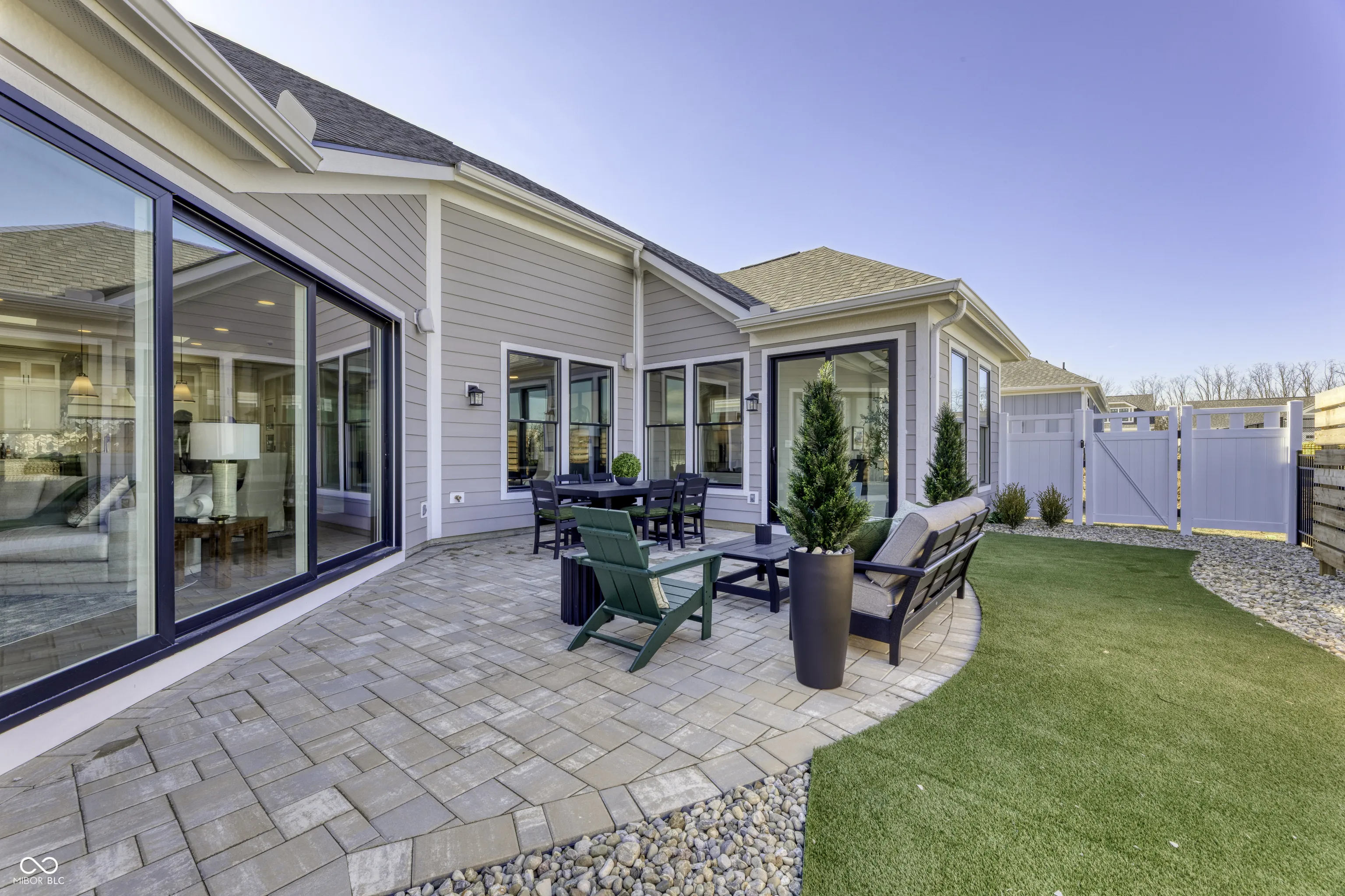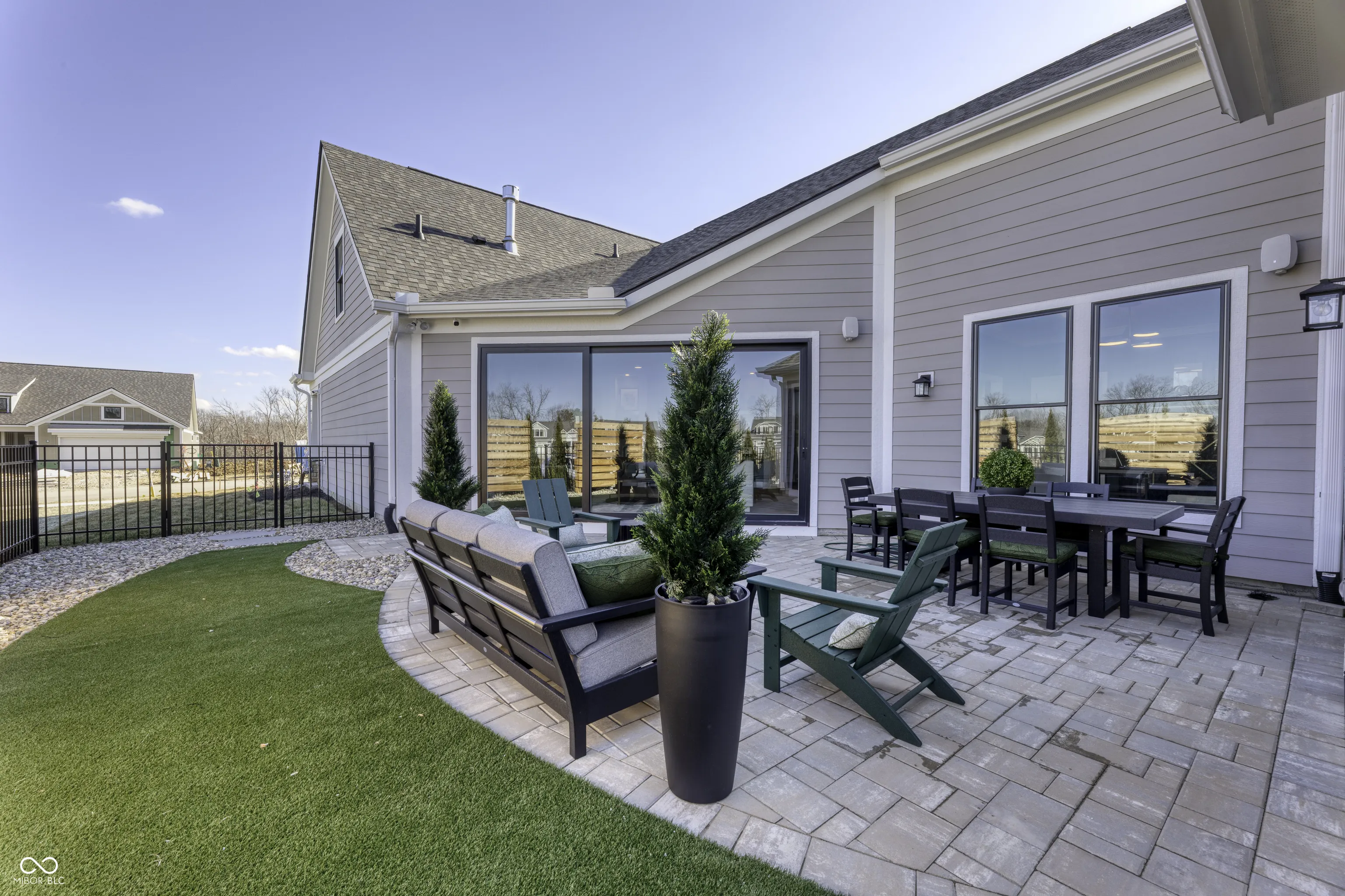 This home is due to be completed in May! Step into the Promenade Bonus by Epcon Communities and experience a new standard of luxury and low maintenance living at The Courtyards of Hazel Dell – Epcon’s newest active lifestyle community in Noblesville. This stunning home offers an open, airy design filled with natural light and anchored by Epcon’s signature private courtyard-seamlessly integrated into the heart of the home to create a true indoor-outdoor lifestyle. From the moment you walk in, you’ll notice the thoughtful details that set this home apart. Wide hallways, zero steps, and an effortless flow make everyday living comfortable and accessible. The deluxe kitchen is a chef’s dream, featuring GE appliances, quartz countertops, stylish cabinetry, a walk-in pantry, and a generous island that’s perfect for entertaining – all with views of the serene courtyard just beyond. The open-concept layout connects the kitchen, dining, and living spaces, making it ideal for gatherings or quiet evenings at home. The luxurious owner’s suite offers a peaceful retreat with a cozy sitting room overlooking the courtyard, generous walk-in closet, and a spa-like bathroom has dual vanities, and a zero-entry shower. Upstairs, you’ll find a third bedroom with a full bath, walk-in closet, and a spacious bonus room that flexes to fit your lifestyle: family room, media space, 2nd home office, craft room, guest suite – you decide! With 3 spacious bedrooms, 3 bathrooms, a private office, a mudroom, bonus room, and a spacious garage, this home checks every box. And it’s not just the home that impresses- The Courtyards of Hazel Dell offers resort-style amenities including a future clubhouse, fitness center, heated outdoor pool, pickleball court, bocce ball court, community garden, and scenic walking trails w/direct access to the Midland Trace Trail. Come explore the ultimate blend of comfort, style, and convenience. Discover the Epcon Difference for yourself. Photos are of a similar home.