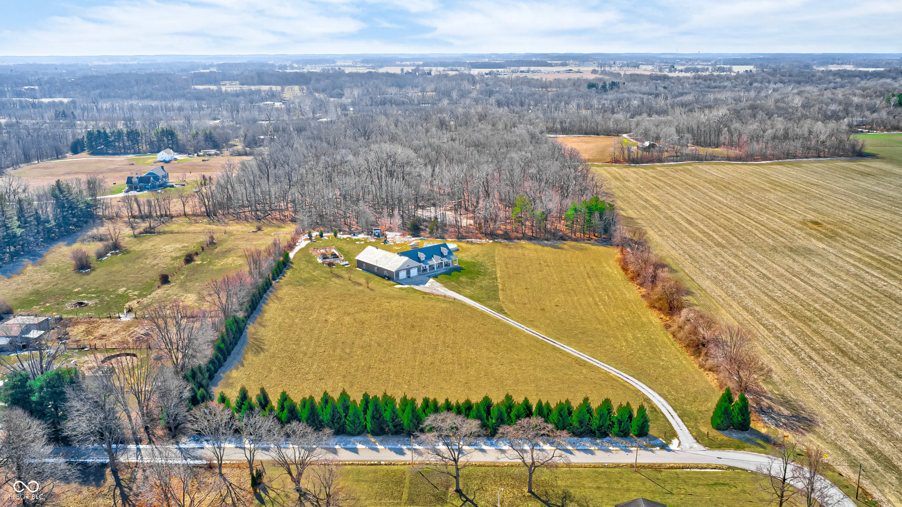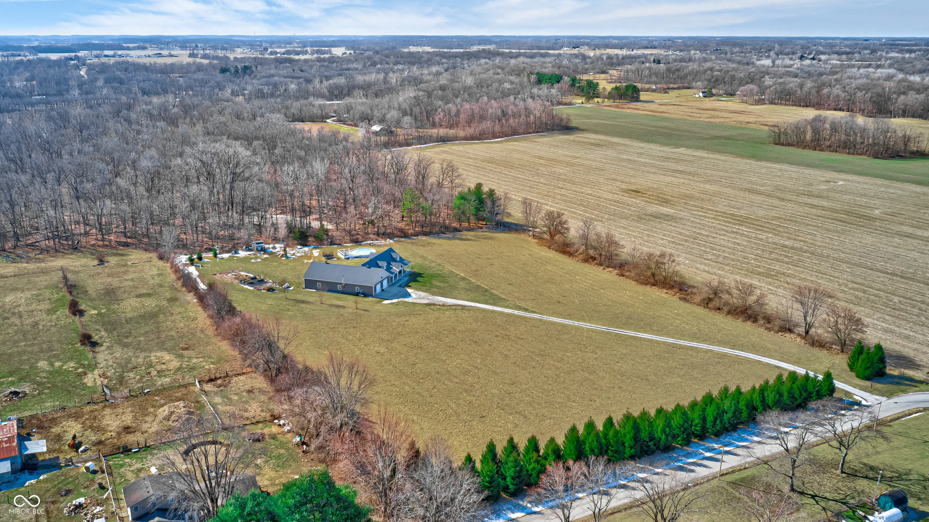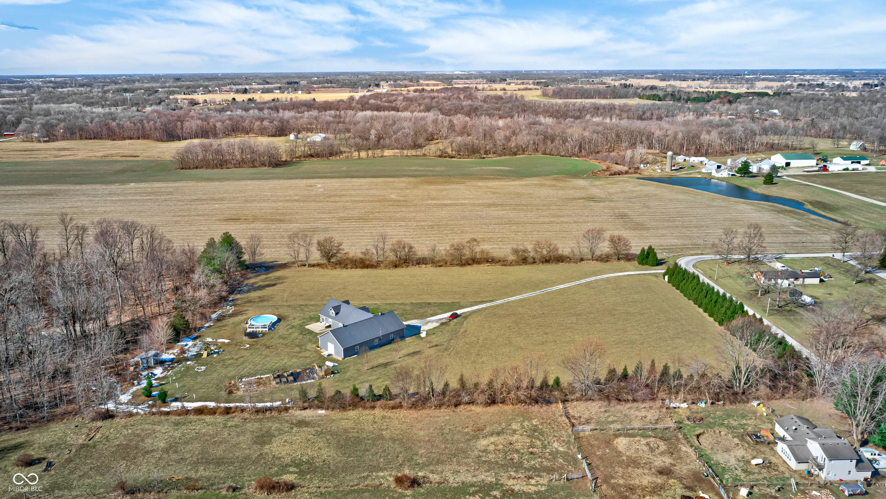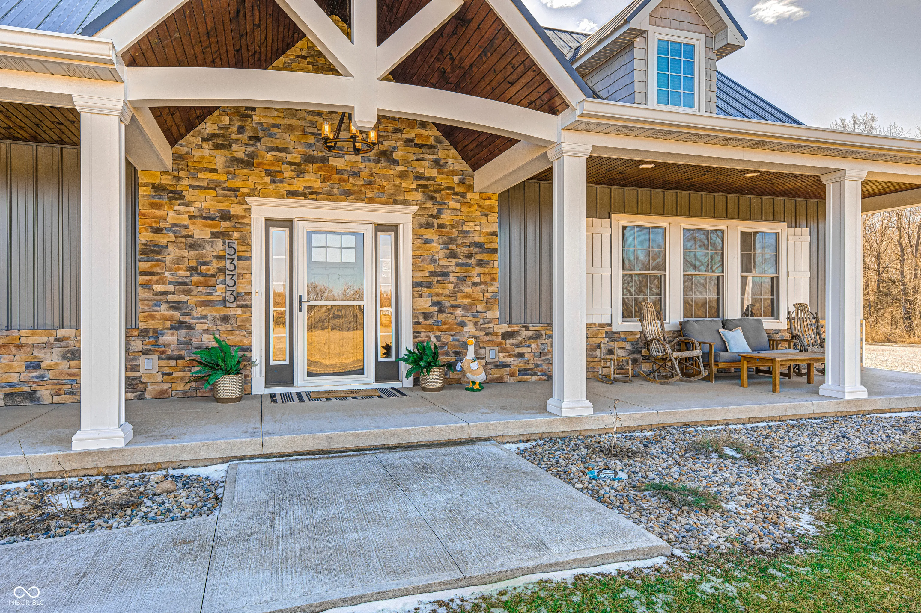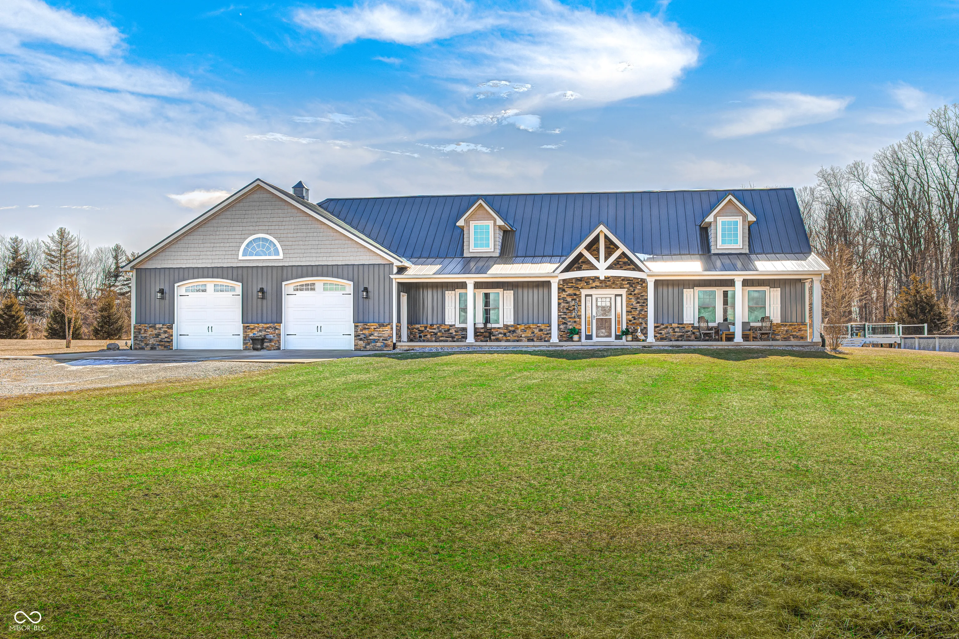 THIS IS IT! The perfect home you have been waiting for! Welcome to your beautifully maintained custom home, sitting on 8.5 acres, in Pendleton School district! This immaculate home, built in 2017, combines quality construction (2×6 walls, triple pane windows), thoughtful details, spacious living, a peaceful setting, and every man’s dream with the massive garage/pole barn! Step inside the large foyer with natural light & 2 story ceilings. The inviting Great room is anchored by a cozy, corner FP and opens into the spacious well-appointed Kitchen. This breathtaking Kitchen/Dining Room combo offers coffered ceilings, a large center island w/breakfast bar, quartz counters, new appliances, custom shaker cabinets w/soft close drawers, farmhouse sink and a large walk-in pantry. Retreat to the main level Primary Suite which boasts a large WIC and a gorgeous en suite bath w/a walk-in tile shower, double sinks, & garden tub. Upstairs you will enjoy large bedrooms w/large closets, a full bath, and a spacious loft. The massive 40×80 (3,200 sf) attached garage/pole barn is about 1/2 insulated and offers a wood burning stove, plus a 16×18 finished gym space. Enjoy serenity and country living with 8.5 acres (1.5 in woods), a greenhouse, raised garden beds, chicken coop, above ground pool, and playset (all stay). Imagine sitting on the covered front porch and enjoying the Indiana sunsets! Don’t miss this one and experience all this exceptional property has to offer!