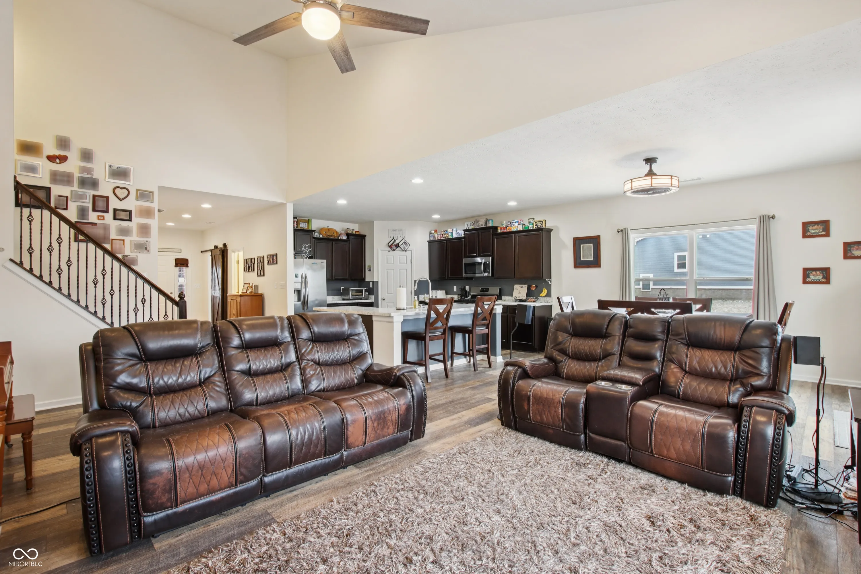 Move-in ready and built in 2018, this 3-bedroom, 2.5-bath home offers 2,452 square feet of modern living space with the primary suite conveniently located on the main level – a layout many of today’s buyers are actively searching for. Right off the entry, you’ll find a dedicated office/den – the perfect space if you work from home, need a quiet study, or want a flexible bonus room right at the front of the house. The vaulted great room feels open and bright, highlighted by a stylish wrought iron staircase and nearly-new luxury vinyl plank flooring throughout giving you a clean, cohesive look that’s both stylish and durable for kids and pets. The kitchen is built for real life and entertaining, featuring stainless steel appliances, a new refrigerator and microwave, a gas stove, and a large center island that naturally becomes the gathering spot. Your main-level primary suite offers a dual vanity, walk-in shower, and a huge walk-in closet with the storage you’ll actually use. Step outside to a massive rear deck and fenced backyard, plus additional green space beyond the fence for a garden or whatever outdoor setup fits your lifestyle. Located in fast-growing McCordsville, this home offers modern construction, thoughtful design, and true no compromise, move-in ready condition in an area seeing continued residential and community growth. Open Houses Saturday & Sunday 1-3pm. Showings begin immediately.