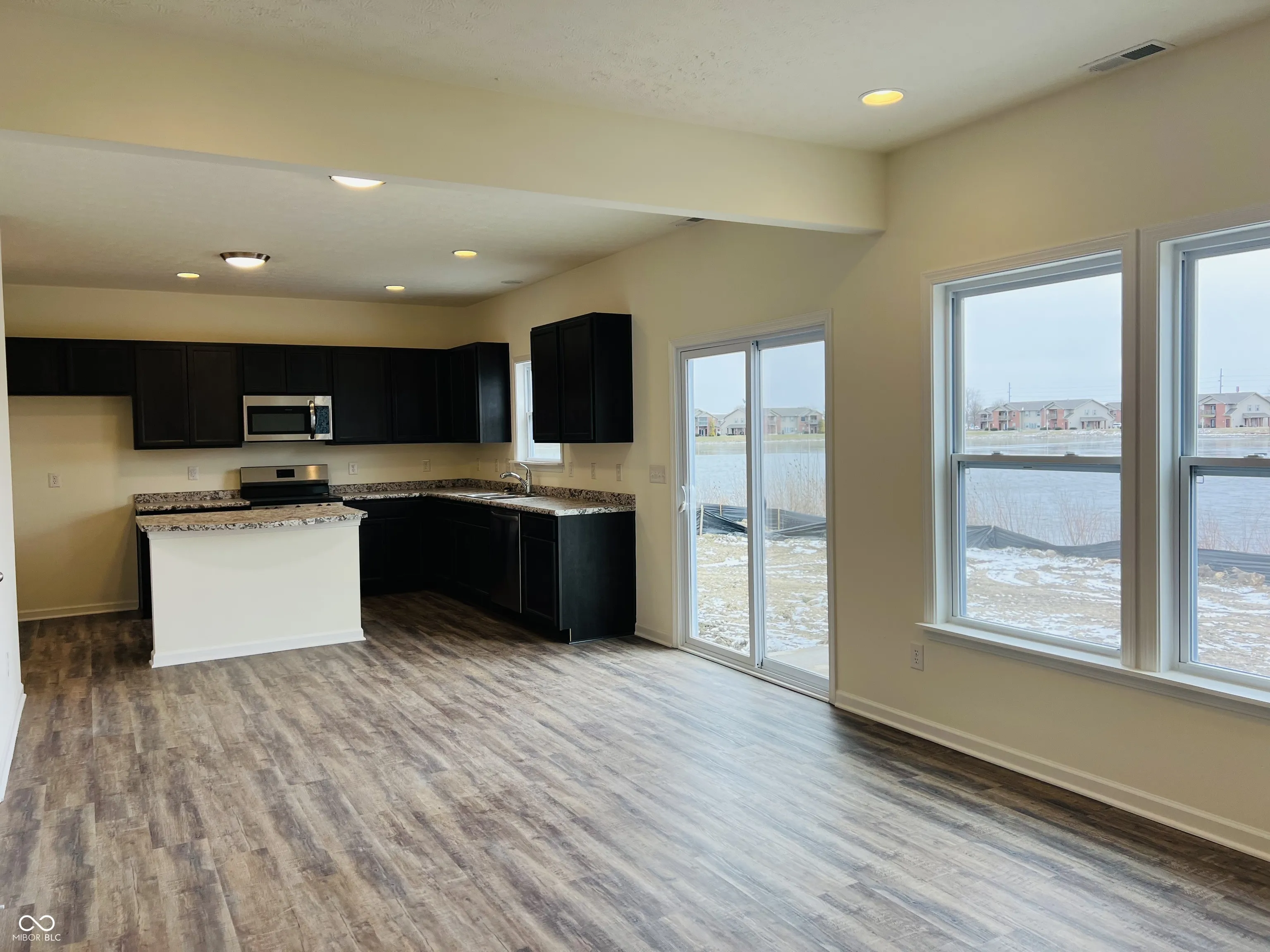 Welcome to this beautifully designed new construction home, offering 2,180 sq. ft. of thoughtfully planned living space. The main floor features a modern kitchen with stylish Aristokraft cabinets, a spacious breakfast room, and a large family room-each offering breathtaking views of the lake. The family room also offers the flexibility to designate a dining area, creating the perfect space for gatherings. Beautiful laminate vinyl plank flooring flows seamlessly throughout the first floor adding both style and durability. A convenient pantry, an office that could serve as an additional bedroom, and a half bath complete the main level. Upstairs, you’ll find three generously sized bedrooms, including a wonderful primary suite with a an en-suite bath featuring double sinks, a separate shower and garden tub, and a walk in closet. A large rec room with LVP flooring provides versatile space for entertainment or relaxation, while the laundry room adds extra convenience. A centrally located hall bath serves the additional bedrooms. With stunning lake views, and a spacious, well-designed layout, this home is a must-see!