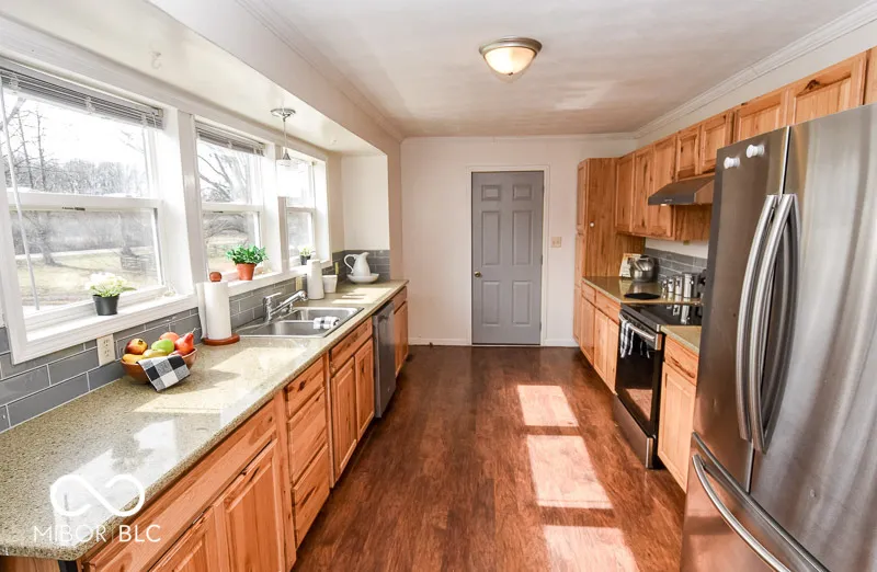 This comfortable ranch home sits on .41 acres on the northeast side of Monroe County, convenient to Griffy Lake for fishing, hiking, and kayaking, and only 10 minutes to Bloomington. There are 3 bedrooms with hardwood floors and 1 bath. The primary bedroom offers two closets, one of which is a walk-in. One of the two guest bedrooms also has two closets. The living room and kitchen are open concept, and bathed in natural light from the many windows. The cheerful kitchen boasts quartz countertops, hickory cabinets, an integrated pantry featuring pull-out drawers, stainless steel appliances, and a glass-tile backsplash. There is a convenient laundry closet with a stacked washer/dryer. The one-car garage is accessed from the kitchen, great for bringing in the groceries! The HVAC, water heater, windows, roof, gutters, siding, and flooring were all replaced in 2017. The septic system was also updated and was recently pumped in 2025. The current owners encapsulated the crawlspace, replaced the access door, and added a sump pump. They also created a native plant garden area. Schedule an appointment to see this special property today!