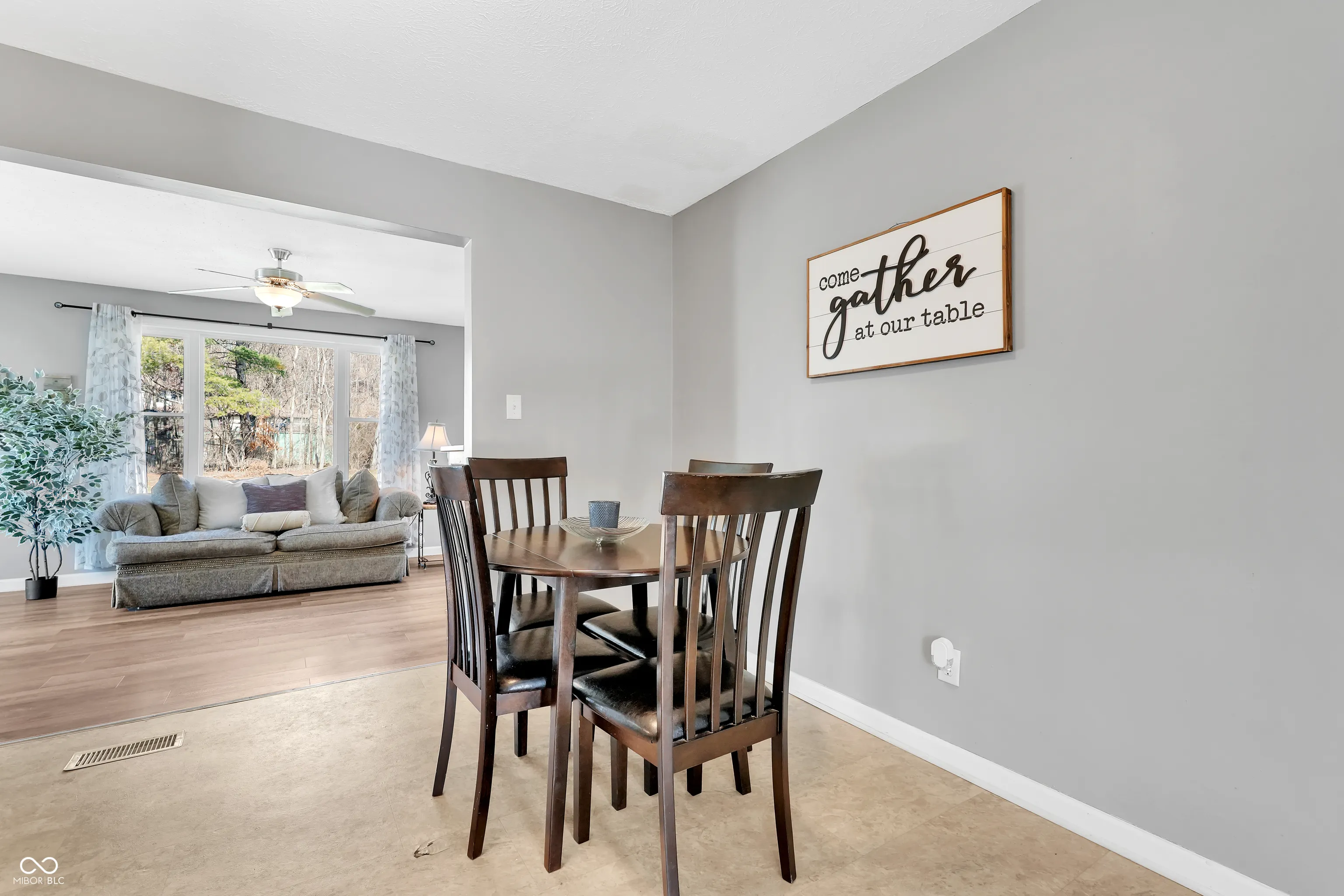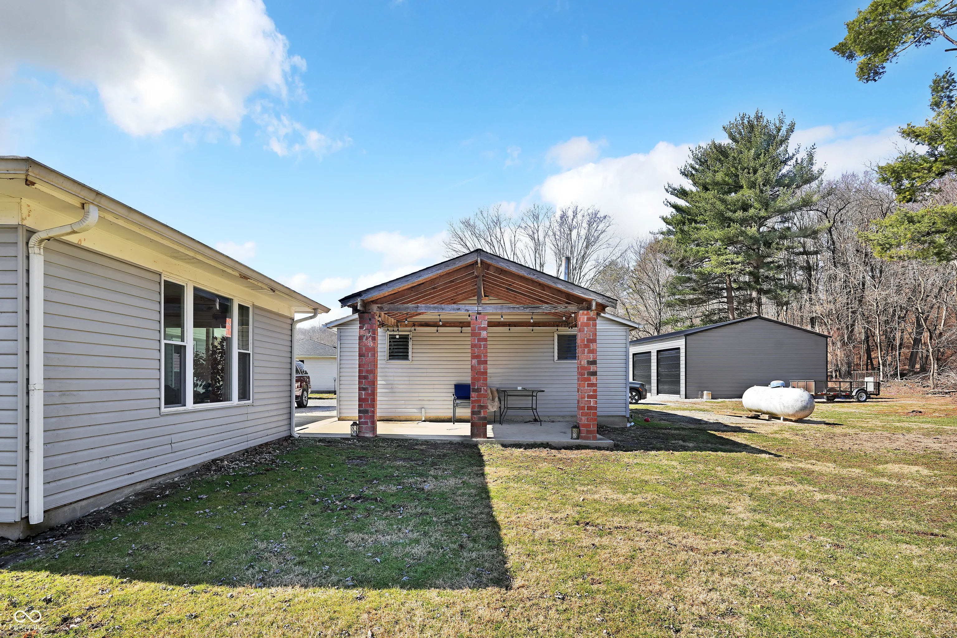 Welcome to your own slice of peaceful country living! Situated on just over half an acre on a quiet country road, this inviting 3 bedroom, 2 bath home offers space, privacy, and convenience all in one beautiful setting. You’re just minutes from Centerton, less than 10 minutes to I-69, 10 minutes south of Mooresville, and approximately 35 minutes to both Bloomington and Indianapolis. Step inside and feel right at home. New flooring throughout bedrooms and main living area gives the space a fresh, updated feel. The kitchen has been thoughtfully refreshed with stainless steel Whirlpool appliances, updated cabinetry, and modern countertops – making it both functional and welcoming for everyday living. The home features a comfortable living room plus a spacious great room that feels like a sunroom, filled with natural light and peaceful views of the backyard. It’s the perfect place to unwind and enjoy watching deer and other wildlife pass through the mature trees. Both bathrooms showcase beautiful custom tile work. The primary suite includes a custom tile walk-in shower, while the second full bath features a custom tile shower/tub combination. Outside, you’ll appreciate the large covered porch area and expansive backyard offering privacy and plenty of room to relax or entertain. The two-car detached garage provides flexibility for parking, storage, hobbies, or a potential workshop or man cave. Additional highlights include city water, septic system, and a roof that is only 2 years old. Whether you’re looking for the perfect starter home or ready to downsize while still enjoying outdoor space and tranquility, this property offers comfort, charm, and a place to truly call home. Please note the seller is replacing the entry door off of the mud room, the ceiling in the mudroom is being repaired, and the globe on the light fixture in the kitchen and laundry are being replaced.