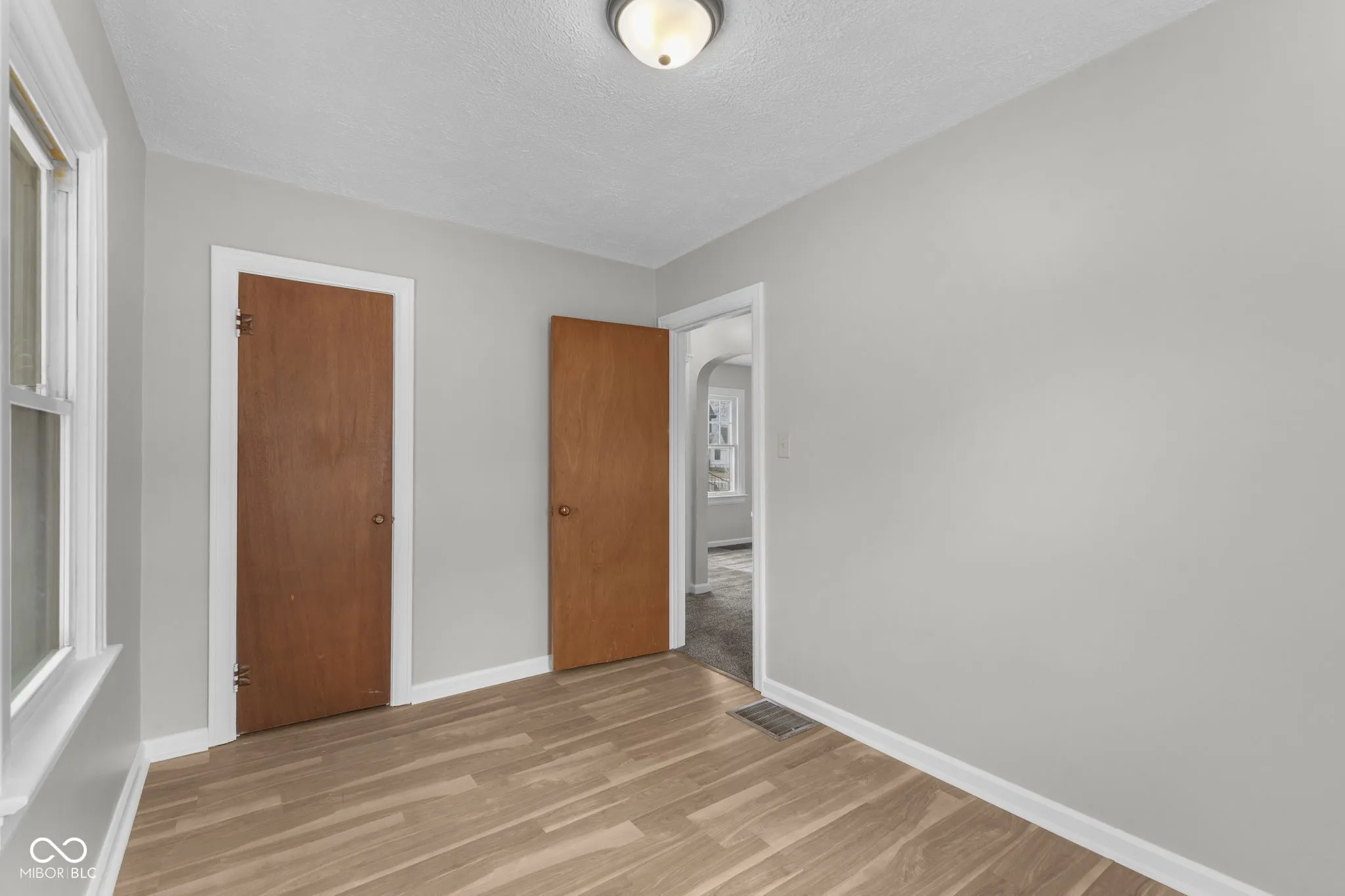 Charming 2 bedroom Speedway bungalow close to the Indianapolis Motor Speedway and downtown Speedway! The Living room and Dining room are open concept with lots of natural light! The kitchen has the original cabinets for a vintage look. The primary room has a built in wardrobe. You can make the unfinished basement what you want! The driveway is double wide with a one car detached garage in the backyard.