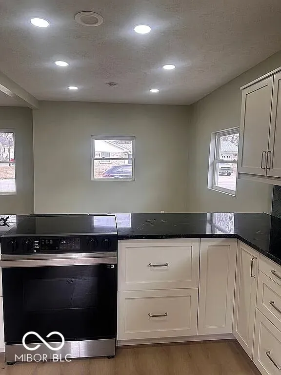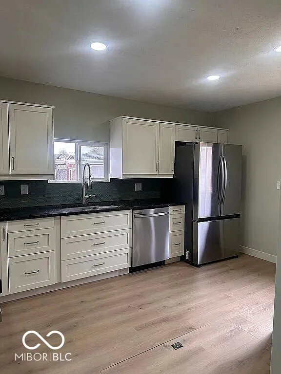 Completely remodeled from the ground up. New plumbing, electrical, roof, heating/cooling, waterproof luxury vinyl plank flooring throughout the main floor, carpet upstairs, and everything else. It has 3 bedrooms with 2 on first floor. The primary bedroom and en suite, occupies the entire 2nd floor. The primary features built in closets, custom open shelving, a built-in dresser, and unique custom space perfect for TV mounting. The primary bath is spacious with room for dressing/makeup area across from the vanity. It features a beautiful walk-in slate shower. Completely new kitchen complete with brand new range, refrigerator, and dishwasher. Also features 2 car detached garage, mini-barn and spacious yard on corner lot!