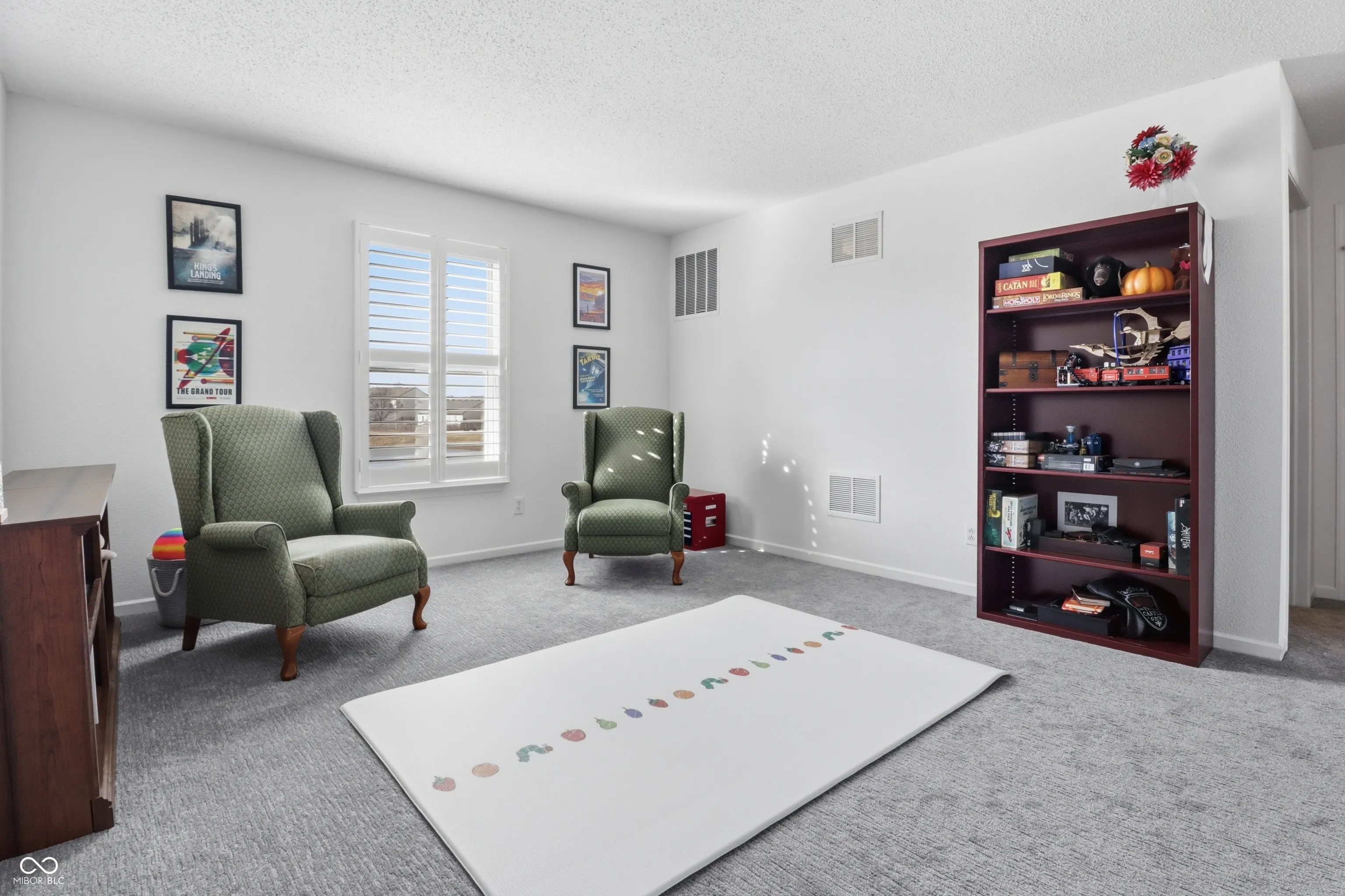 Don’t miss out on this attractive new home located in McCordsville! The heart of daily living finds its expression within an open floor plan, where the kitchen provides a sophisticated space for culinary endeavors and gatherings. Comfort and personal space define the three bedrooms, with one offering the indulgence of an ensuite bathroom. Thoughtful design extends to the bathrooms, where a double vanity provides convenience for daily routines. A dedicated walk-in closet offers ample storage space! The residence features two full bathrooms and one half bathroom. Custom window shutters throughout the home to allow natural light and a charming appeal. Outdoor enjoyment is readily available with a private patio overlooking a fenced backyard, providing a serene setting within this residential area. This property offers a harmonious blend of thoughtful design and practical amenities, ready to enhance your everyday life.