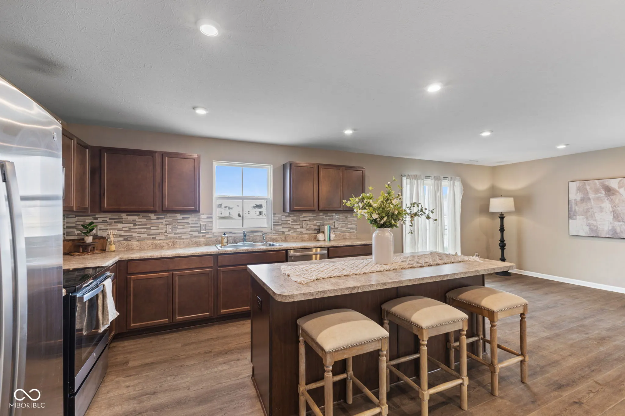 Built under 3 years ago, this 5-bedroom home with 2 bonus spaces blends the confidence of newer construction with thoughtful upgrades that make it feel warm, finished, and truly move-in ready. Inside, the open-concept layout creates a natural flow between the kitchen, dining, and living areas, perfect for everyday living and hosting friends and family. Luxury vinyl plank flooring throughout the entire home delivers both style and durability, while custom interior paint colors add depth and personality to each room. The kitchen features a stylish tile backsplash and overlooks the main gathering spaces, making it ideal for entertaining or keeping an eye on daily household activity. One of the standout features is the flexibility it offers. With two separate bonus/flex rooms, this layout easily adapts to your lifestyle. Whether you need a home office, playroom, gym, media room, or craft space, there is room for it here. One flex room sits conveniently on the main level off the living room, while the second is located upstairs near the bedrooms, ideal for evolving household needs. Step outside to enjoy a view of the pond and a fully fenced backyard, providing the perfect space for pets, play, outdoor gatherings, or relaxing evenings. Additional highlights include an epoxy-coated garage floor, insulated garage for year-round comfort, luxury vinyl plank flooring, two versatile bonus rooms, custom paint throughout, vacant and ready for a flexible move-in timeline. One of the biggest advantages? This home is move-in ready, saving you the wait and uncertainty of new construction while still enjoying the benefits of a nearly new home. If you’ve been looking for a spacious home with flexible living spaces and modern finishes, this is it!