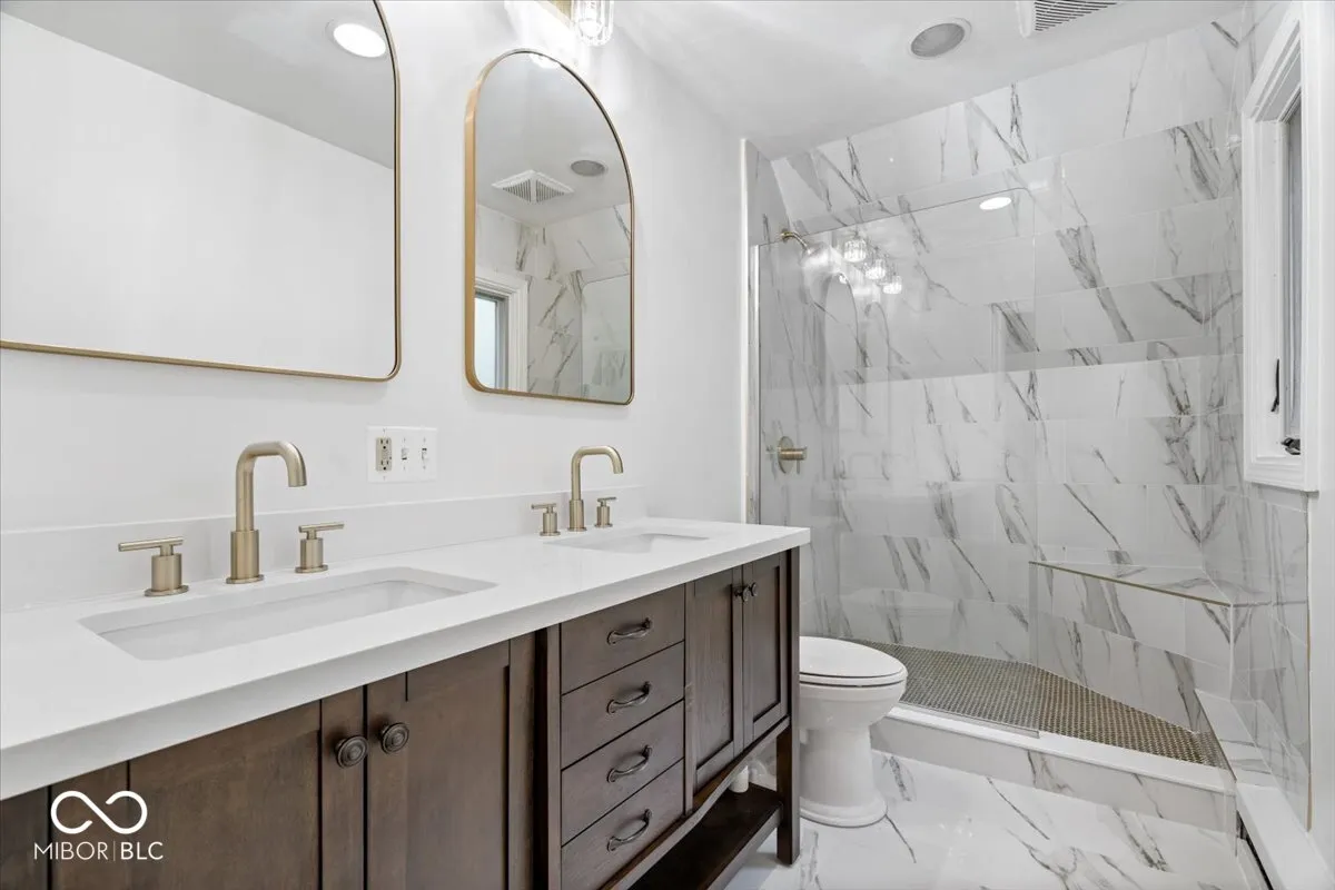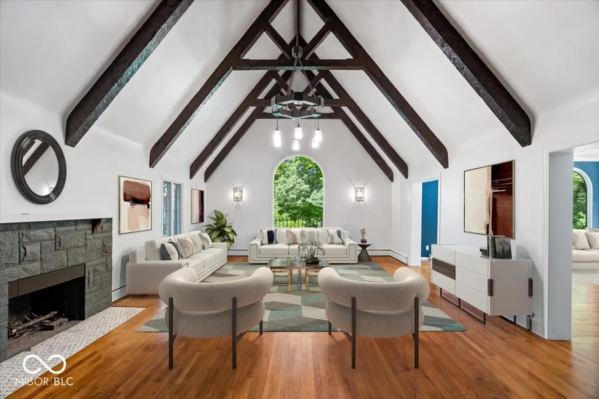 Step into your very own fairytale at this extraordinary Tudor-style manor nestled in the exclusive Brendonwood subdivision. Over 3.2 acres of lush landscape, including a massive yard, personal basketball court, your very own private forest entrance with trails & a fire pit, this home is truly a dream come true. From the moment you pull into the private drive, you’ll feel the enchanting charm that sets this home apart. A stone-covered front porch welcomes you into the main level, where hardwood floors flow throughout, leading to a grand foyer. The family room w/ floor-to-ceiling stone wall, cathedral ceiling w/ original wood beams & a majestic stone fireplace.The newly renovated kitchen is a chef’s delight, featuring a luxurious gas oven/range custom wrapped in wood cabinetry, a wine cooler, a coffee station, & a pantry ready to store all your culinary treasures. Just off the eat-in kitchen’s formal dining room lies the heart of the home: a massive living room w/ walls of floor-to-ceiling windows that flood the space with natural light, offering views of your expansive back porch, tree-lined yard & private forest. Main level also boasts a large home office, complete w/ a full wall of cabinetry & book shelving. Venture upstairs to discover four bedrooms, each with its own bathroom. Bedrooms two and three share a Jack & Jill full bath, while the primary bedroom is a haven of relaxation with its sitting room (ideal for a secondary office), large walk-in closet w/ custom built-ins, & a newly remodeled en-suite bathroom featuring a glass-enclosed tiled shower & double vanity sink.The basement holds endless opportunities, serving as a rec room, game room, or man cave, & offers ample storage space. This home is not just a residence; it’s an entire lifestyle, offering amenities galore in a gated community with a private 9-hole golf course, communal swimming pool with lifeguards, tennis courts, basketball court, bocce ball, and pickleball court.
