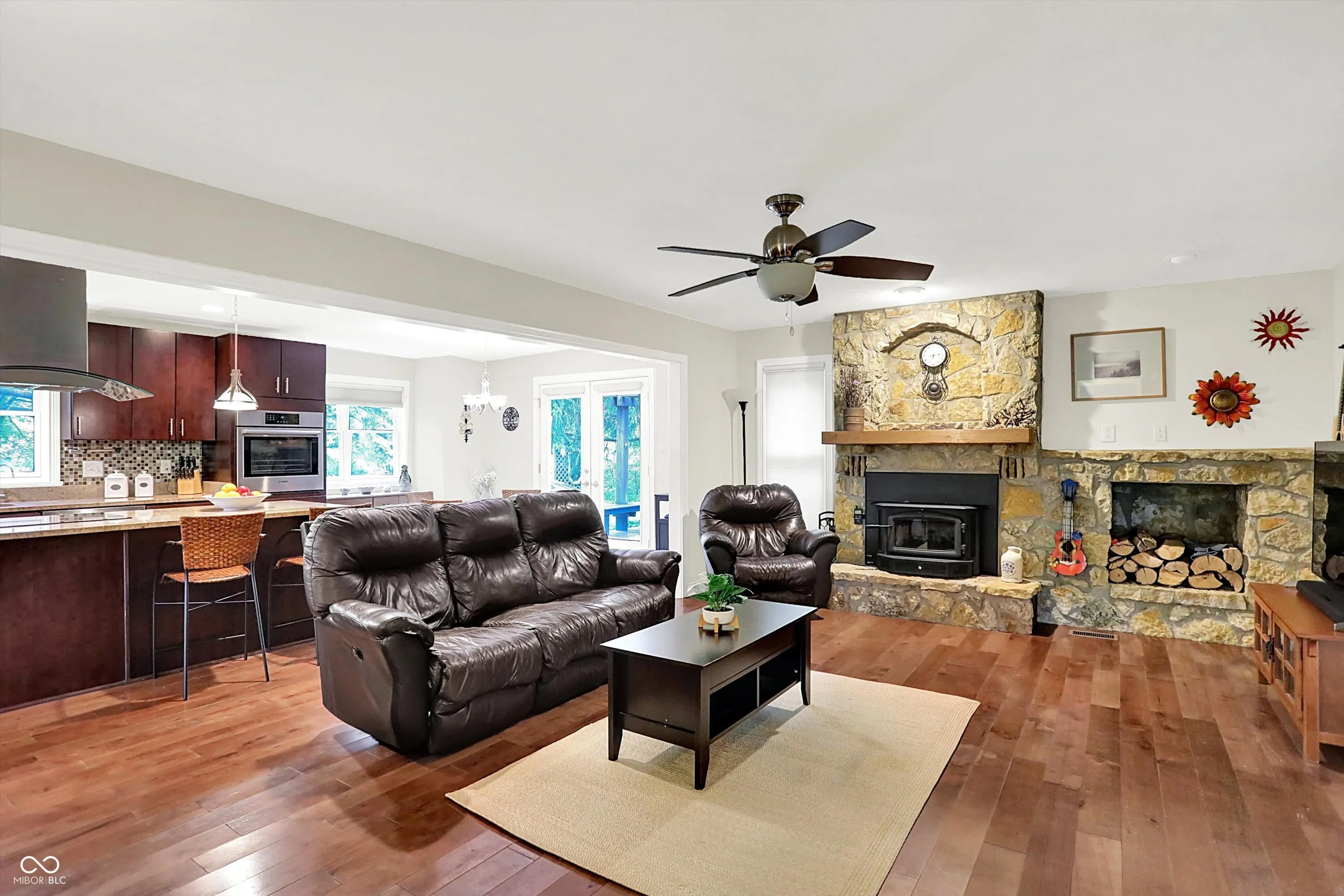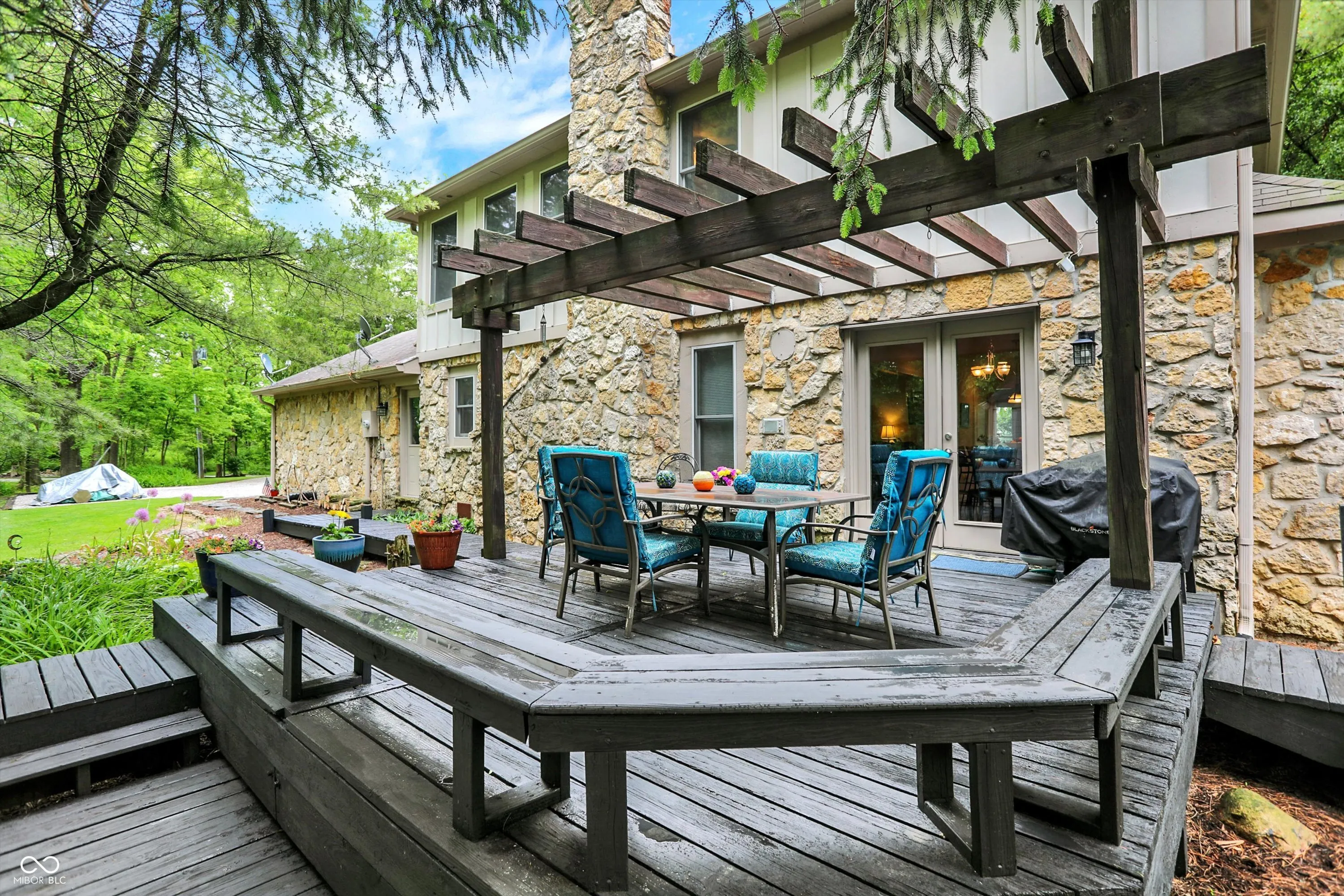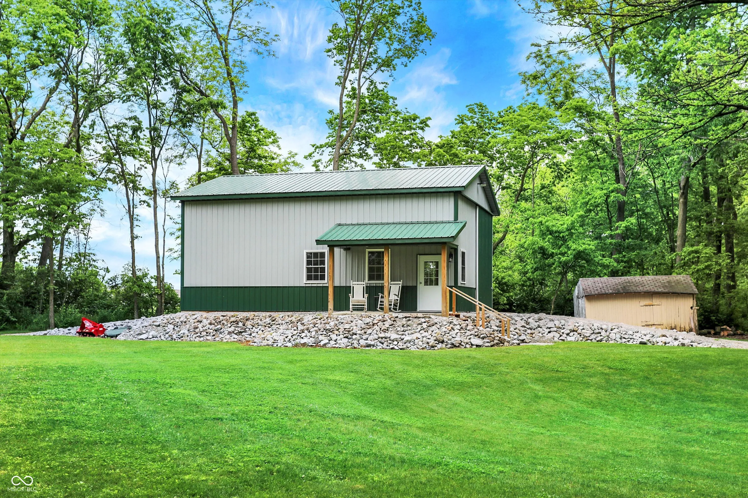 Nestled on 4.5 picturesque acres, this wonderful 3-bedroom, 2.5-bath home offers a tranquil retreat surrounded by mature trees and a winding creek. Hardwood floors flow throughout the main and upper levels, lending warmth and character to every room. The main level welcomes you with an inviting family room anchored by a unique stone fireplace with high-efficiency wood burning insert that heats the entire main level, a spacious kitchen with large center island, and a dining room wrapped in a wall of windows that bring the outdoors in. The open floor plan provides the ideal space for entertaining family and friends. Upstairs, the spacious master suite features an en-suite bath with double vanities, granite countertops, a tiled shower, and a large walk-in closet. Two additional generously sized bedrooms complete the upper level. Step outside onto the expansive deck, where you’ll be surrounded by the beauty of mature trees. A charming koi pond adds to the serenity, while a quaint gazebo invites you to sit back and relax. The 36′ x 26′ pole barn offers plenty of space for recreational vehicles and extra storage.(2) 14′ doors and 30 AMP RV plug in allow for your largest toys! Also on the property, a delightful cottage could serve as the perfect greenhouse or a whimsical children’s playhouse. Wander the trails that wind through open fields, beneath the canopy of old-growth trees, and along the gentle flow of the creek-an idyllic setting for those who appreciate nature, privacy, and the comforts of home.