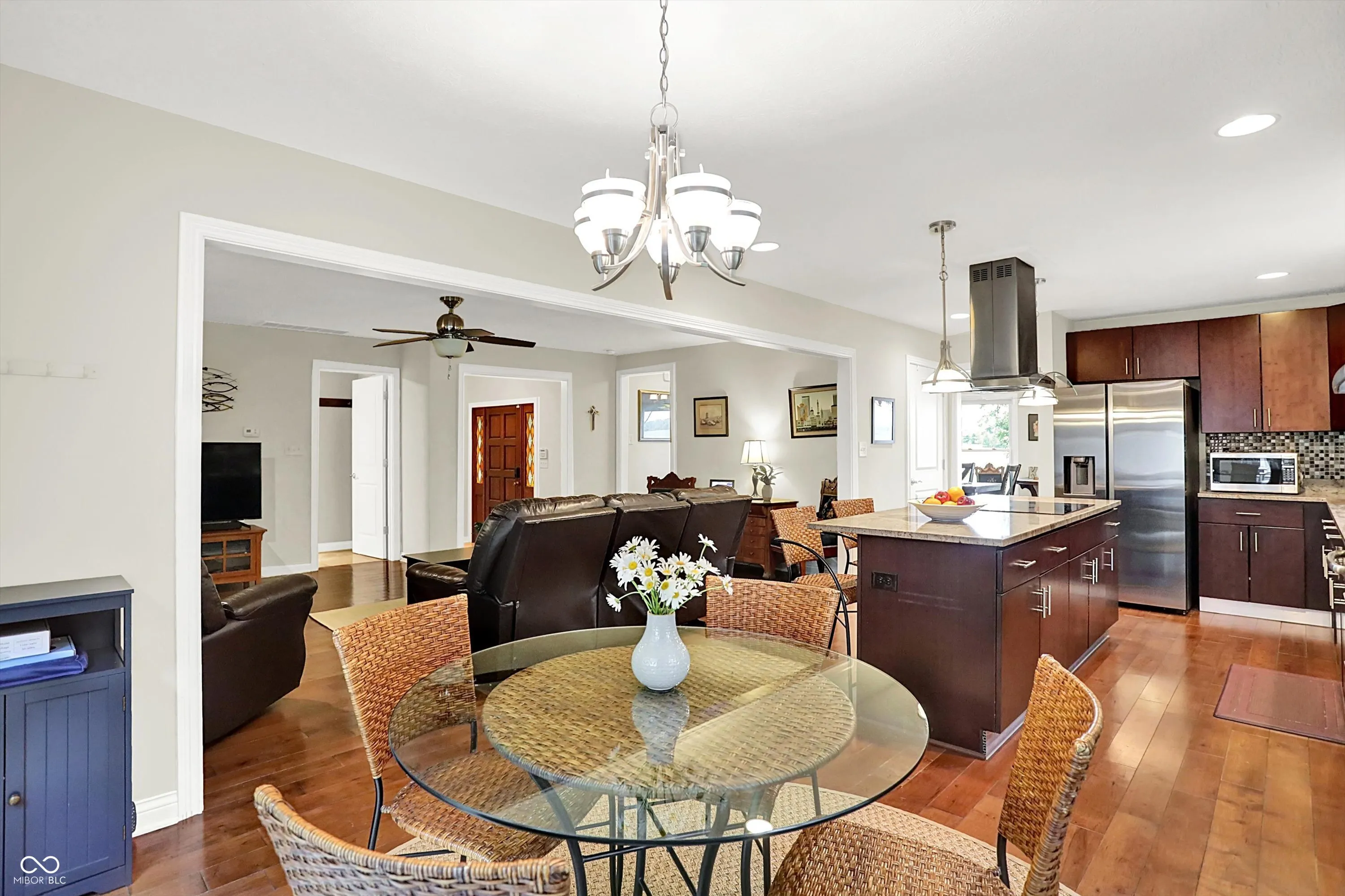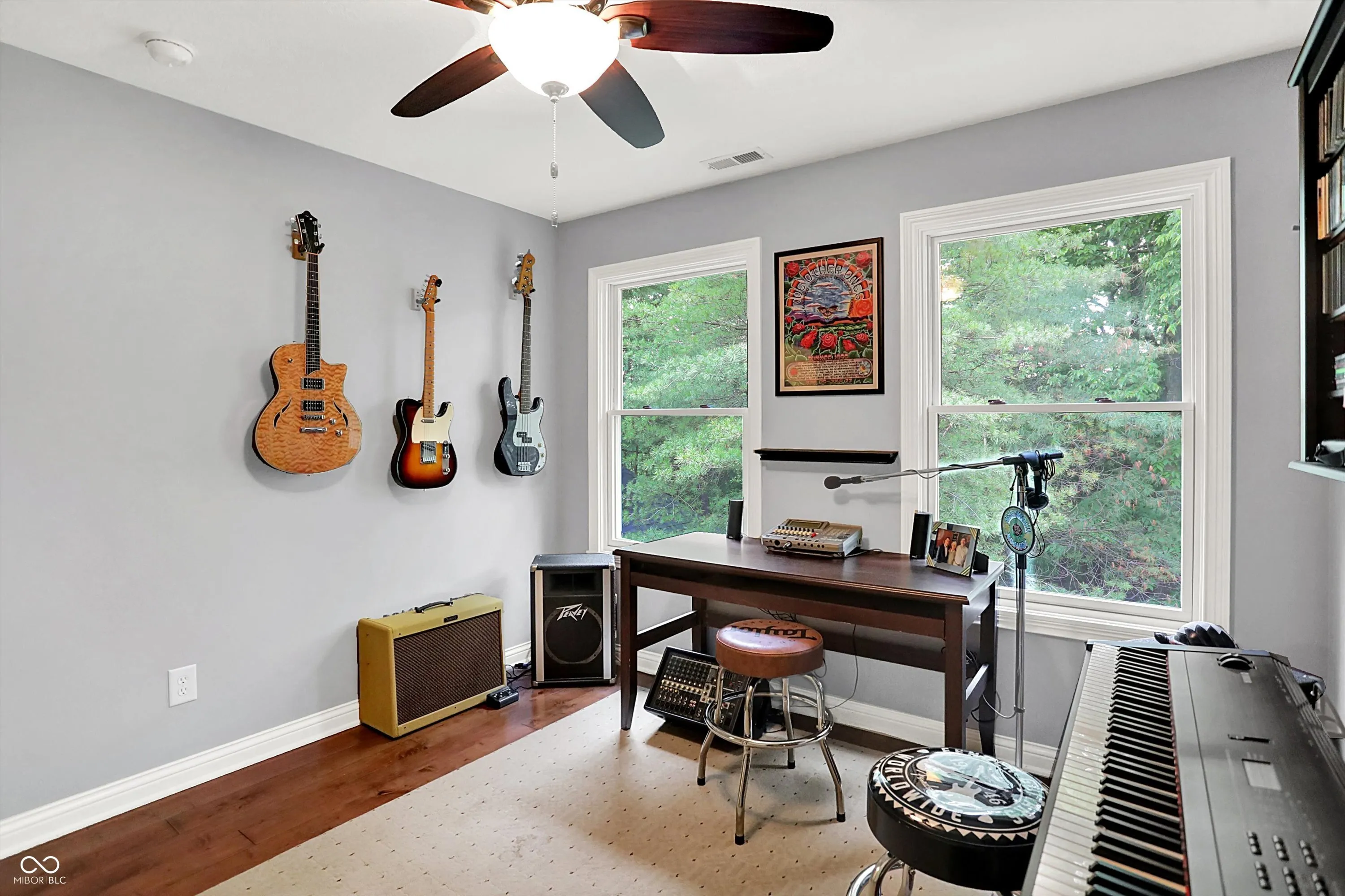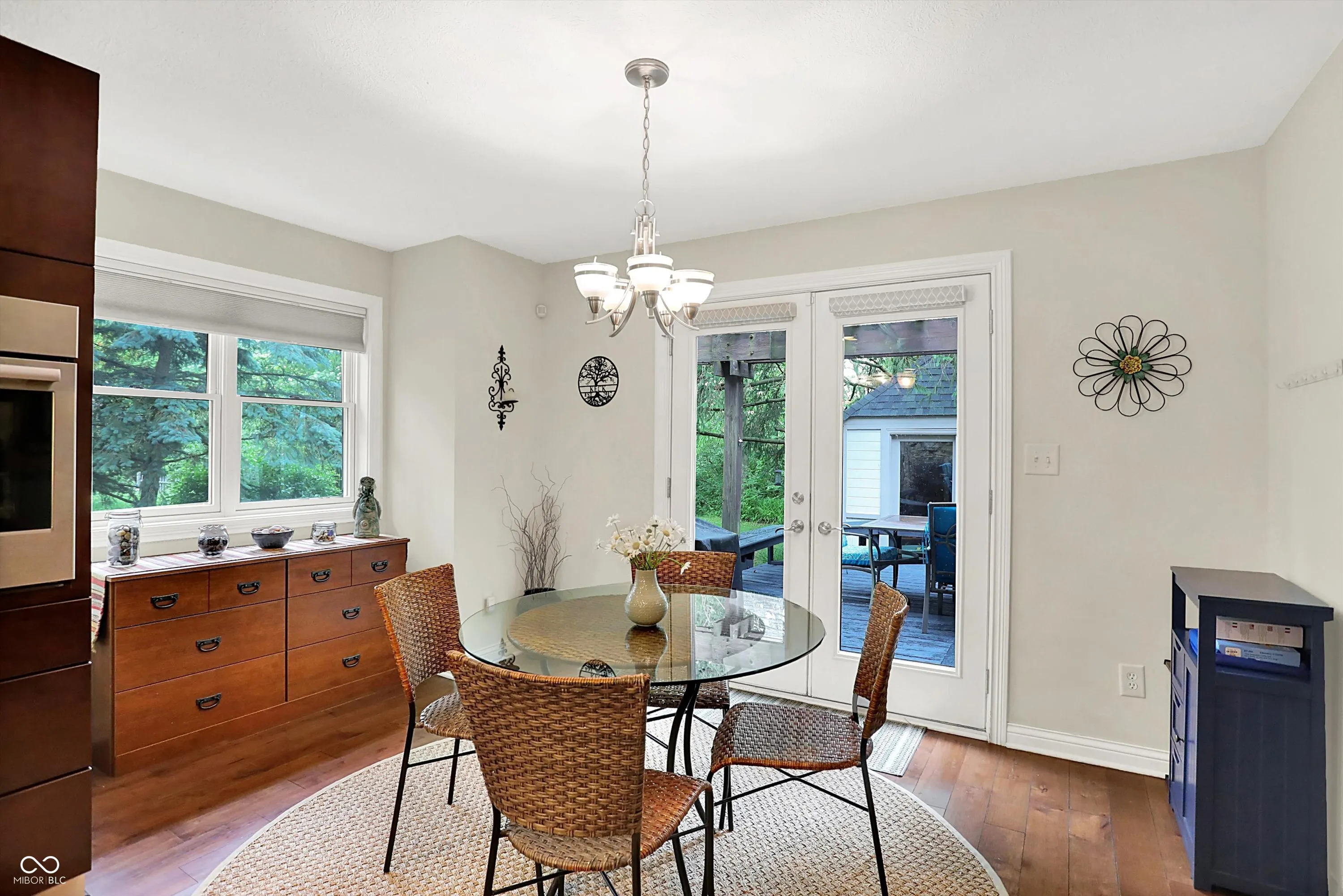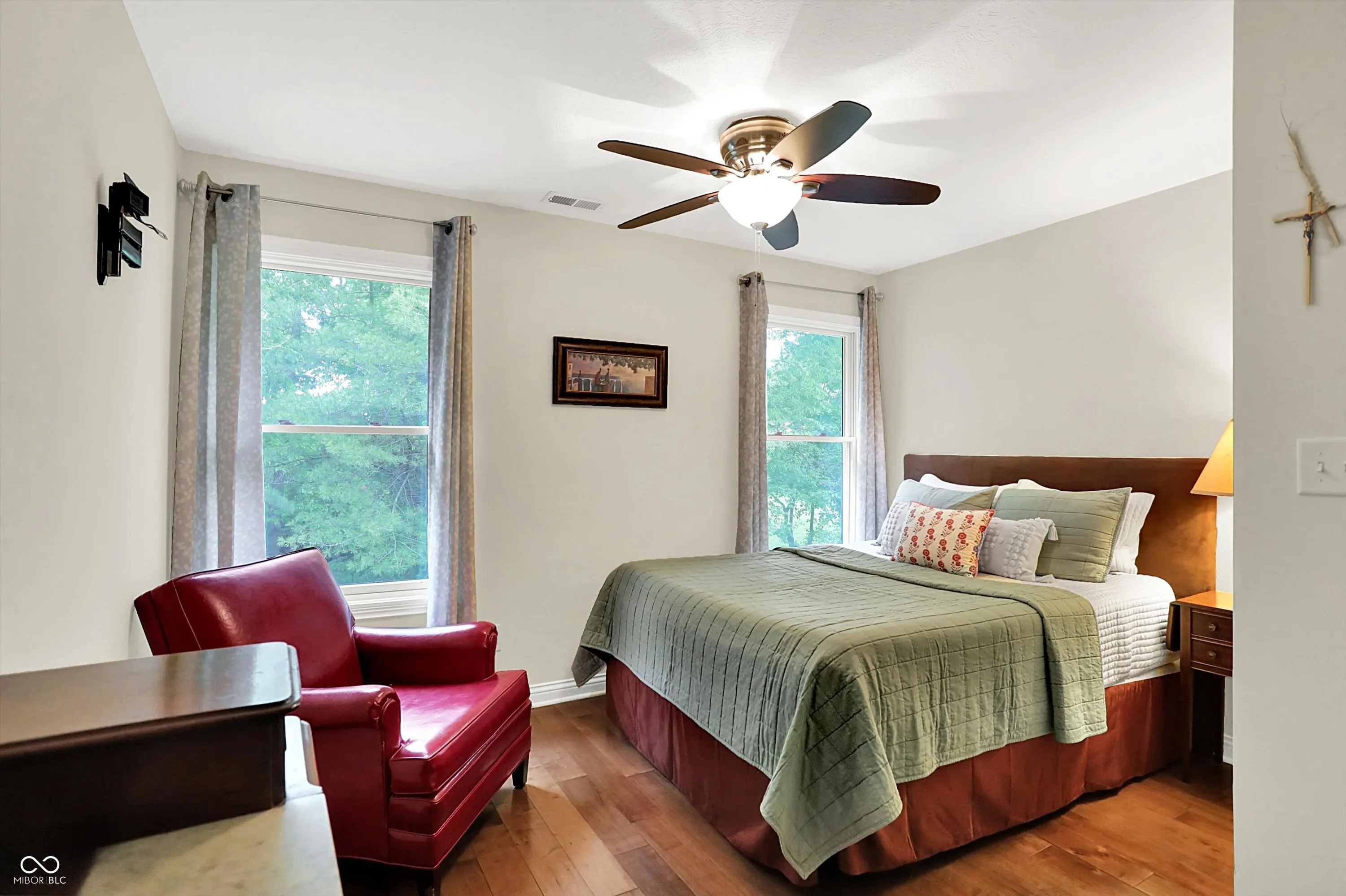 Nestled on 4.5 picturesque acres, this wonderful 3-bedroom, 2.5-bath home offers a tranquil retreat surrounded by mature trees and a winding creek. Hardwood floors flow throughout the main and upper levels, lending warmth and character to every room. The main level welcomes you with an inviting family room anchored by a unique stone fireplace with high-efficiency wood burning insert that heats the entire main level, a spacious kitchen with large center island, and a dining room wrapped in a wall of windows that bring the outdoors in. The open floor plan provides the ideal space for entertaining family and friends. Upstairs, the spacious master suite features an en-suite bath with double vanities, granite countertops, a tiled shower, and a large walk-in closet. Two additional generously sized bedrooms complete the upper level. Step outside onto the expansive deck, where you’ll be surrounded by the beauty of mature trees. A charming koi pond adds to the serenity, while a quaint gazebo invites you to sit back and relax. The 36′ x 26′ pole barn offers plenty of space for recreational vehicles and extra storage.(2) 14′ doors and 30 AMP RV plug in allow for your largest toys! Also on the property, a delightful cottage could serve as the perfect greenhouse or a whimsical children’s playhouse. Wander the trails that wind through open fields, beneath the canopy of old-growth trees, and along the gentle flow of the creek-an idyllic setting for those who appreciate nature, privacy, and the comforts of home.