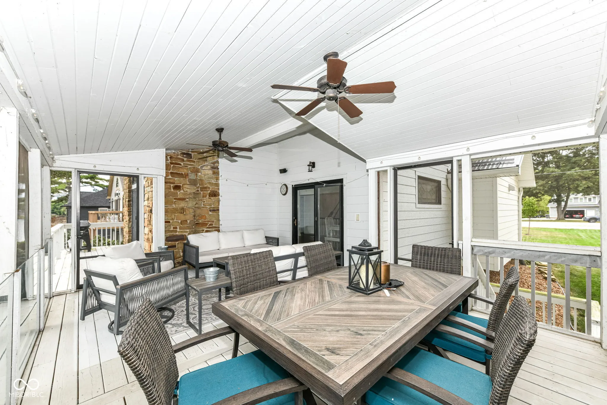 This stunning 5-bedroom, 4.5 bath home offers incredible views of Heritage Lake and an abundance of space for family and friends. The updated kitchen is truly the heart of the home-completely open to the dining room and great room-featuring an oversized island for meal prep and seating, plus ample cabinetry for storage. From the dining area, step out to the large screened-in porch, where you can enjoy lake activity and al fresco dining without the bother of bugs. The great room boasts vaulted ceilings and a dramatic floor-to-ceiling stone fireplace, creating a warm and inviting space with a touch of grandeur. The main-level primary suite is a private retreat with serene lakefront views and direct deck access-perfect for sipping your morning coffee while soaking in the calm waters. Upstairs, you’ll find two generously sized bunkrooms, each with their own full bathrooms-ideal for hosting large gatherings, where kids or guests can enjoy their own private spaces. The walkout basement expands your living and entertaining options with a second fireplace, a spacious recreation room perfect for a pool table or ping pong, built-in shelving, and a second screened porch overlooking the water. This level also includes two additional bedrooms, a full bathroom, and a laundry room. Outside, the gentle slope to the shoreline makes access easy and enjoyable. The expansive dock area includes two boat slips and plenty of space to relax by the water, fish, or launch into lake fun. This home has everything you need to enjoy lake life to the fullest-plenty of bedrooms, thoughtful gathering spaces, and some of the best views Heritage Lake has to offer.