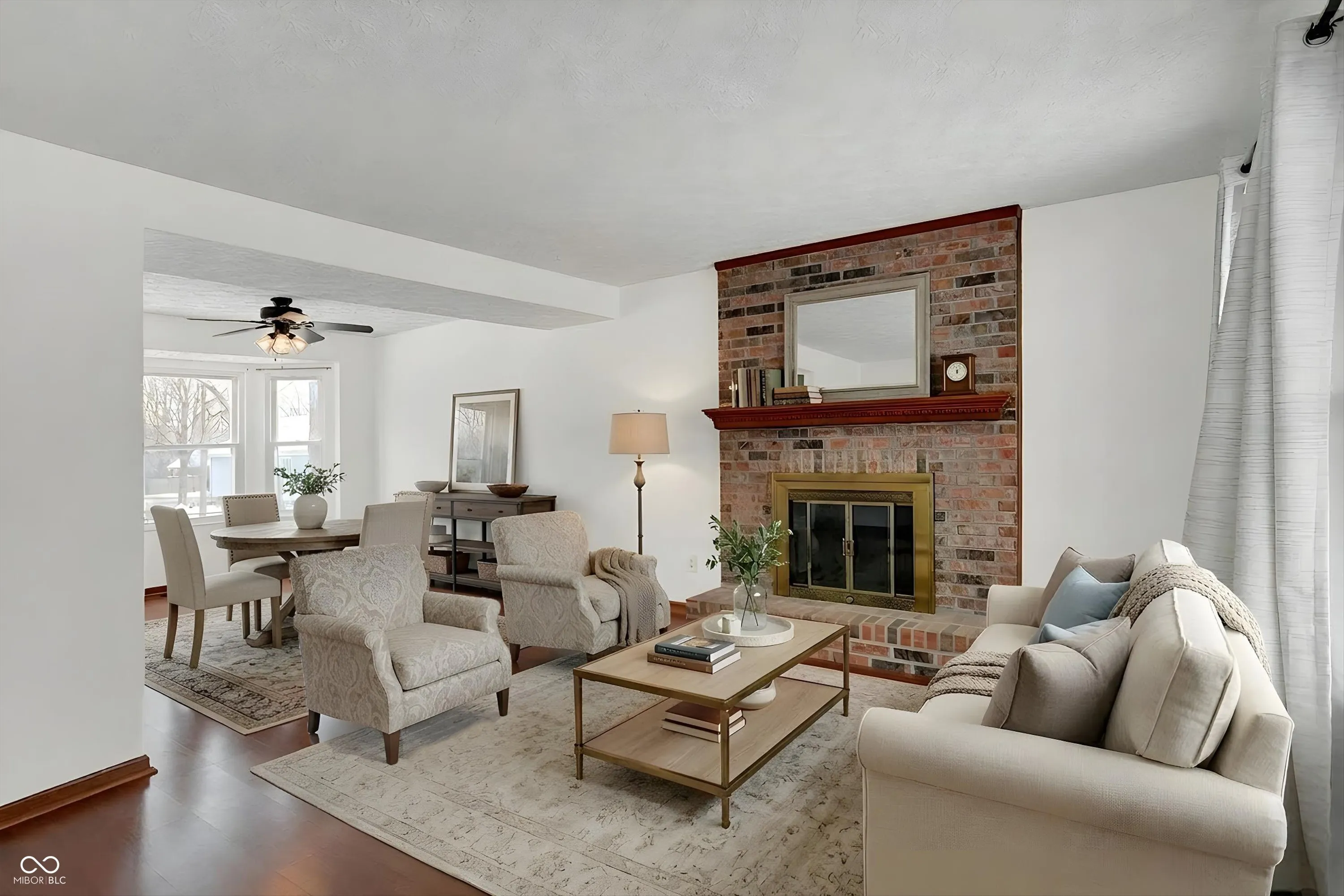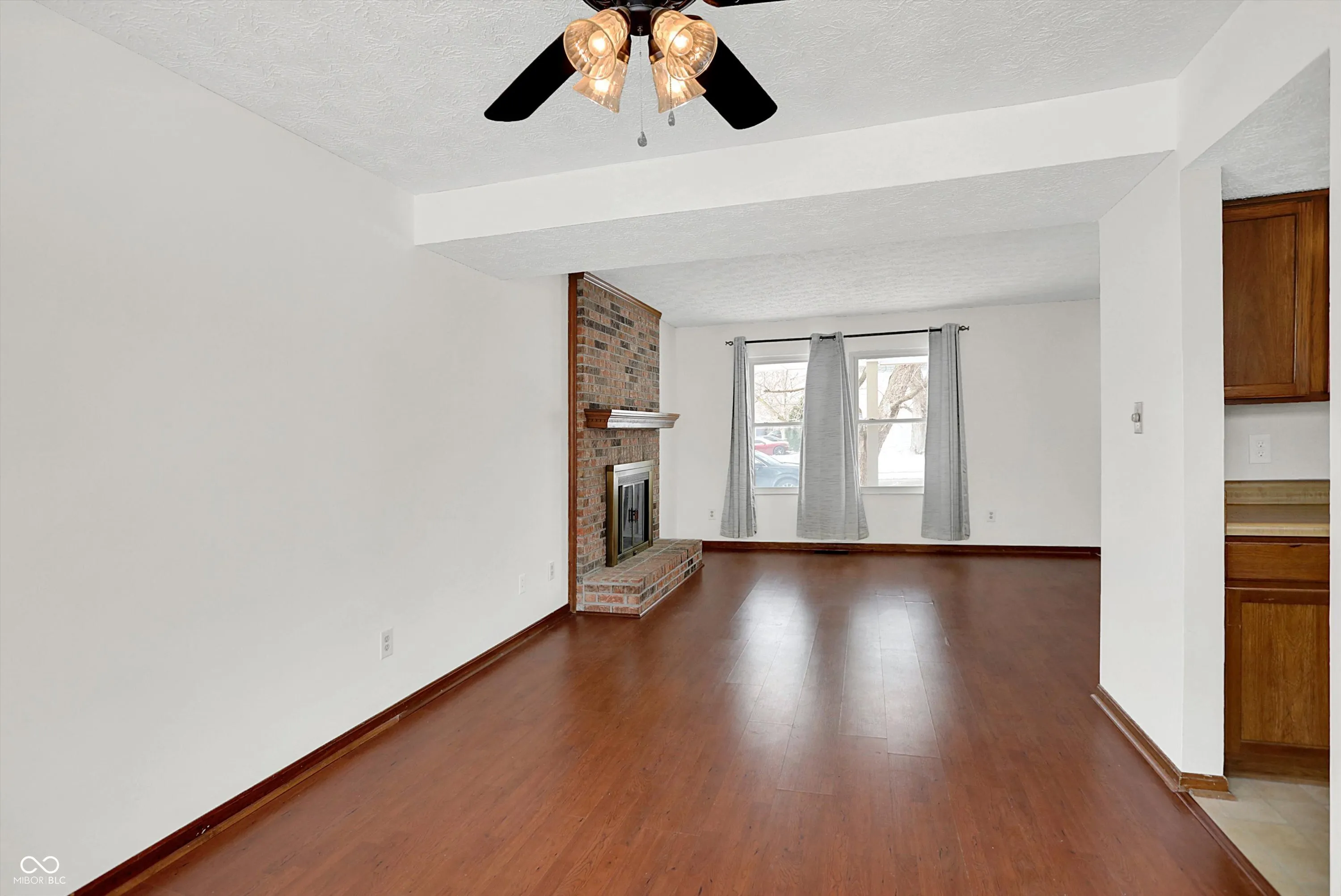 An inviting home awaits, meticulously prepared for immediate occupancy. The heart of this residence, the living room, provides a comfortable sanctuary, distinguished by a charming fireplace that promises cozy evenings and a striking beamed ceiling that adds a touch of architectural grandeur. Within the well-appointed kitchen, a functional kitchen peninsula offers ample space for meal preparation and casual dining, complemented by classic shaker cabinets that provide generous storage for culinary essentials. This two-story single family residence spans 1400 square feet of thoughtfully arranged living area, offering three comfortable bedrooms, one full bathroom, and one convenient half bathroom, all positioned on a manageable .21 acre lot. A dedicated laundry room simplifies household tasks, while a spacious walk-in closet provides an organized retreat for personal belongings. The thoughtfully designed open floor plan cultivates an expansive and airy ambiance throughout the primary gathering spaces, and a welcoming porch offers a serene spot for relaxation and enjoyment of the surroundings. PLUS, new electric range, dishwasher, HVAC, and newish water heater (2024). Family room, dining, and all bedrooms are freshly painted while both bathrooms have been remodeled.