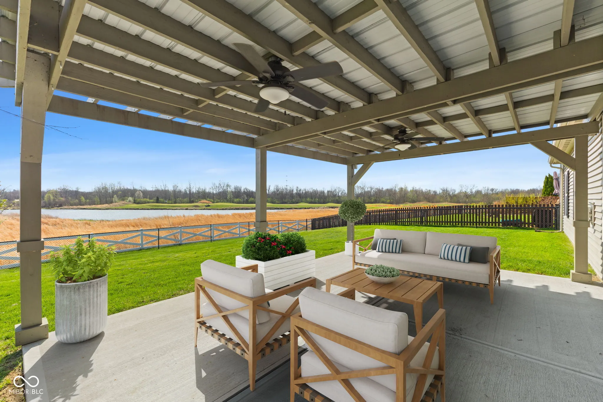 Former Model Home on Premier Golf Course Lot! Beautiful 3BR/2BA ranch with private office, perfectly situated on one of the most peaceful golf course lots in the neighborhood. Originally one of the community’s model homes, this property features quality upgrades and thoughtful design throughout. Great room offers a stunning wall of windows with serene course views and a gas fireplace with blower for added heat and comfort. Updated LVP flooring in main areas; carpet replaced in 2019. Kitchen includes granite countertops, pantry, stainless steel appliances (new refrigerator), and updated faucet. Washer & dryer included. Primary suite features granite countertops, updated vanity and faucets, LVP tile flooring, garden tub, separate shower, and walk-in closet with added storage. All bedrooms have walk-in closets with organizers. Office includes French doors. Fenced backyard with sprinkler system and pergola with ceiling fans overlooks the peaceful course setting. HOA includes pools, walking trails, and tennis courts. Move-in ready!