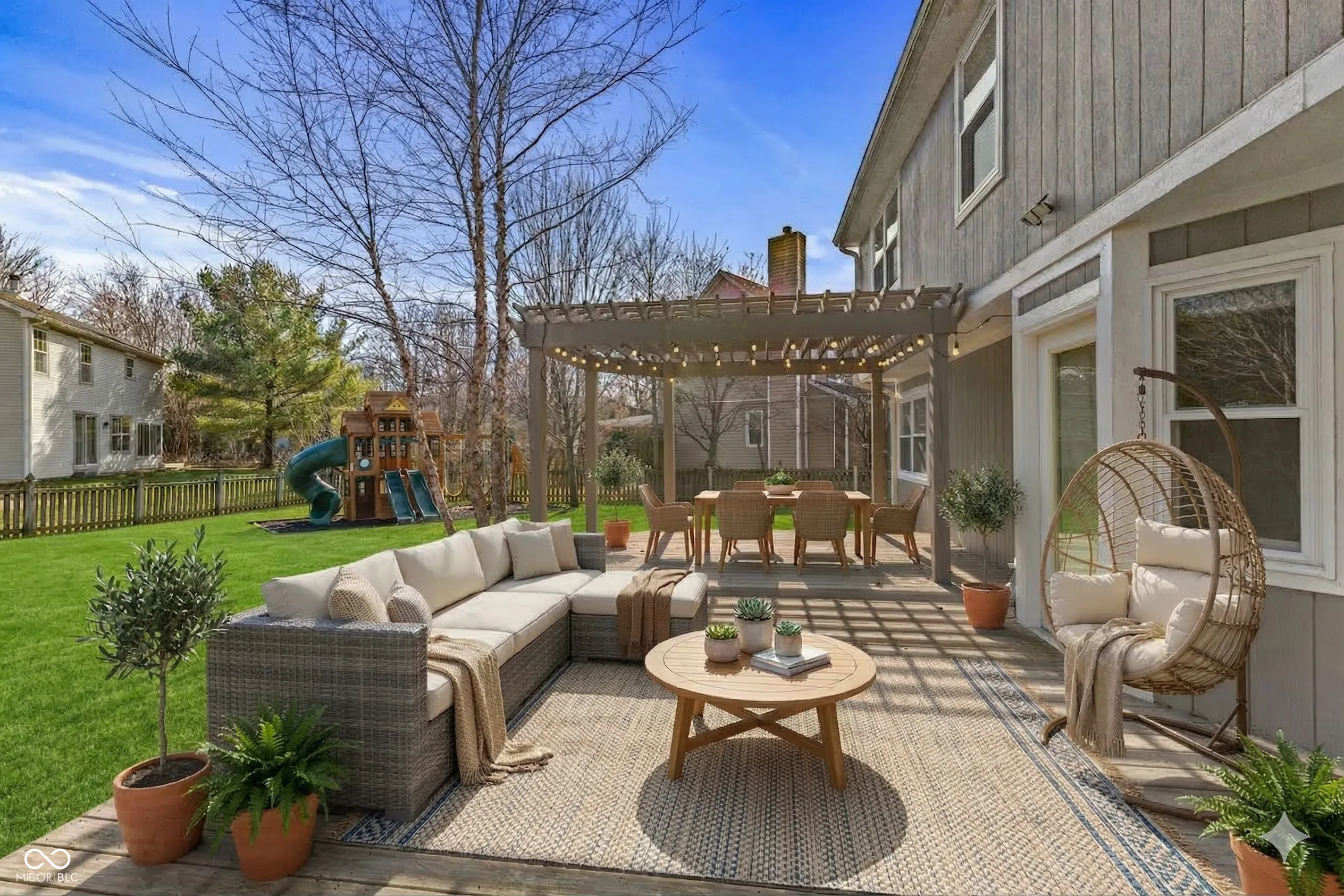 Stop compromising! You can have the peaceful lifestyle you crave without sacrificing space or an easy commute. Nestled at the end of a quiet cul-de-sac near the breathtaking trails of Eagle Creek Park with easy access to I-465, this home is the sanctuary you’ve been waiting for. And yes-it boasts a highly coveted 3-car garage for all your vehicles, hobbies, and storage needs! Prepare to be captivated from the moment you step inside. A airy two-story foyer welcomes you, bathed in natural light that highlights gorgeous hardwood floors throughout the main level. The open living and dining areas offer the perfect backdrop for hosting, flowing effortlessly into the heart of the house past a convenient central half bath. As you move to the back of the home, the atmosphere shifts to pure comfort. Picture crisp evenings curled up in the expansive family room, anchored by a cozy brick-surround fireplace. This inviting haven opens directly to a sunlit breakfast room and a chef-inspired kitchen with gleaming granite countertops and stainless steel appliances. Step outside to discover your outdoor oasis: a fully fenced backyard featuring an oversized deck with a pergola and an included playset-your new favorite spot for morning coffee, evening relaxation, or weekend barbecues! Upstairs, convenience and luxury meet. A central laundry room makes life easy for the four spacious bedrooms, including a hall bath with dual sinks. Your primary suite is a true retreat with vaulted ceilings and a walk-in closet, but the real showstopper is the en-suite bath. Step into your private spa featuring dramatic vaulted ceilings, dual sinks, and a luxurious fully tiled walk-in shower. Homes with a 3-car garage on a cul-de-sac this close to Eagle Creek are a rare find in the market, and they vanish quickly. This is a lifestyle you must experience in person. Schedule your private showing today before someone else claims your new home! Photos have been virtually staged.