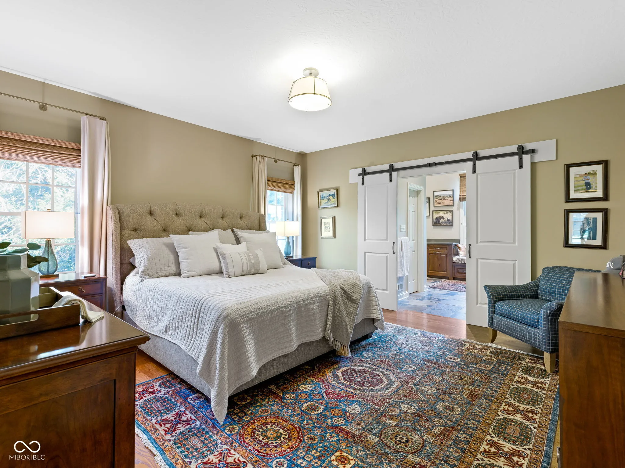 Rare opportunity to own 5 plus acres in Zionsville schools. Tucked away along a picturesque winding driveway, this custom-built full-brick home is surrounded by a variety of mature trees that provide remarkable privacy and scenic views that change beautifully with the seasons. Inside, the home feels warm and comfortable, with hardwood floors and inviting spaces throughout. The main-level primary suite offers a quiet retreat, complete with a beautiful ensuite bath and a hallway that connects directly to the home office. With French doors, built-in shelving, and plenty of natural light, the office is a great spot to work from home, read, or simply enjoy a quiet moment. The vaulted great room is the heart of the home, centered around a beautiful brick fireplace and open to the kitchen, creating an easy flow for both everyday living and time spent with family and friends. Upstairs, three spacious bedrooms share a full bath and provide plenty of room for family or guests. The finished lower level adds even more flexible living space, with a fifth bedroom, full bath, wet bar, and a large recreation area that works well for movie nights, workouts, or casual entertaining. The property’s barn adds tremendous flexibility and opportunity. Currently outfitted with two stalls, automatic waterers, hay storage, and a tack area, the space could easily accommodate horses, hobby farming, small animals, a workshop, studio, or additional storage. A finished apartment above the barn with a kitchenette and full bath offers excellent space for guests, extended family, or a private office. The possibilities are endless! Minutes from Zionsville schools, shopping, dining, and interstates, this property is a rare opportunity to enjoy peaceful country living without sacrificing modern conveniences. Whether you’re dreaming of horses, hobby farming, or a retreat from everyday life, this property is ready to bring your vision to life.