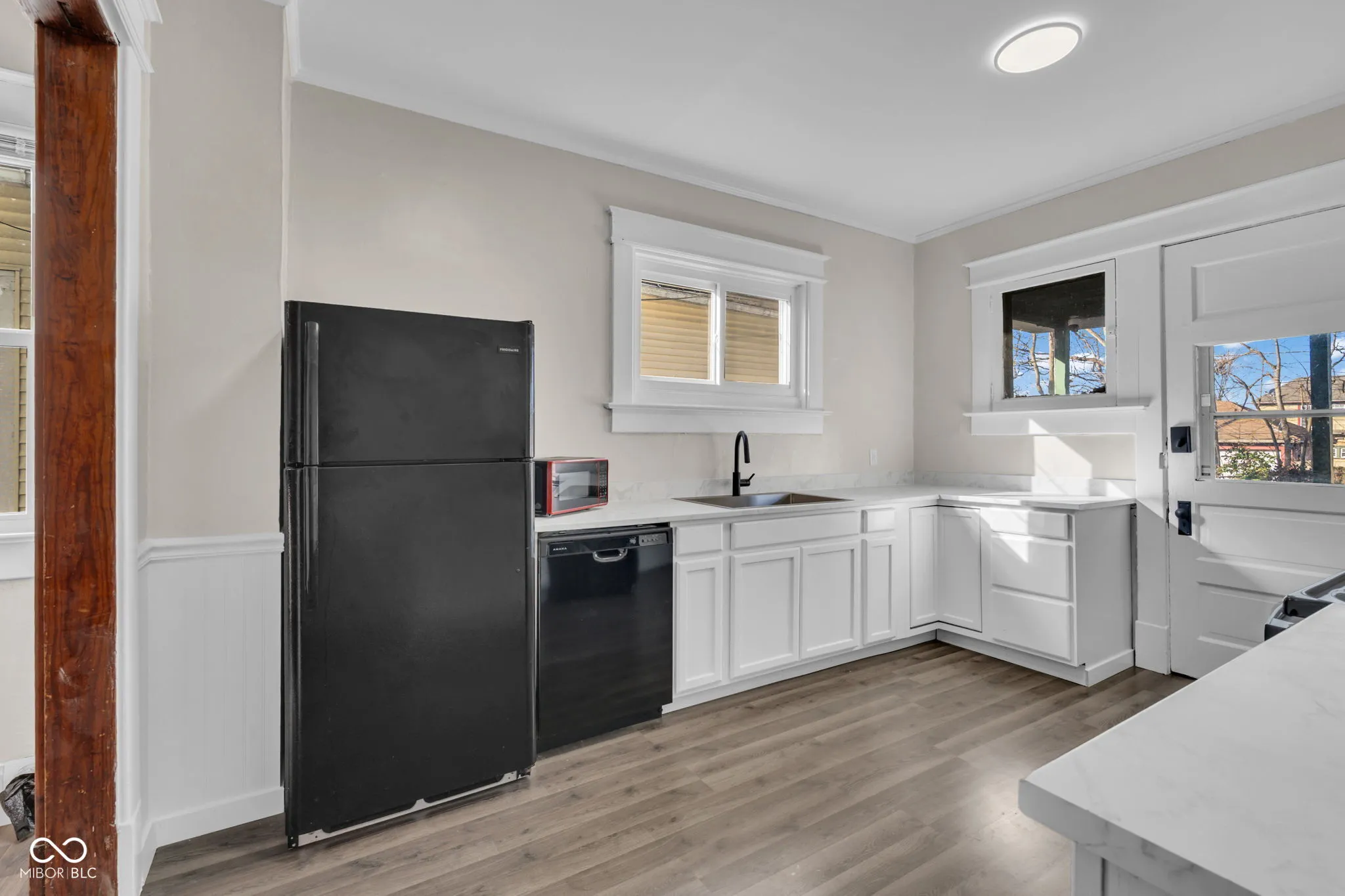Situated on a corner lot mere blocks from Collett Park, this historic 3 bedroom home is full of charm and character. Many original features remain including hardwood floors, doors, trim, some windows, a gorgeous fireplace mantel, and a pocket door separating the living and dining areas. Recent updates include a new roof, windows, electrical, and hot water heater. The spacious bathroom has been fully renovated and boasts a double vanity and functional tub/shower combo. In the kitchen you’ll find brand-new cabinets, countertops, sink, and a new dishwasher. A butler’s pantry off the kitchen has an original built-in that can serve as additional storage, and also conveniently houses the laundry on the main level. With the right touch, the attic could double the finished square footage of the home and be made into an incredible master suite or separate living area. The fenced backyard is private on 2 sides and offers plenty of space for pets, gardening, and recreation. Come see if this blend of old and new is the home you’ve been searching for!