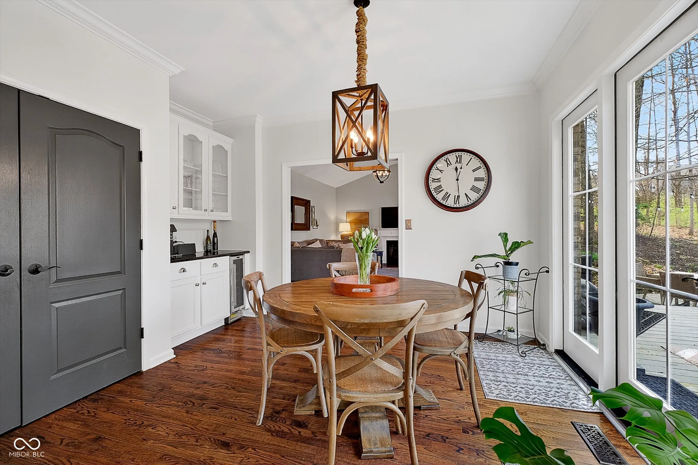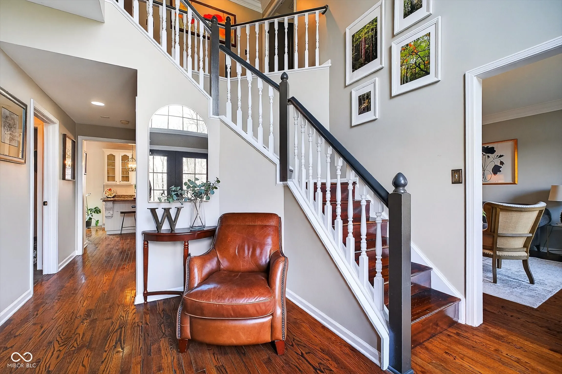 Timeless elegance meets modern comfort in this 4 bedroom, 3 1/2 bath home. You are greeted with elegant landscaping and stamped walkway that lead up to your stunning front door. A two-story foyer with hardwood stairs, black railing, and crown molding sets the tone, while the great room’s cathedral ceiling and gas fireplace create a welcoming centerpiece. The formal living and dining rooms feature tray ceilings and custom moldings, perfect for entertaining. The kitchen is both stylish and functional, with white cabinetry, granite counters, stainless steel appliances, tile backsplash, a wood-topped island, pantry, and butler’s pantry with wine fridge. A bright office with French doors, drop zone off the garage, and a large bonus room upstairs (ideal as a 5th bedroom) add versatility. The primary suite offers a cathedral ceiling, jetted garden tub, tiled shower, double sinks, recessed lighting, and a custom walk-in closet. Finished basement boasts a large family room, recreation area, wet bar, built-ins, surround sound, full bath, and ample storage. Outdoor spaces include a deck, stamped concrete patio, and serene wooded backyard.