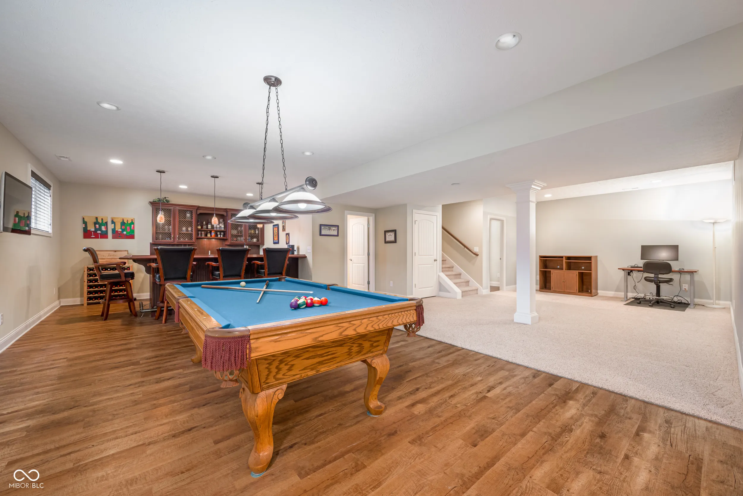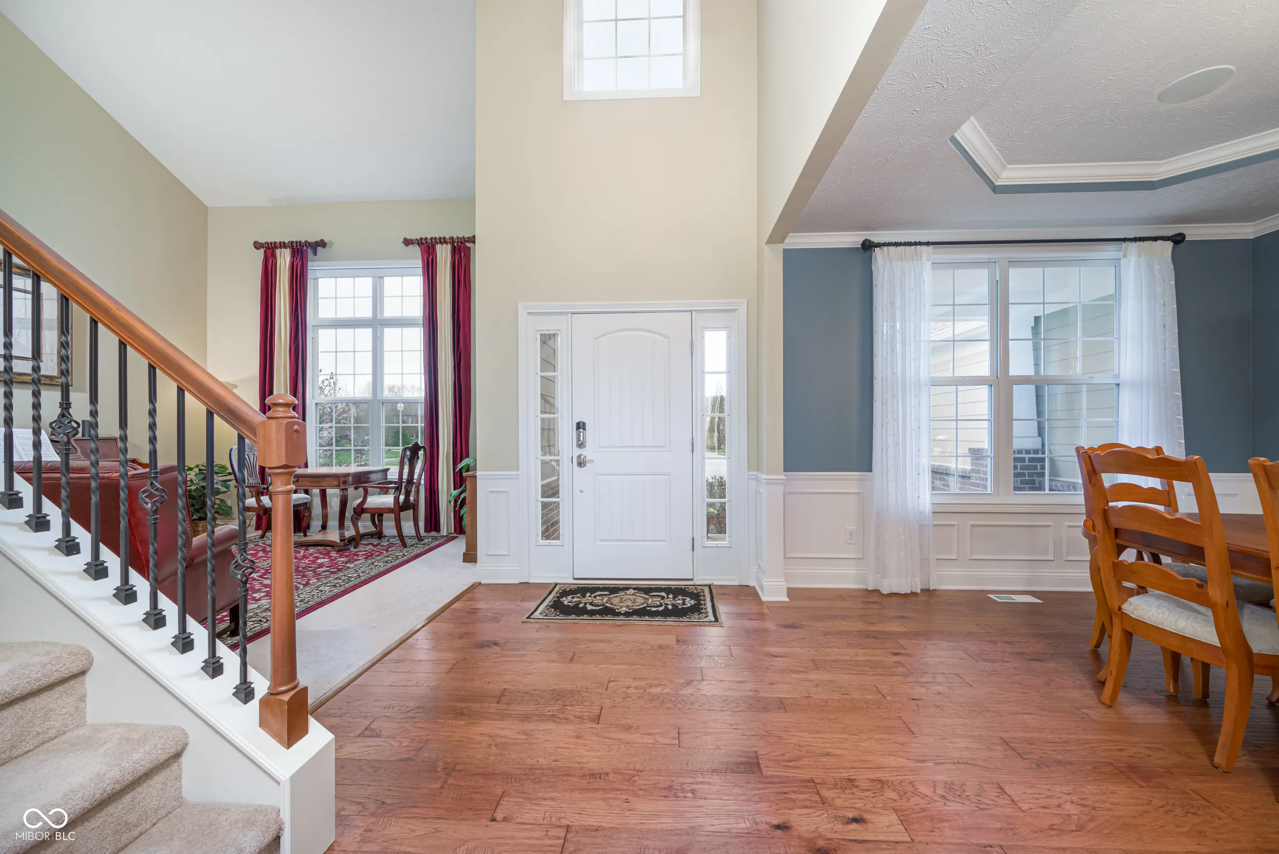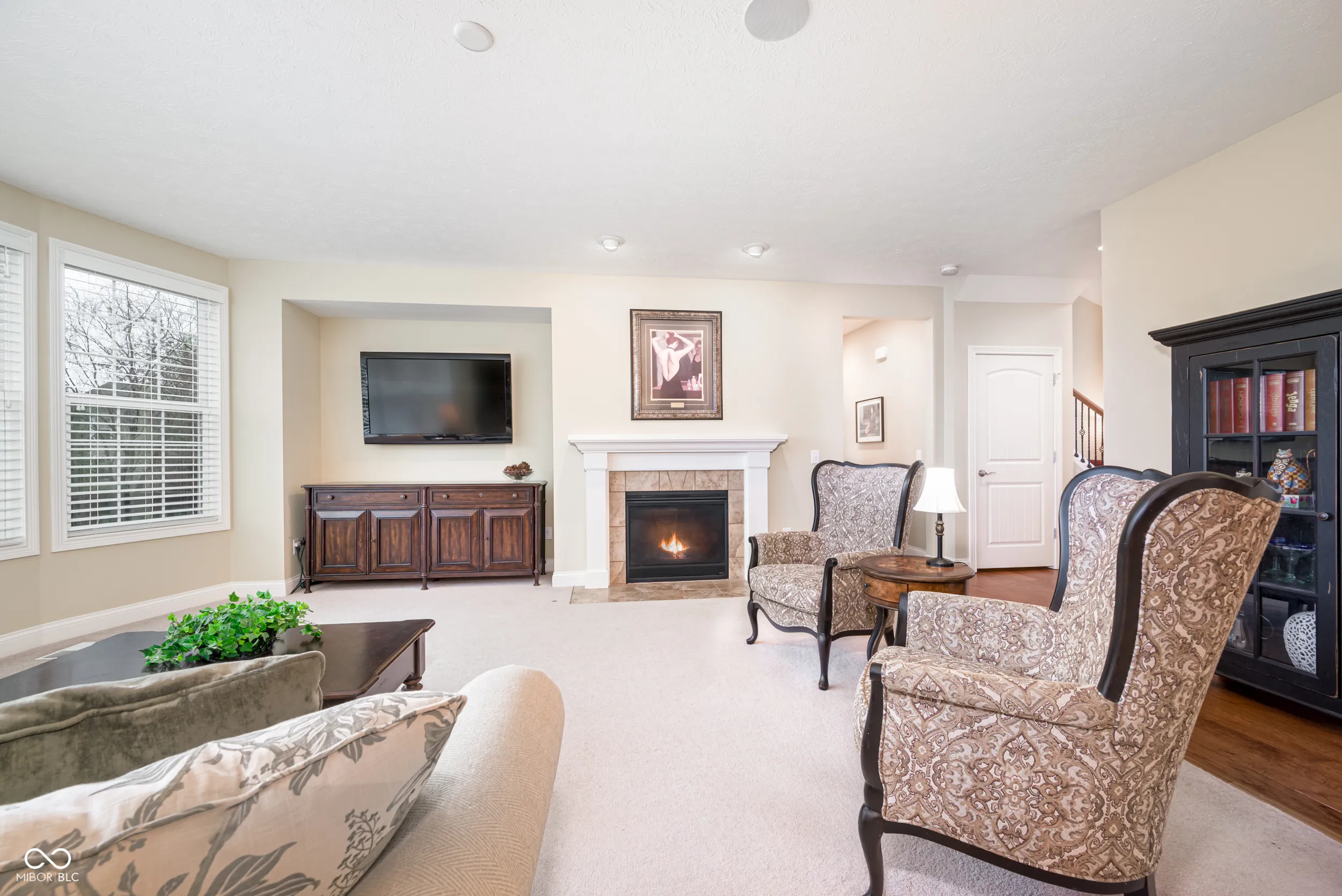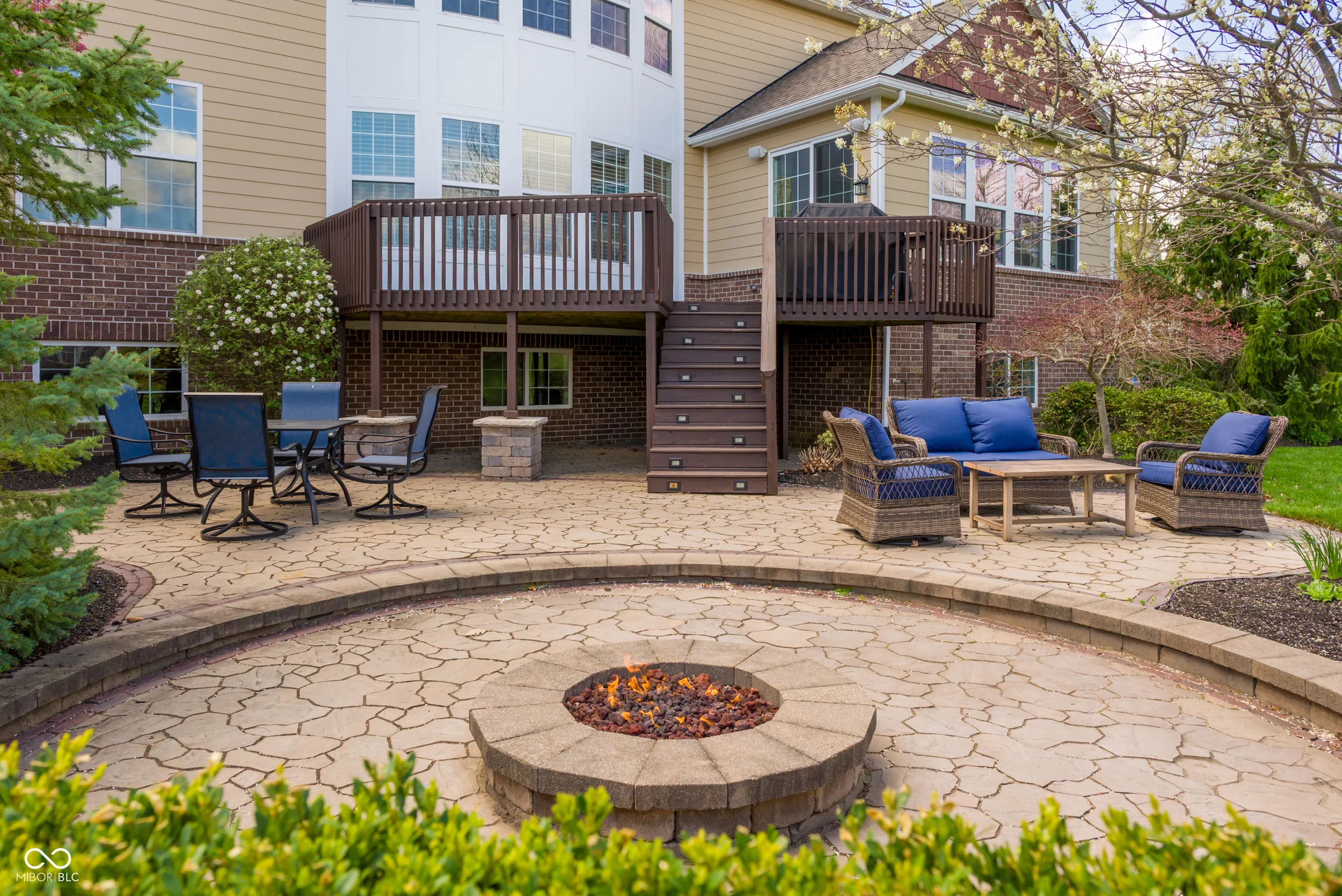 Welcome to this beautifully maintained home nestled on a quiet cul-de-sac in the desirable Cobblestone Lakes of Zionsville neighborhood. A grand two-story foyer with cathedral ceilings creates an impressive first impression and flows seamlessly into the spacious two-story living room. The main level features rich hardwood floors throughout, complementing the open-concept design. The inviting family room offers a cozy gas fireplace and opens directly to the kitchen with its large center island with seating, granite countertops, stainless steel appliances, including a gas cooktop and double ovens, a walk-in pantry, and an additional peninsula for extra seating. Adjacent to the kitchen is a charming sunroom, while the formal dining room-with tray ceiling and elegant wainscoting-provides additional space for hosting. A private den, currently used as a home office, laundry and half bath complete the main level. Upstairs, the expansive primary suite is filled with natural light and features an ensuite bath with seperate vanities and a relaxing garden tub. The second floor also includes a versatile loft with surround sound, three additional bedrooms, one with full bathroom, and a convenient Jack-and-Jill bathroom connecting two of the bedrooms. The finished basement offers exceptional additional living space, with a large recreation area, full wet bar, additional family room, full bathroom, and a bonus room currently used as a fitness space. The backyard is just as impressive, with oversized patio doors leading to a newly refurbished deck and paver patio featuring a natural gas fire pit and gas line for a grill-perfect for entertaining year-round. Residents of Cobblestone Lakes enjoy access to community amenities, including a pool, playground, sports courts, and scenic walking paths that connect to the Rail Trail. This home truly has it all-space, style, and an unbeatable location.