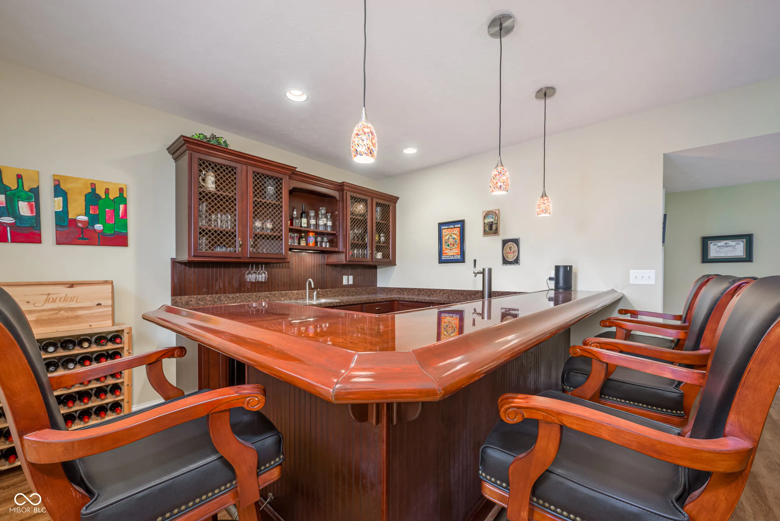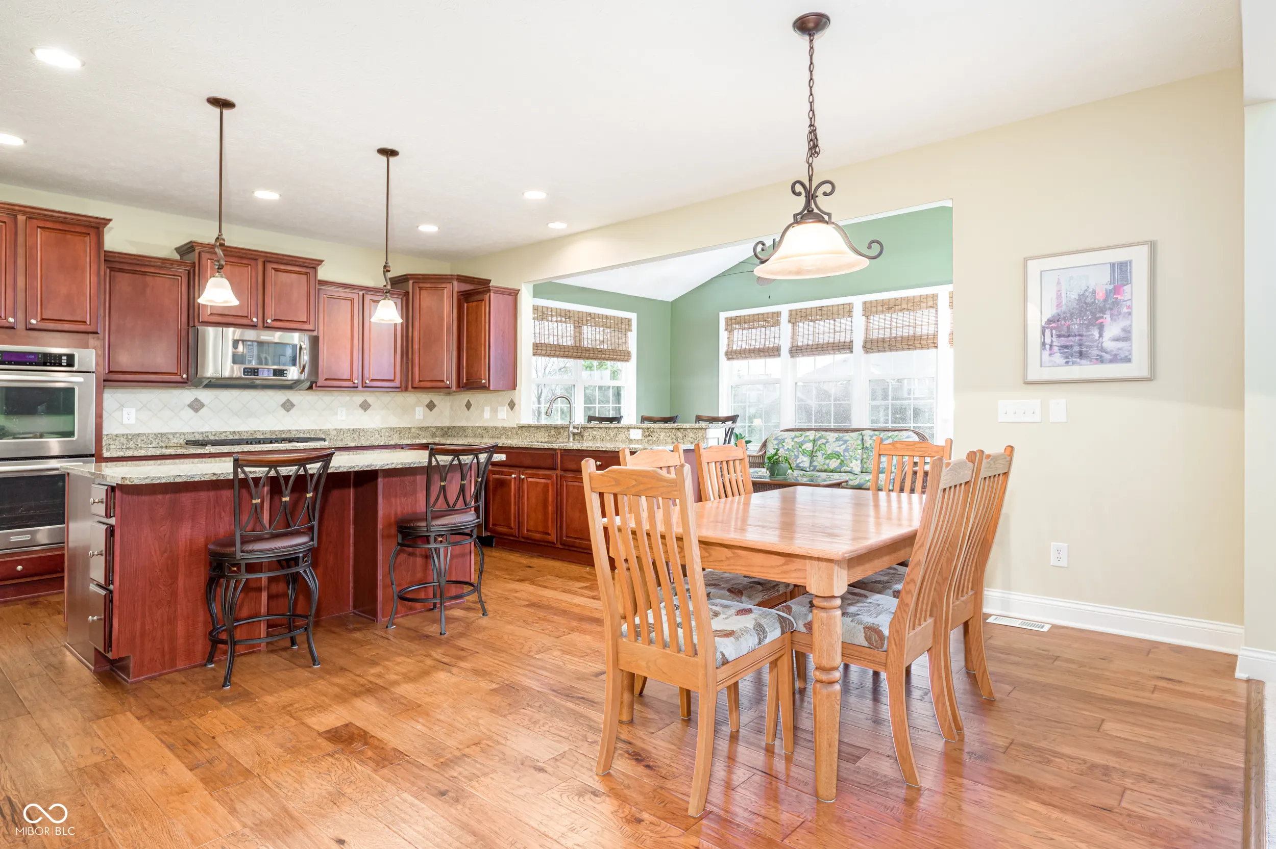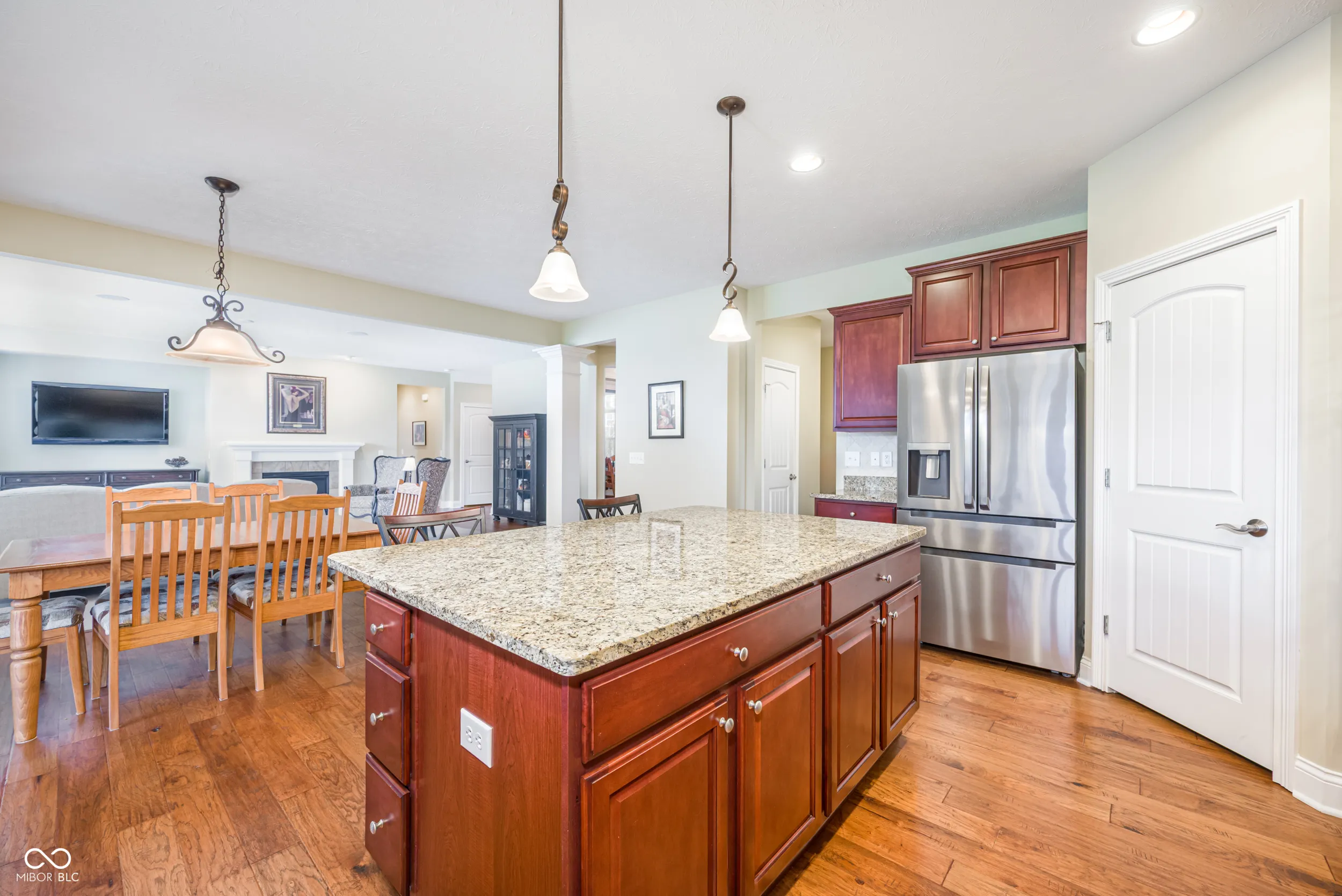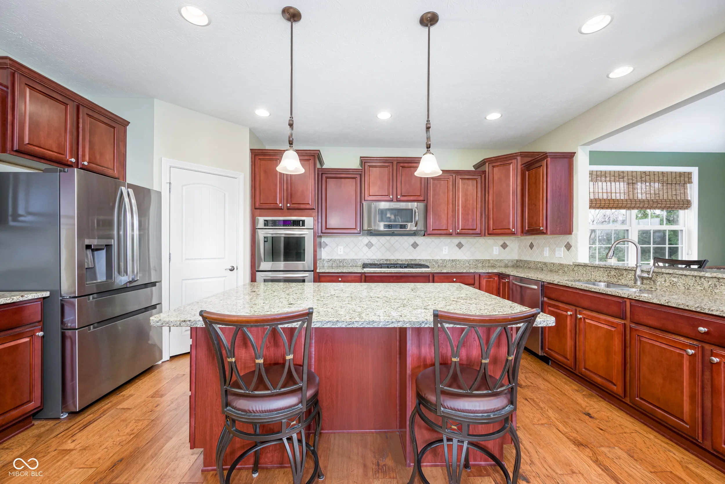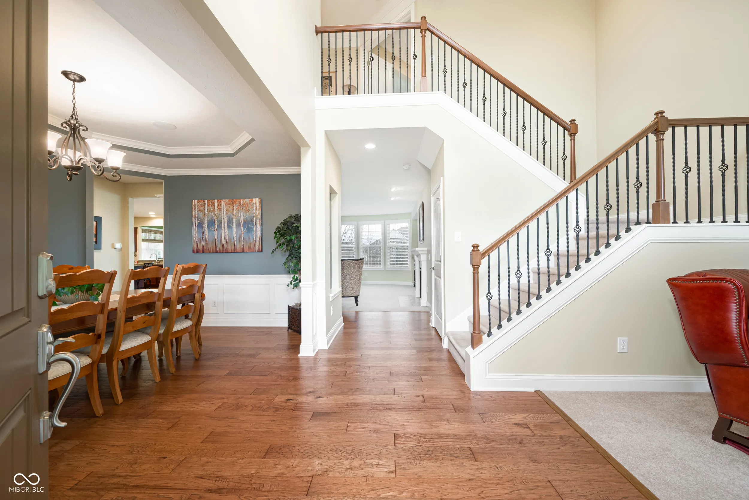 Welcome to this beautifully maintained home nestled on a quiet cul-de-sac in the desirable Cobblestone Lakes of Zionsville neighborhood. A grand two-story foyer with cathedral ceilings creates an impressive first impression and flows seamlessly into the spacious two-story living room. The main level features rich hardwood floors throughout, complementing the open-concept design. The inviting family room offers a cozy gas fireplace and opens directly to the kitchen with its large center island with seating, granite countertops, stainless steel appliances, including a gas cooktop and double ovens, a walk-in pantry, and an additional peninsula for extra seating. Adjacent to the kitchen is a charming sunroom, while the formal dining room-with tray ceiling and elegant wainscoting-provides additional space for hosting. A private den, currently used as a home office, laundry and half bath complete the main level. Upstairs, the expansive primary suite is filled with natural light and features an ensuite bath with seperate vanities and a relaxing garden tub. The second floor also includes a versatile loft with surround sound, three additional bedrooms, one with full bathroom, and a convenient Jack-and-Jill bathroom connecting two of the bedrooms. The finished basement offers exceptional additional living space, with a large recreation area, full wet bar, additional family room, full bathroom, and a bonus room currently used as a fitness space. The backyard is just as impressive, with oversized patio doors leading to a newly refurbished deck and paver patio featuring a natural gas fire pit and gas line for a grill-perfect for entertaining year-round. Residents of Cobblestone Lakes enjoy access to community amenities, including a pool, playground, sports courts, and scenic walking paths that connect to the Rail Trail. This home truly has it all-space, style, and an unbeatable location.
