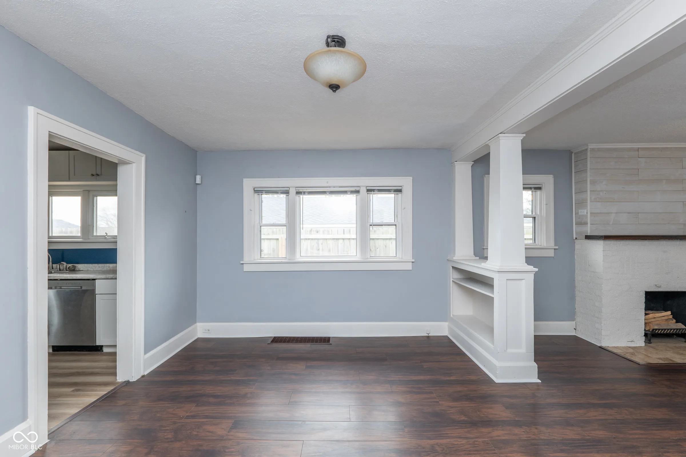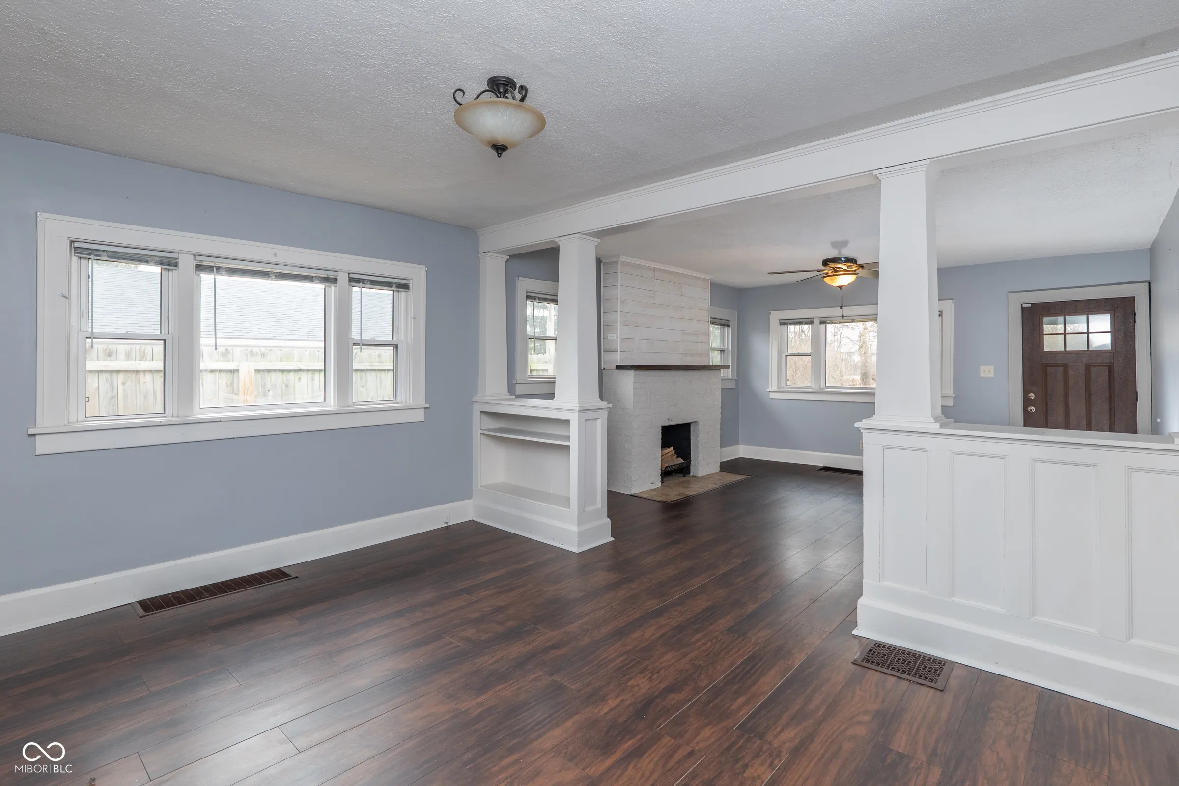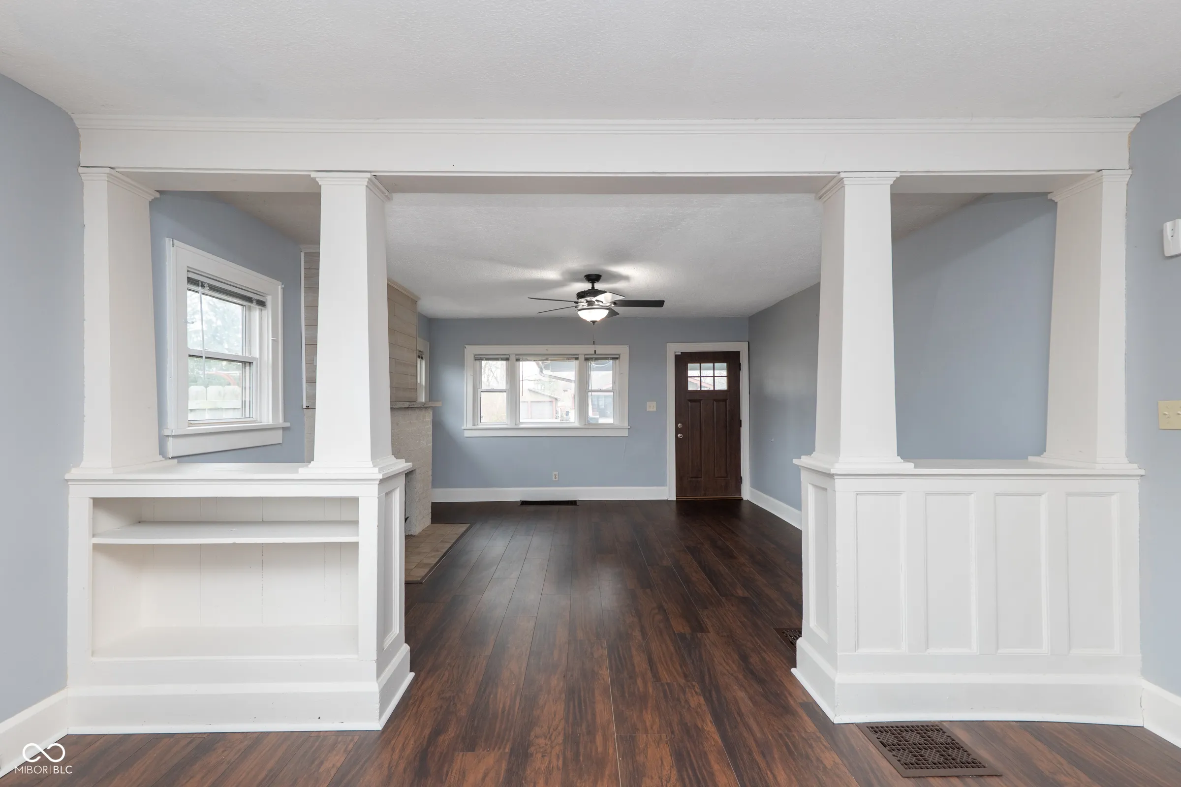 Step into timeless character with this beautifully updated Craftsman bungalow, where classic architectural details meet modern convenience. The iconic covered front porch with exposed beam rafters and tapered columns sets the tone for what awaits inside – a home that’s been thoughtfully refreshed while honoring its original charm. The open living and dining space impresses with rich dark floors, crisp white craftsman-style columns with built-in shelving, and a whitewashed brick fireplace with a warm wood mantel. Natural light pours in through multiple windows. The kitchen has been updated with white shaker cabinets and a full suite of stainless steel appliances – including a French door refrigerator, range, dishwasher and built-in microwave. A stacked washer and dryer are neatly tucked right off the kitchen, keeping laundry convenient and out of the way. Water heater was replaced 2 months ago, Roof was replaced 2 years ago! Vinyl windows throughout. Both bedrooms are generously sized with ceiling fans and great natural light. Out back, a large gravel drive provides ample off-street parking, and the property backs to open green space with Tuehy Park & Pool directly behind – an unbeatable bonus for outdoor enthusiasts. Just a 5-minute drive to Ball State University, this home is perfectly positioned for faculty, staff, or investors seeking strong rental potential in a walkable neighborhood setting. Whether you’re a first-time buyer, downsizer, or savvy investor – this one checks every box.