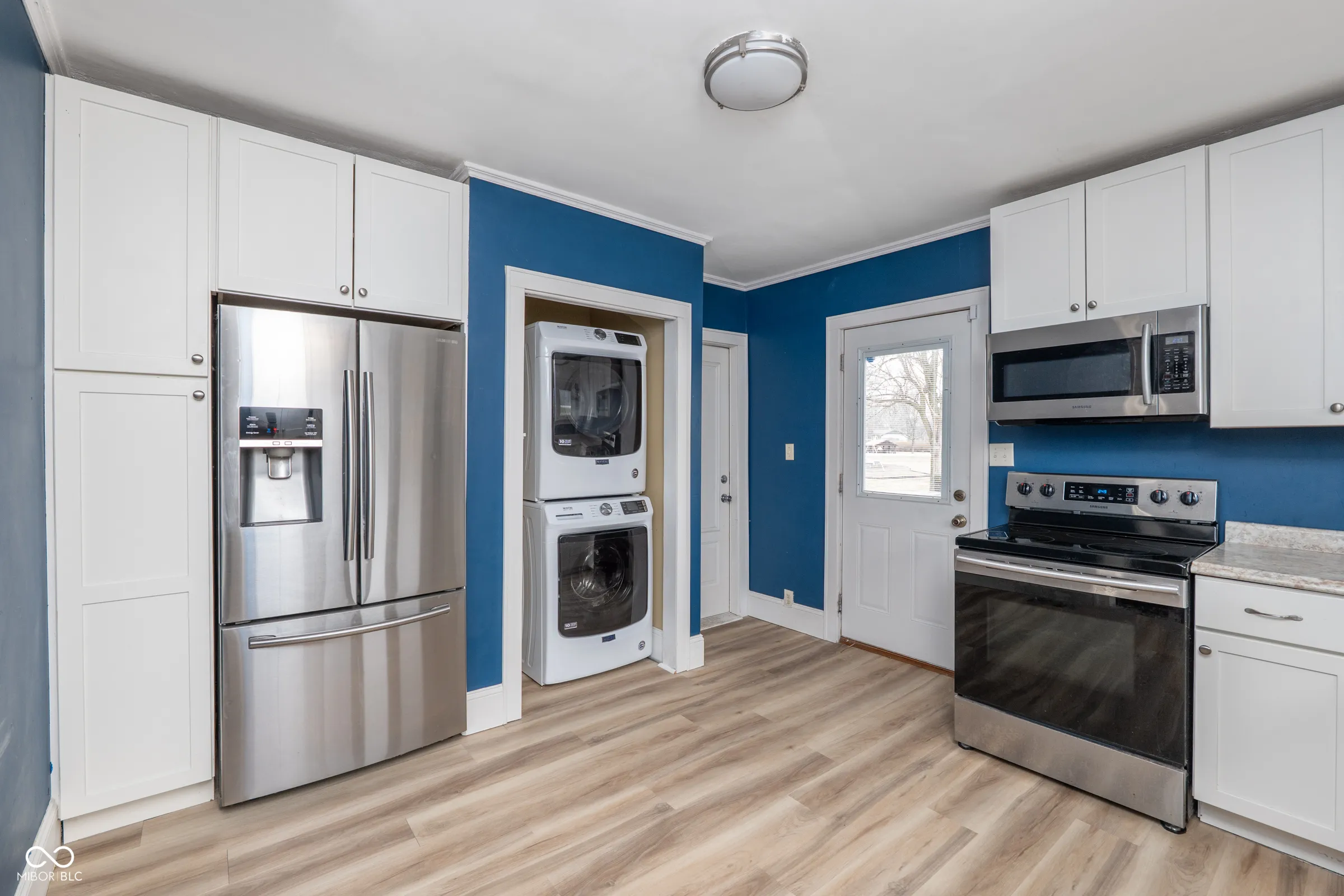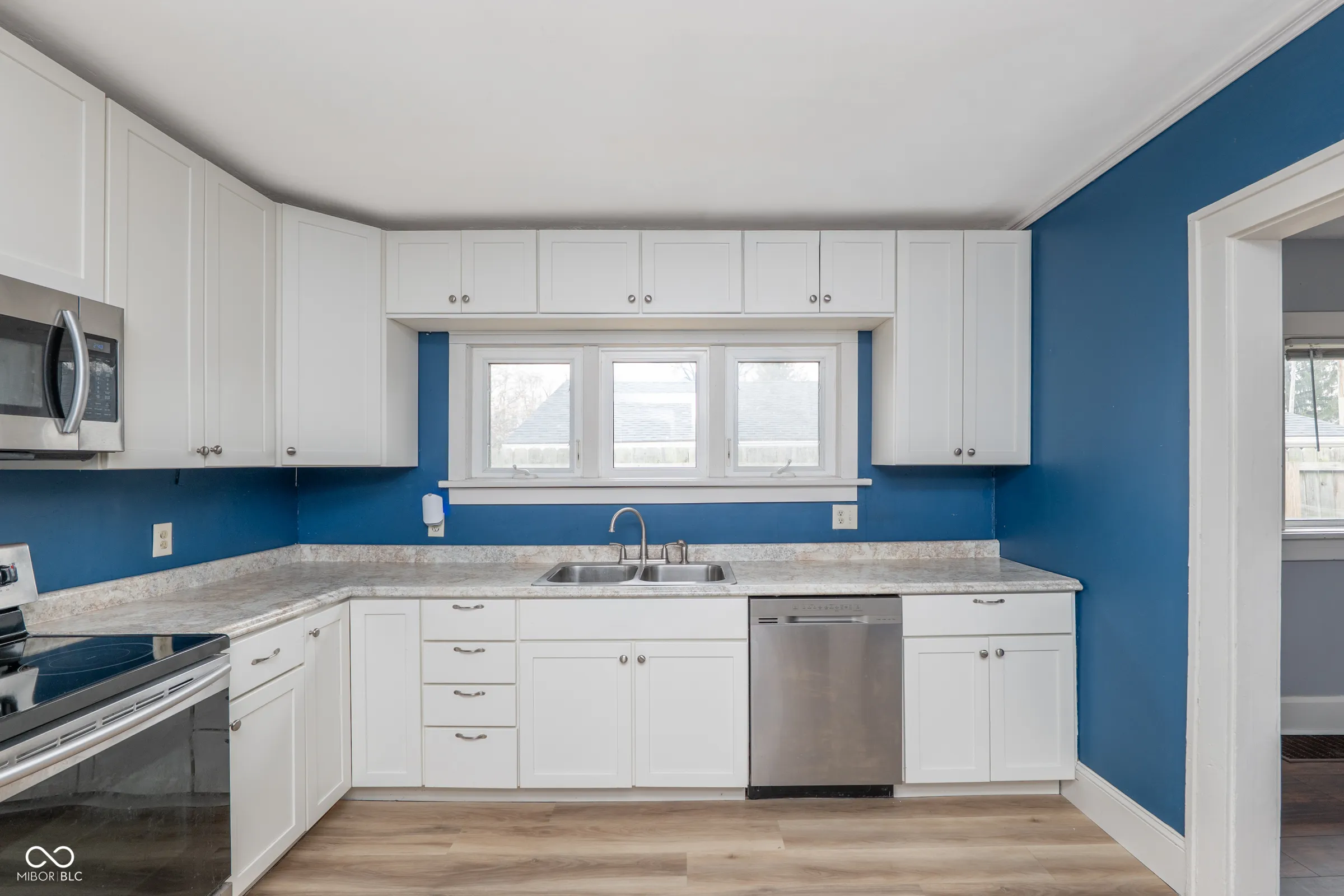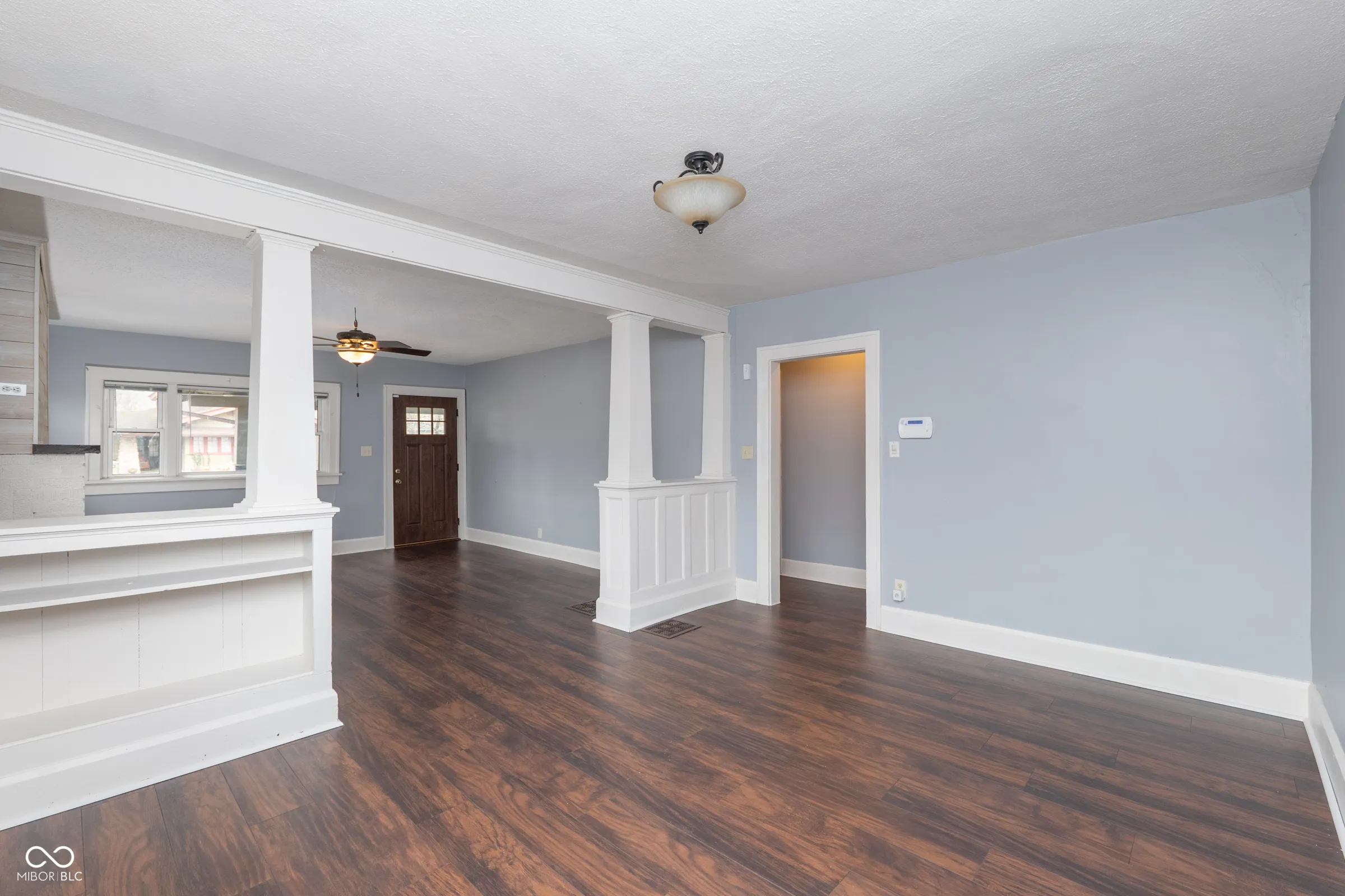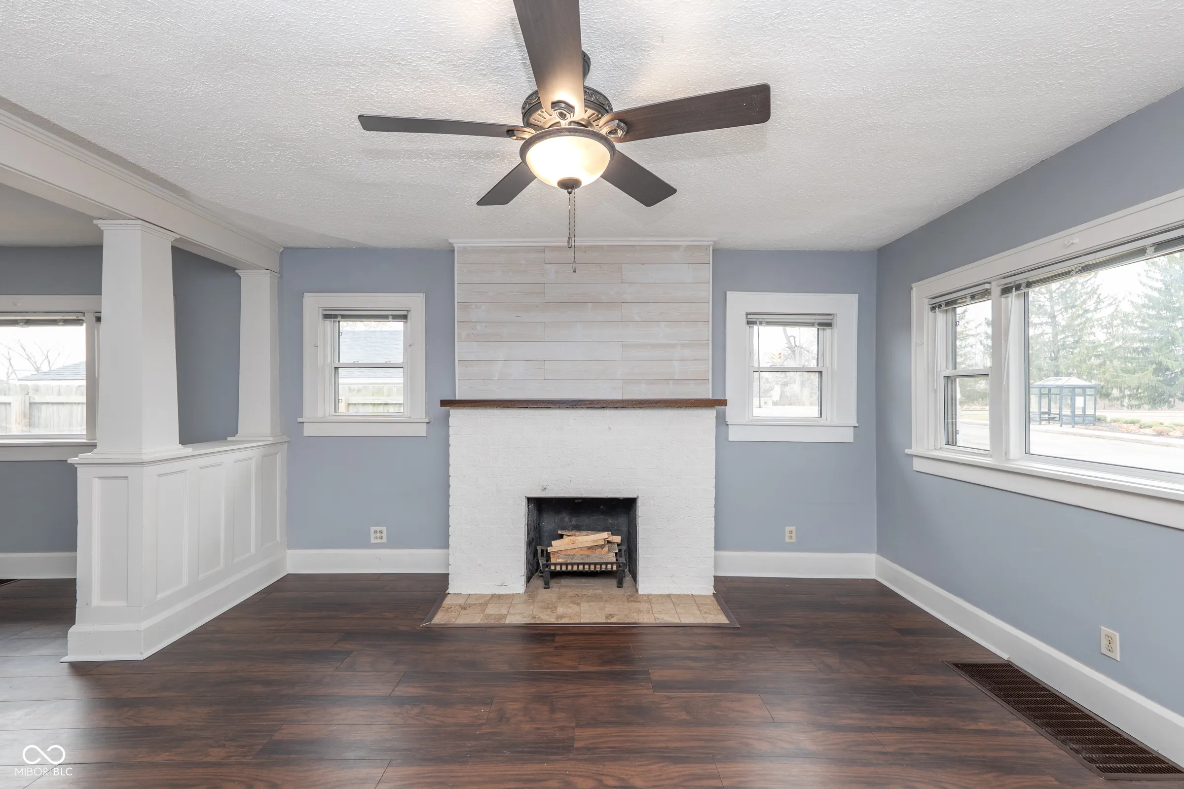 Step into timeless character with this beautifully updated Craftsman bungalow, where classic architectural details meet modern convenience. The iconic covered front porch with exposed beam rafters and tapered columns sets the tone for what awaits inside – a home that’s been thoughtfully refreshed while honoring its original charm. The open living and dining space impresses with rich dark floors, crisp white craftsman-style columns with built-in shelving, and a whitewashed brick fireplace with a warm wood mantel. Natural light pours in through multiple windows. The kitchen has been updated with white shaker cabinets and a full suite of stainless steel appliances – including a French door refrigerator, range, dishwasher and built-in microwave. A stacked washer and dryer are neatly tucked right off the kitchen, keeping laundry convenient and out of the way. Water heater was replaced 2 months ago, Roof was replaced 2 years ago! Vinyl windows throughout. Both bedrooms are generously sized with ceiling fans and great natural light. Out back, a large gravel drive provides ample off-street parking, and the property backs to open green space with Tuehy Park & Pool directly behind – an unbeatable bonus for outdoor enthusiasts. Just a 5-minute drive to Ball State University, this home is perfectly positioned for faculty, staff, or investors seeking strong rental potential in a walkable neighborhood setting. Whether you’re a first-time buyer, downsizer, or savvy investor – this one checks every box.