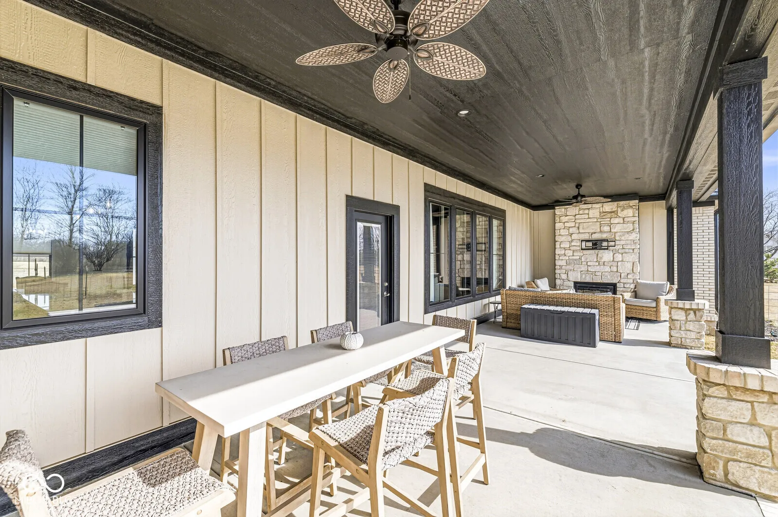 This nearly new custom home built just 2 years ago, and conveniently located minutes from Brownsburg amenities and a short drive to Avon, with I-74 only 11 minutes away. This thoughtfully designed home offers 2,725 sq. ft., 3 bedrooms, and 2.5 baths with an open floor plan focused on comfort and functionality. The spacious primary suite connects directly to a large walk-in closet and laundry room for everyday convenience. Enjoy relaxing evenings on the covered porch featuring an electric fireplace and mounted TV. Built with future outdoor living in mind, the property is ready for an in-ground pool with gas lines already installed for a heated pool and outdoor grill. A service door from the half bath provides convenient pool access. The home also includes a 30-amp breaker for a future hot tub and a 400-amp electrical service. Car enthusiasts will love the oversized 1,400 sq. ft. 3-car garage with epoxy floors, 8-ft doors, and 30-ft depth-large enough for full-size trucks. Each bay includes a floor drain, and a 17′ x 6′ climate-controlled storage, with all epoxy flooring throughout the garage.