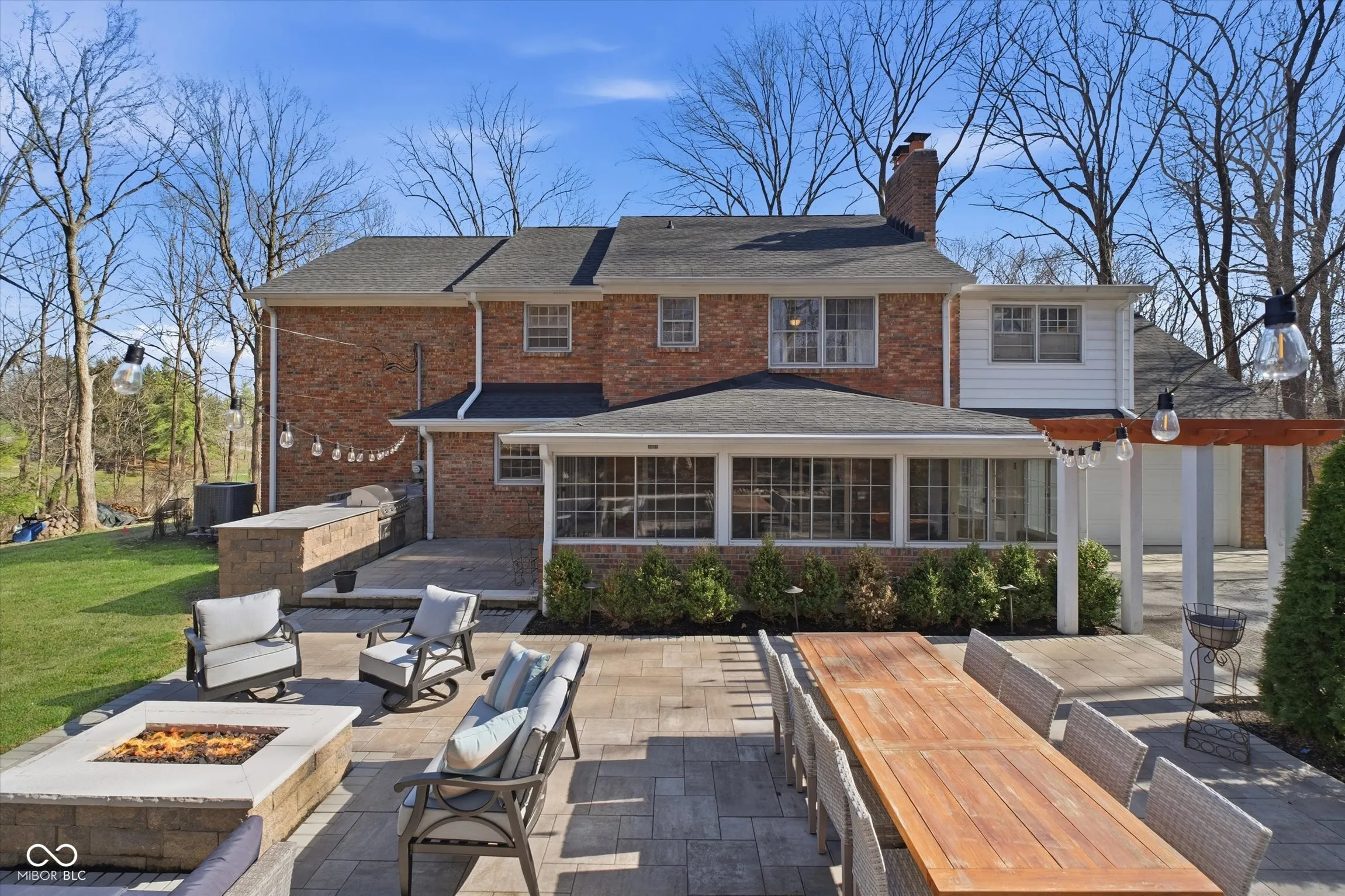 The essence of refined living awaits at 6203 Hillcrest LN in INDIANAPOLIS, an attractive single family residence presented in great condition sitting atop Hillcrest Lane, overlooking Hillcrest Country Club! The heart of the home, a magnificent living room, exudes character with its elegant crown molding and a distinguished wood wall. Thoughtfully designed built-in shelves offer both aesthetic appeal and practical storage, while a captivating fireplace provides a focal point for warmth and gathering. Culinary creativity finds its perfect canvas in the kitchen, featuring wood cabinets and a gas stovetop. A beautiful backsplash adds a touch of artistry, complemented by a generously sized kitchen island and a convenient kitchen bar, creating ideal spaces for both preparation and casual interaction. Four well-appointed bedrooms provide serene personal havens throughout the home. Three full bathrooms and an additional half bathroom ensure comfort and privacy for all occupants. One of these peaceful bedrooms benefits from a private ensuite bathroom, and a thoughtfully designed bathroom showcases a spacious double vanity alongside an inviting tiled shower, and beatuiful dressing room off the primary bedroom. Embracing the splendor of its expansive 1.4 acre lot, this property extends its allure to the outdoors with a charming patio and a bright sunroom. An inviting outdoor living space encourages relaxation and enjoyment, complemented by a delightful fire pit perfect for evening gatherings and a dedicated outdoor dining area along side a built in grill. This impressive two-story residence, encompasses 3176 square feet of thoughtfully designed living area, embodying a timeless appeal. Come enjoy the quiet evenings in the woods, your sport and entertainment needs of neighboring Hillcrest Country club!