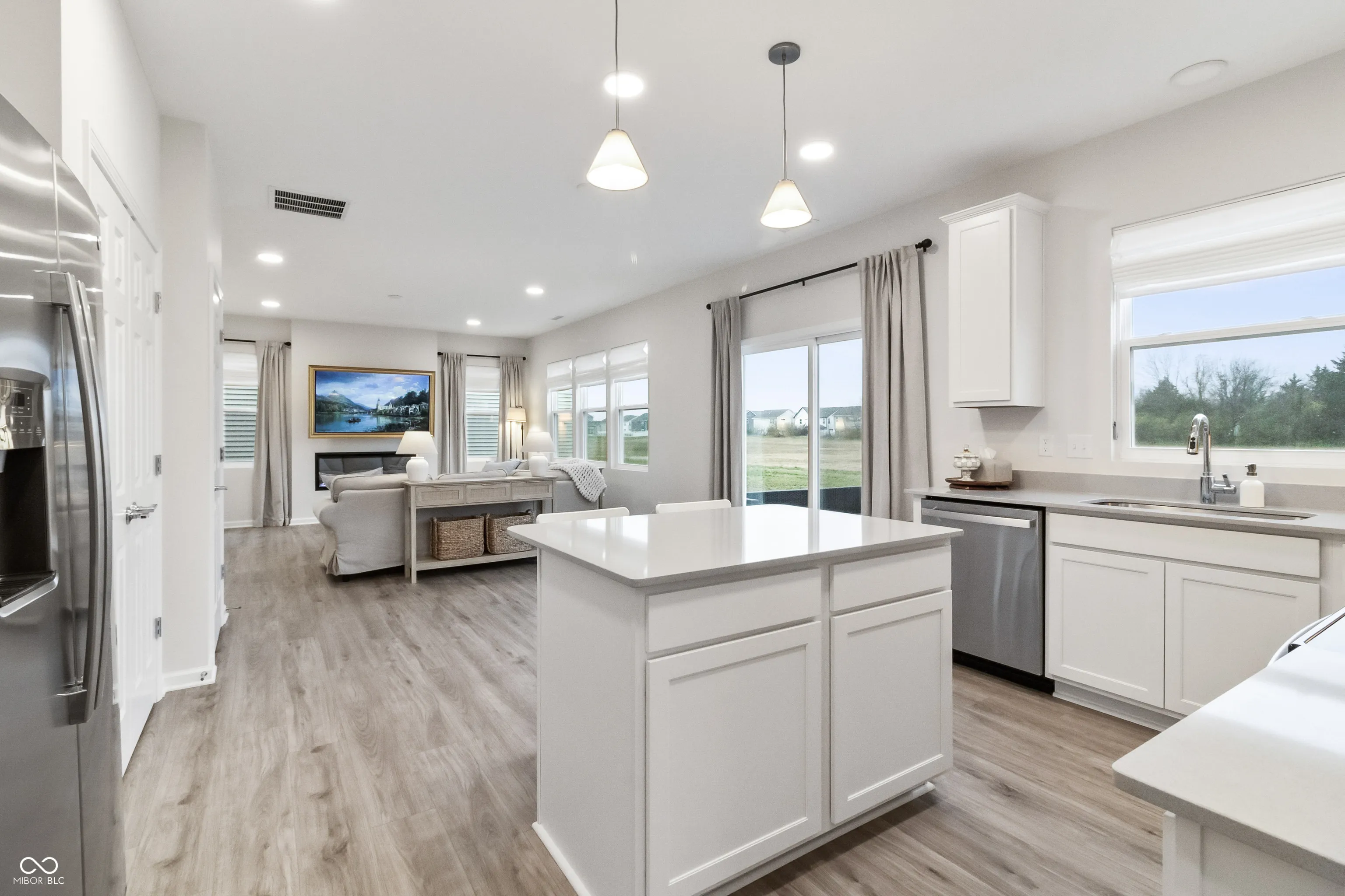 This better-than-new home is truly move-in ready! Complete with window treatments throughout, this home offers a peaceful nature oasis out back – the yard backs up to a huge green-space field, giving you rare privacy with no direct rear neighbors. The 2-car garage with a 4-ft bump-out provides incredible extra storage for tools, bikes, or hobbies. Inside, enjoy cozy evenings around the inviting living-room fireplace and an open layout perfect for everyday living or entertaining. Step outside to take in the private backyard views, situated on a quiet cul-de-sac and just steps from a serene community pond. Conveniently located just off I-74 and within walking distance to Franklin Jr. High, this home blends comfort, privacy, and convenience all in one.