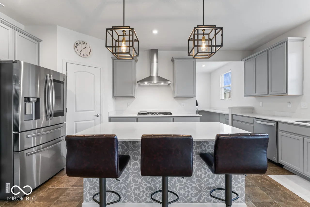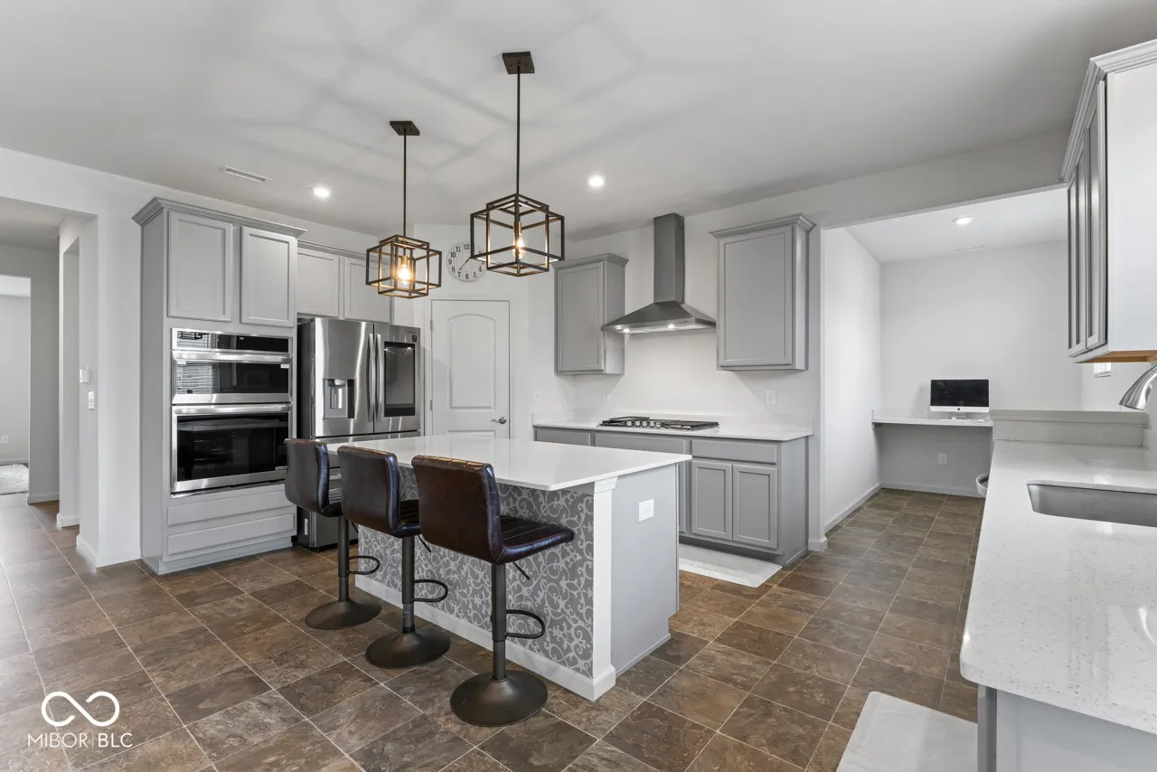 This home features open, inviting spaces perfect for both entertaining and everyday living. At its heart is a chef’s dream kitchen, equipped with a built-in wall oven and microwave, a 36″ gas cooktop, a 36″ vented hood, 42″ white cabinetry, Arctic White quartz countertops, an island, and a pantry. The kitchen seamlessly flows into a cozy cafe dining area and a extended gathering room. A formal dining room connects to the kitchen. A versatile flex room for a home office or study. Planning Center. Upstairs, relax in the luxurious owner’s suite, featuring a tiled shower, comfort height vanity with Arctic White quartz and a spacious walk-in closet. Three additional bedrooms, each with walk-in closets, offer ample space. A spacious loft invites recreation and relaxation. The home also includes a two car garage with tandem 10×18 storage.