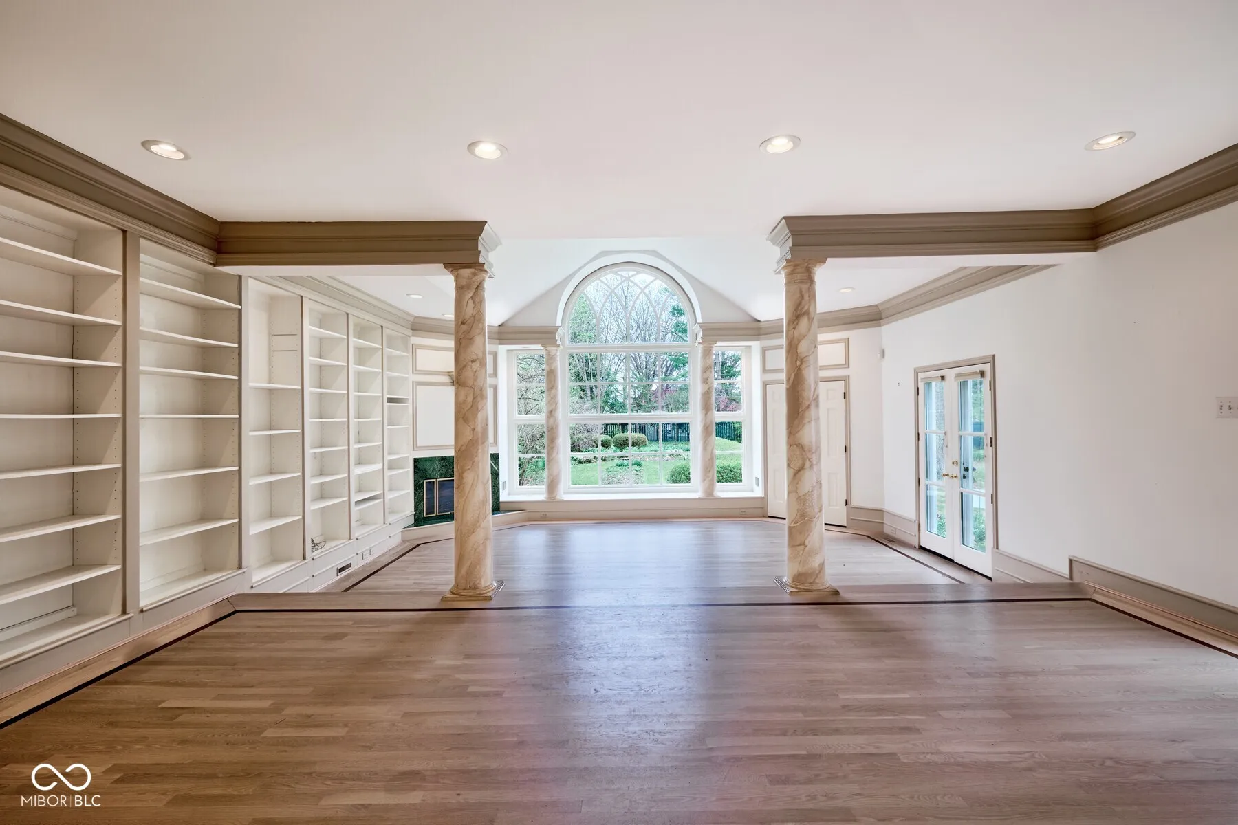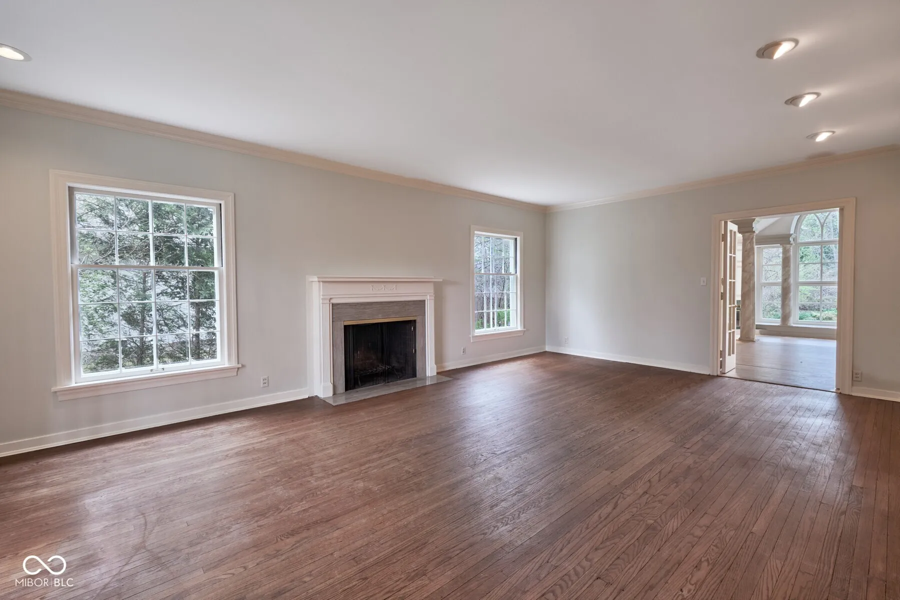 This Meridian Hills Colonial is situated on a lush lot defined by mature trees and formal gardens. It offers a serene retreat with an emphasis on graceful living and light-filled spaces. 4 bedrooms and 2.5 baths provide ample space for family and guests. The heart of the home is an expansive vaulted great room, where a stunning Palladian window serves as a focal point, offering panoramic views of the private gardens. This impressive space is anchored by a classic fireplace and custom built-in bookcases, creating an atmosphere that is both grand and inviting. For everyday comfort a separate living room and dining room provide versatile footprints for both intimate gatherings and large-scale entertaining. The updated kitchen provides functional elegance, featuring painted cabinetry, center island and luxury appliances. The primary retreat offers a private sanctuary, complete with a spacious walk-in closet and a vaulted en-suite bath. The spa-like configuration includes dual vanities, a deep soaking tub, a separate shower, and a private water closet. The basement includes daylight windows and a limestone fireplace offering the perfect location for a future media room or lounge. The property’s charm extends to the outdoors, where the 2-car detached garage-accented by a signature cupola-complements the estate’s traditional aesthetic. Enjoy professional landscaping, vibrant gardens, and the shade of established hardwoods. This is a rare opportunity to own a quintessential Colonial estate in one of the area’s most coveted neighborhoods.